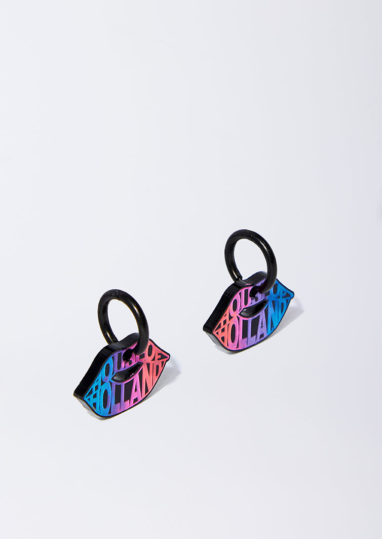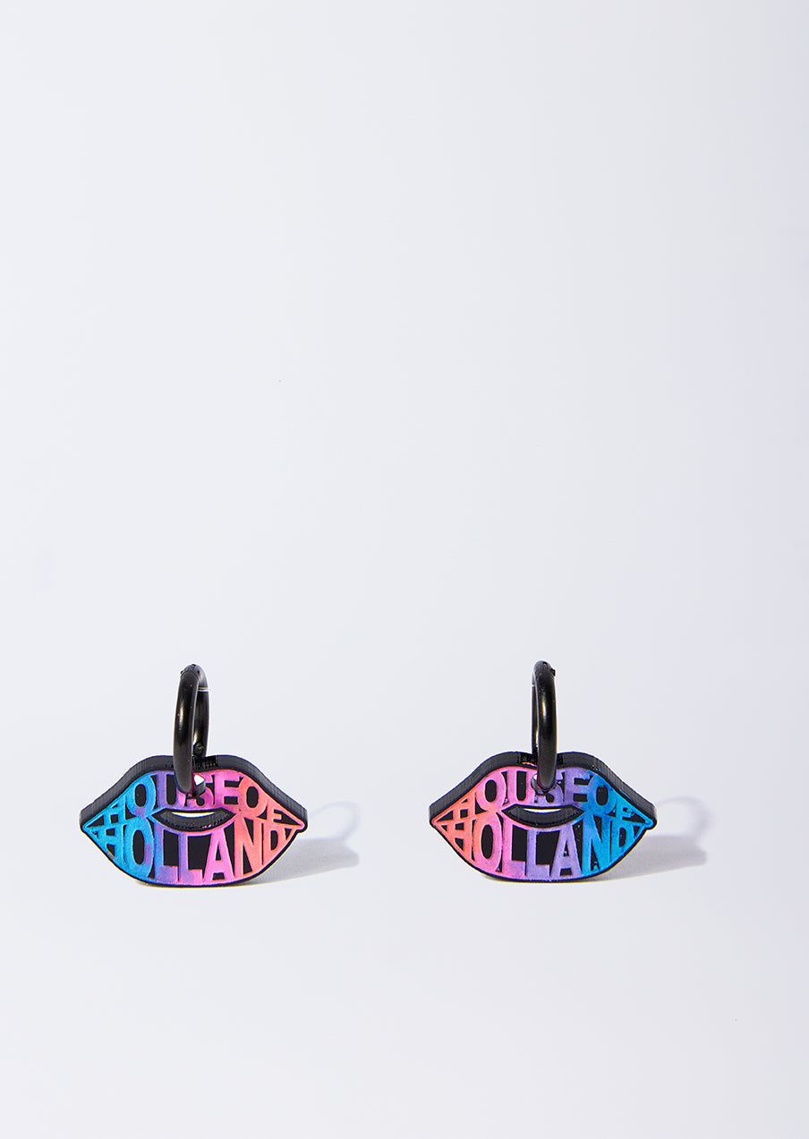 House of Holland Small Black Lip Hoops