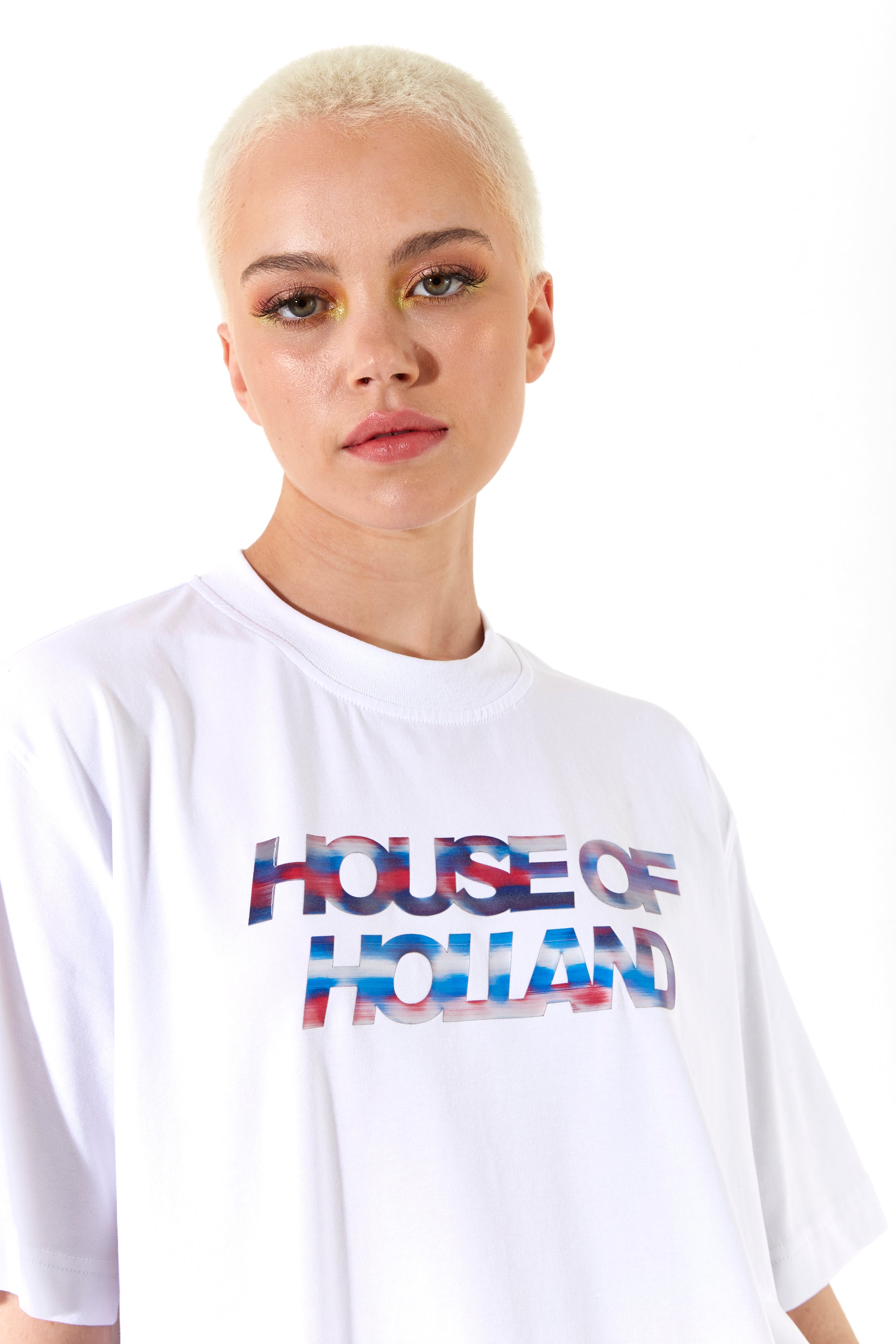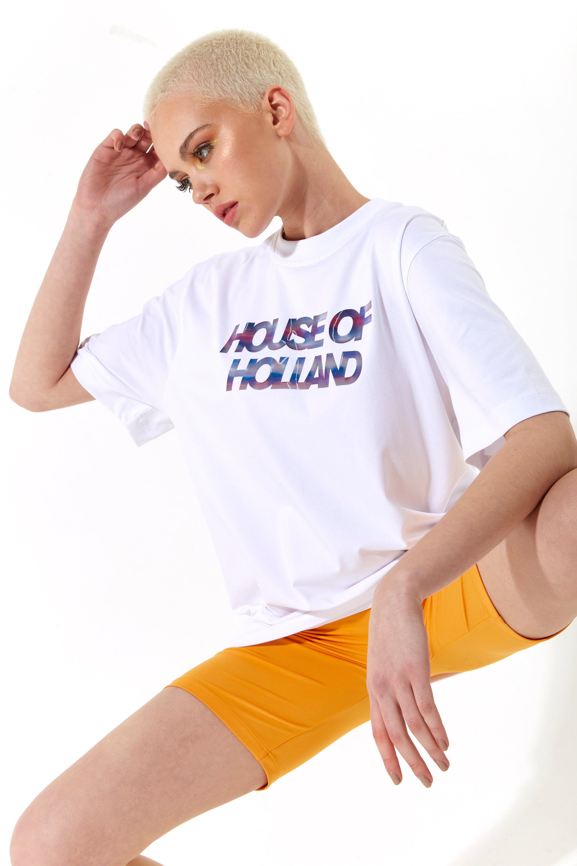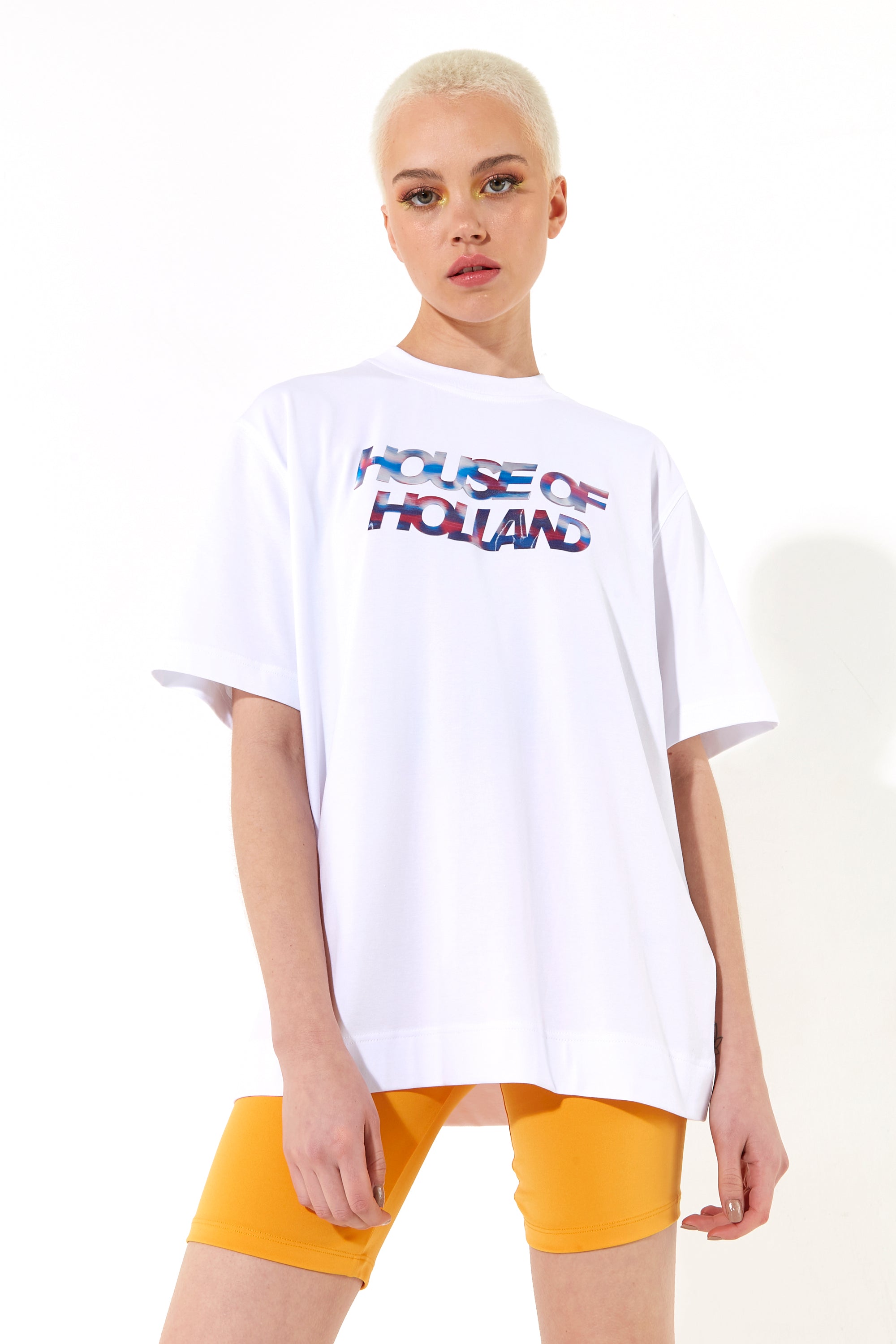House of Holland Iridescent Transfer Printed T-Shirt in White