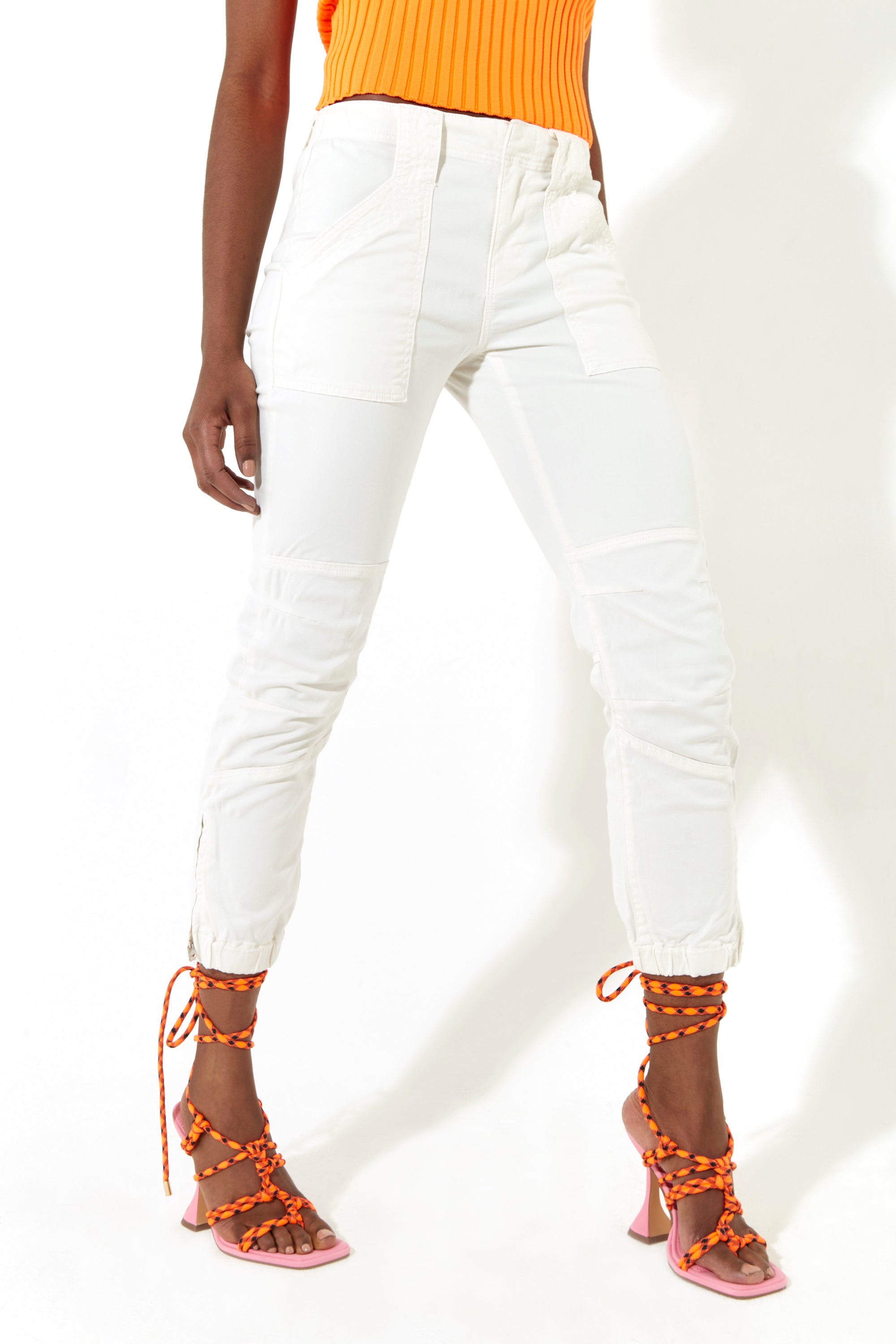 House of Holland Off White Skinny Cropped Trousers With a Pocket Detail and Metal Zip Detail
