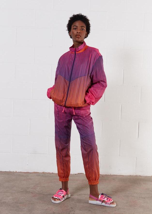 Channel your inner sporty spice in our Andrew Brischler Print Track Top. The top in pink and orange features a central purple zip, elasticated sleeve cuffs and Airtex lining- ideal for all your athleisure needs. Complete your sports luxe look with the Neon Print Track Pant.