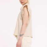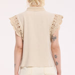 Beige Lace Trim Sleeveless Shirt