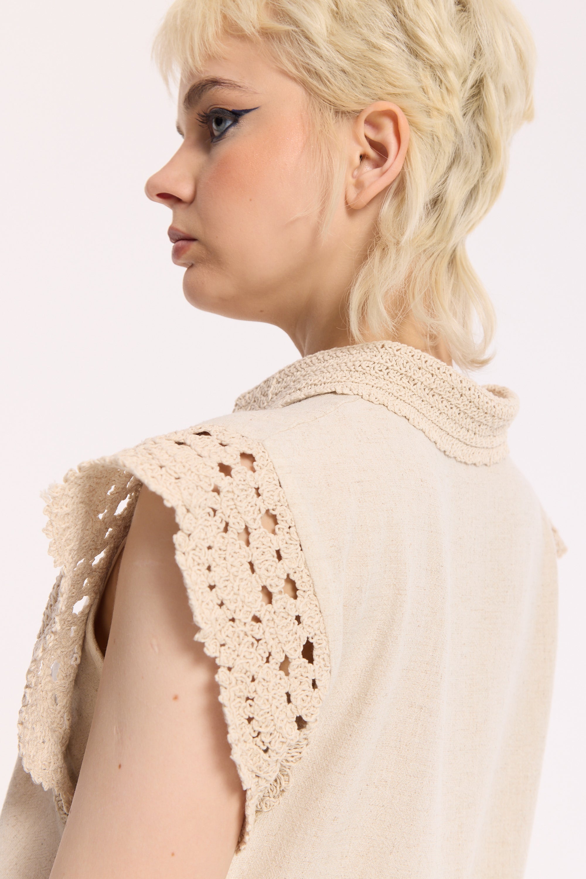 Crochet lace trim shoulders and collar