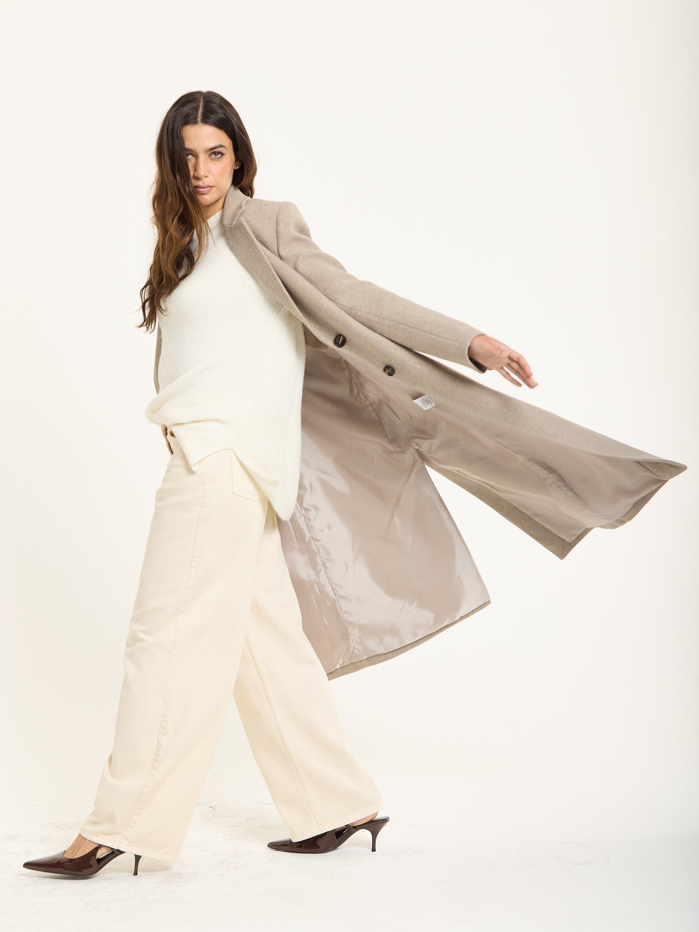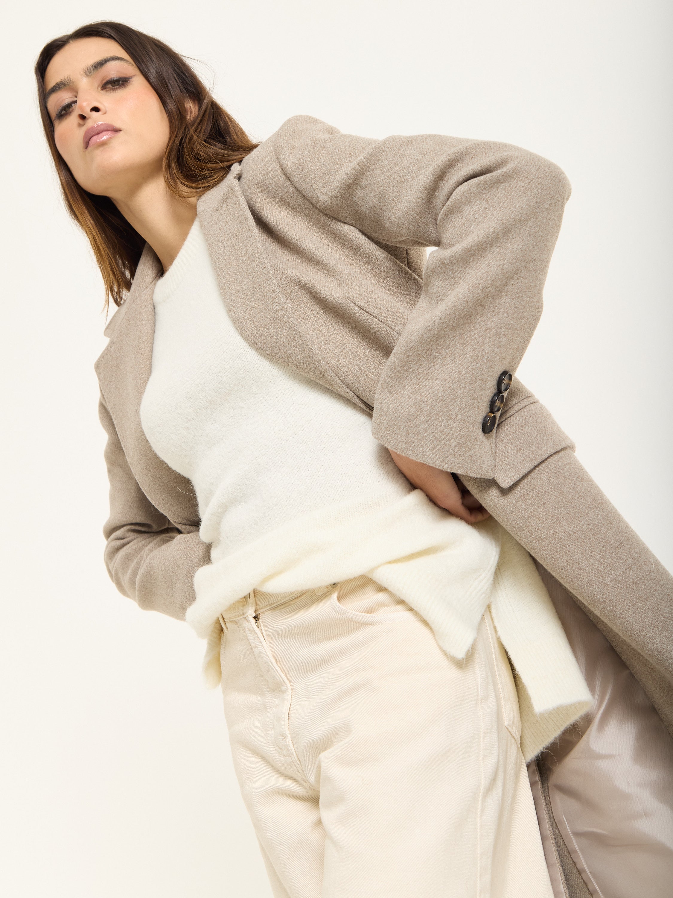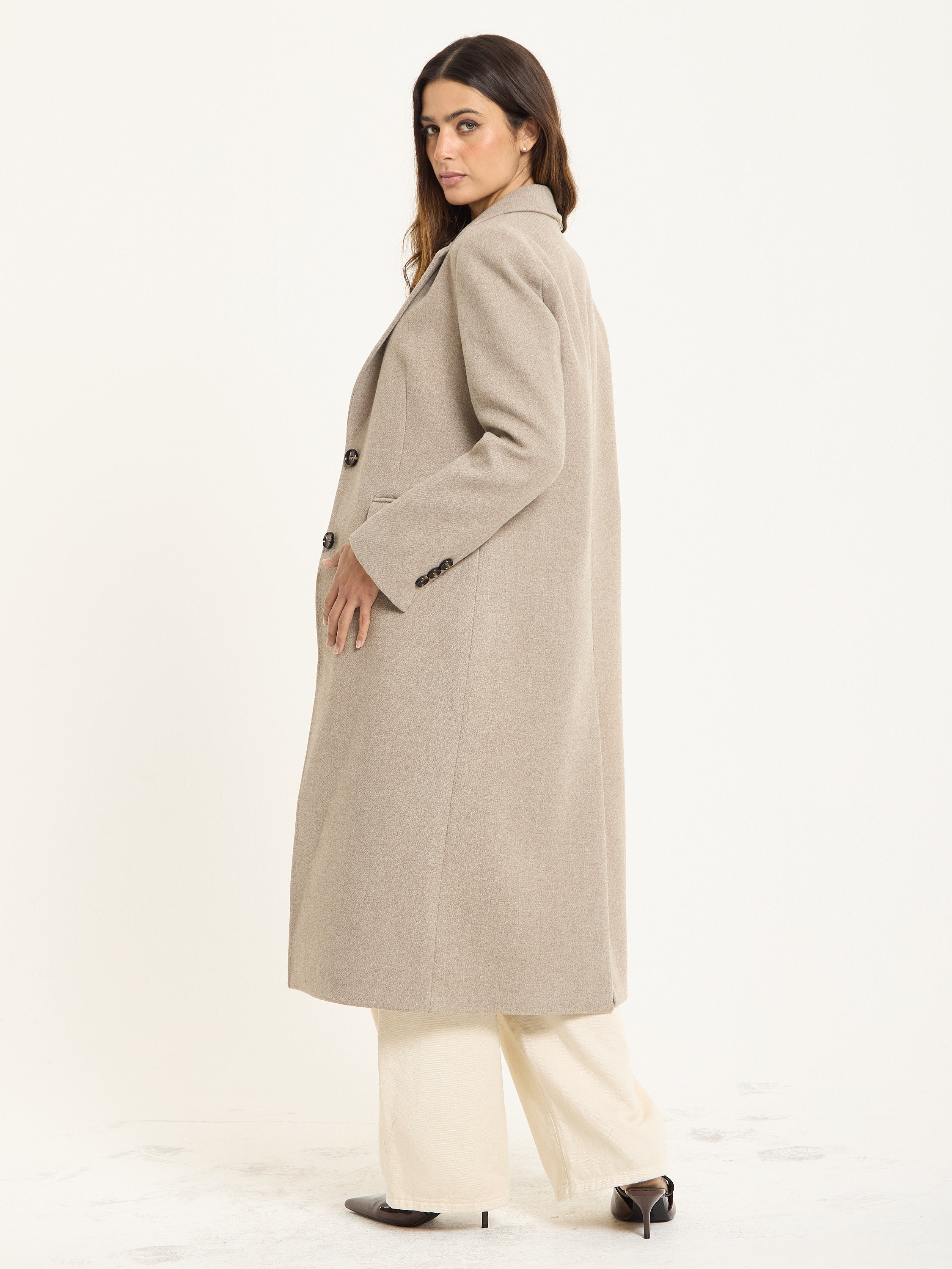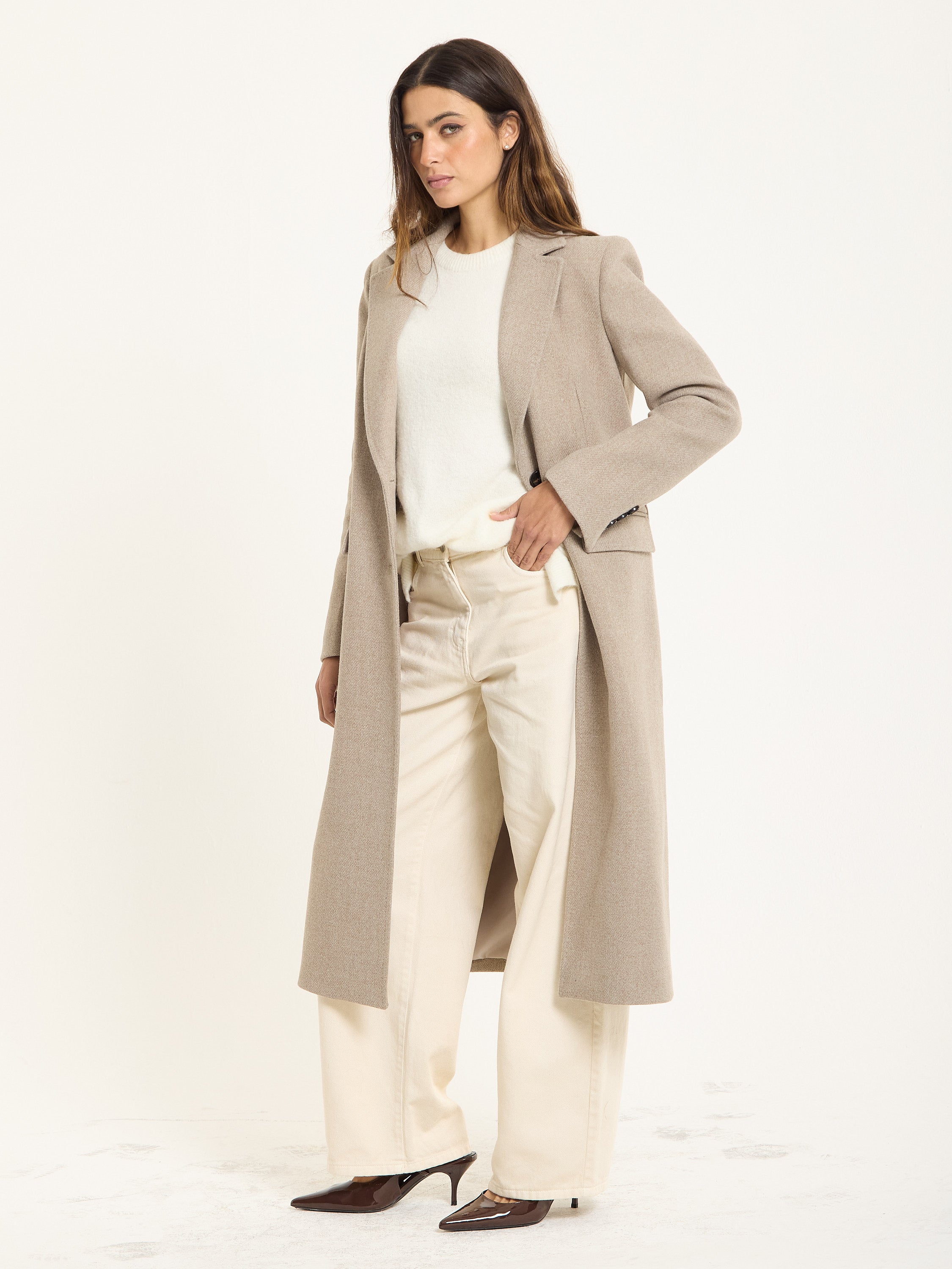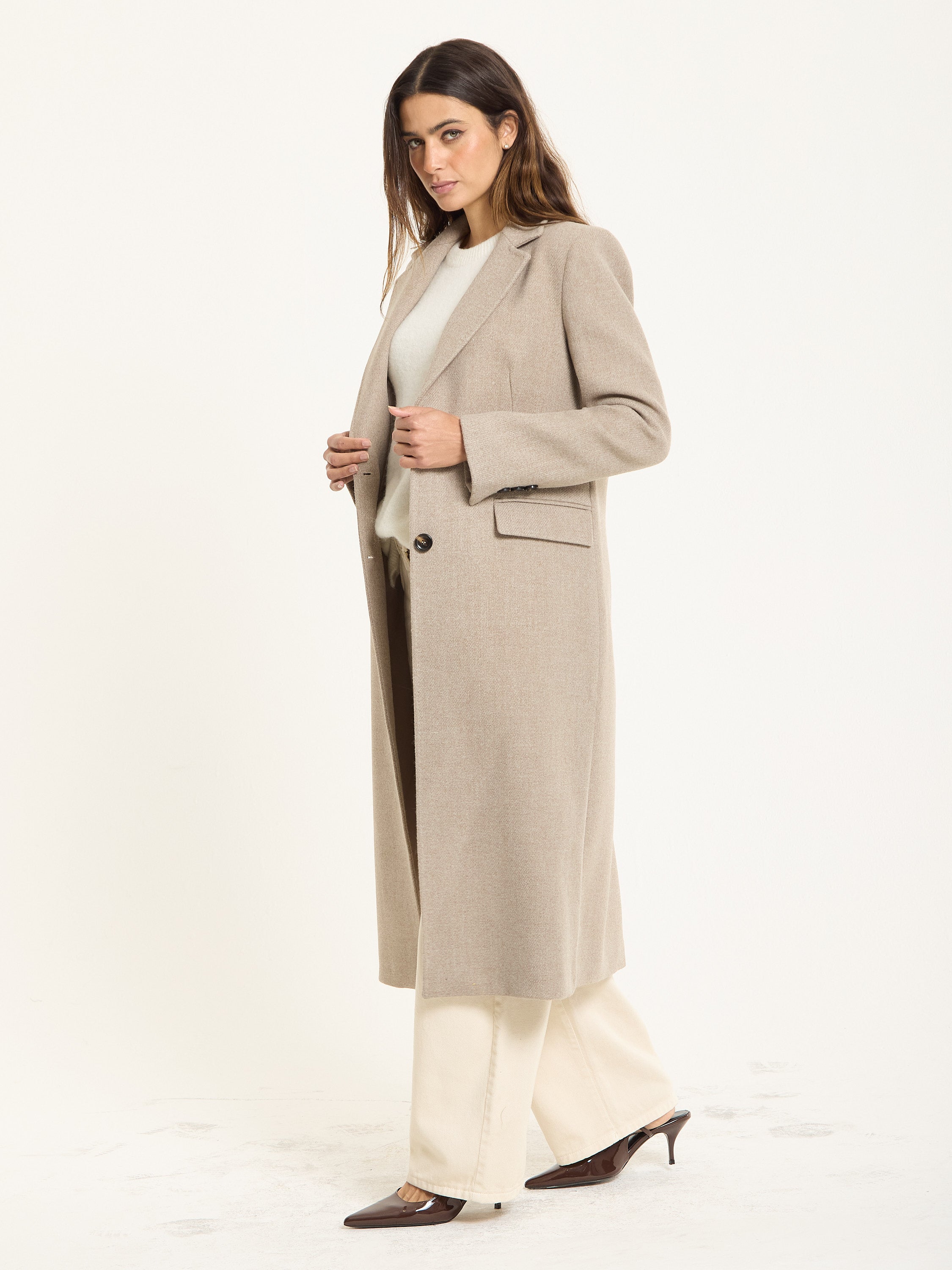 Effortless polish in one piece – the beige longline coat that elevates any outfit with ease.