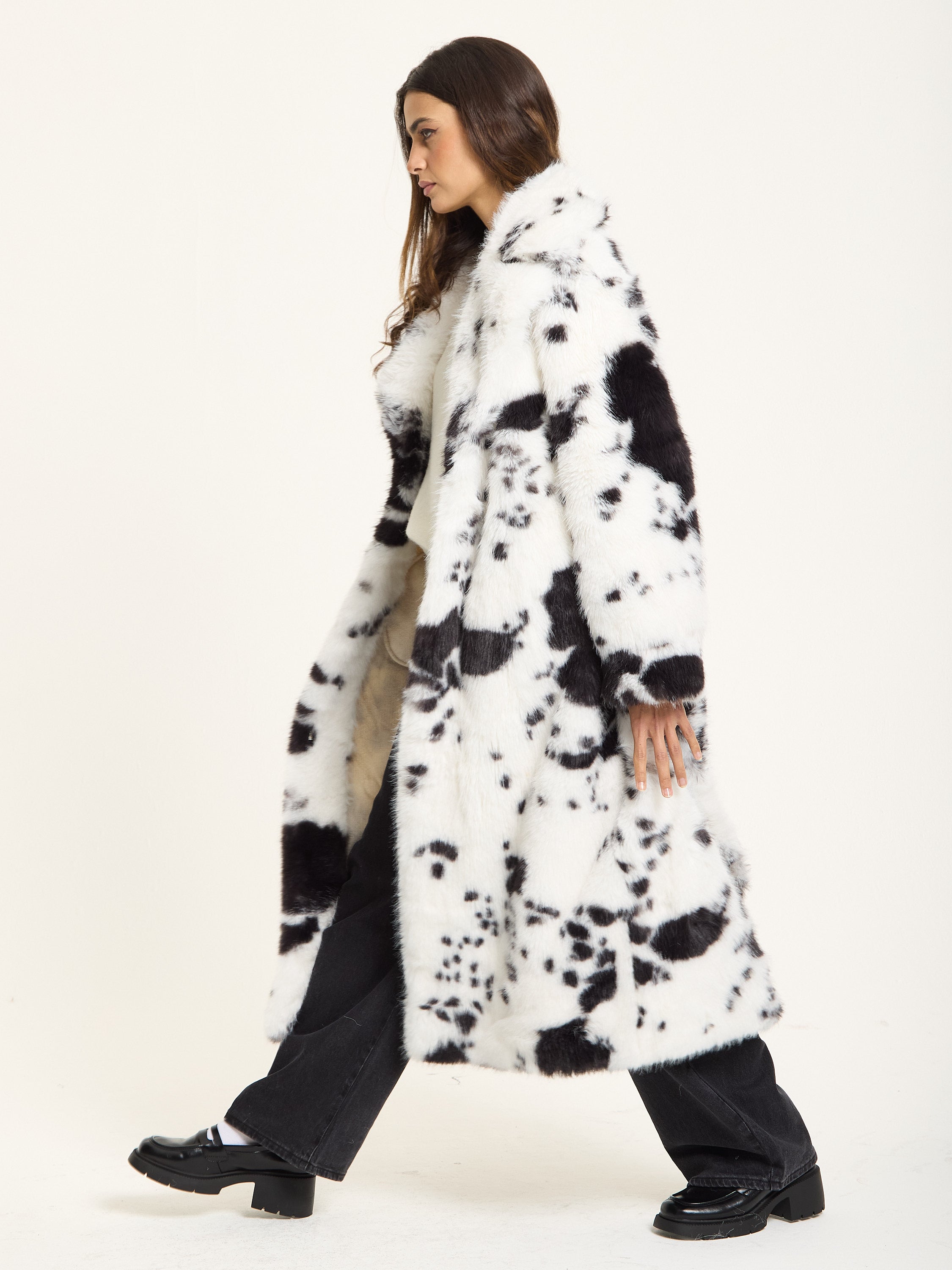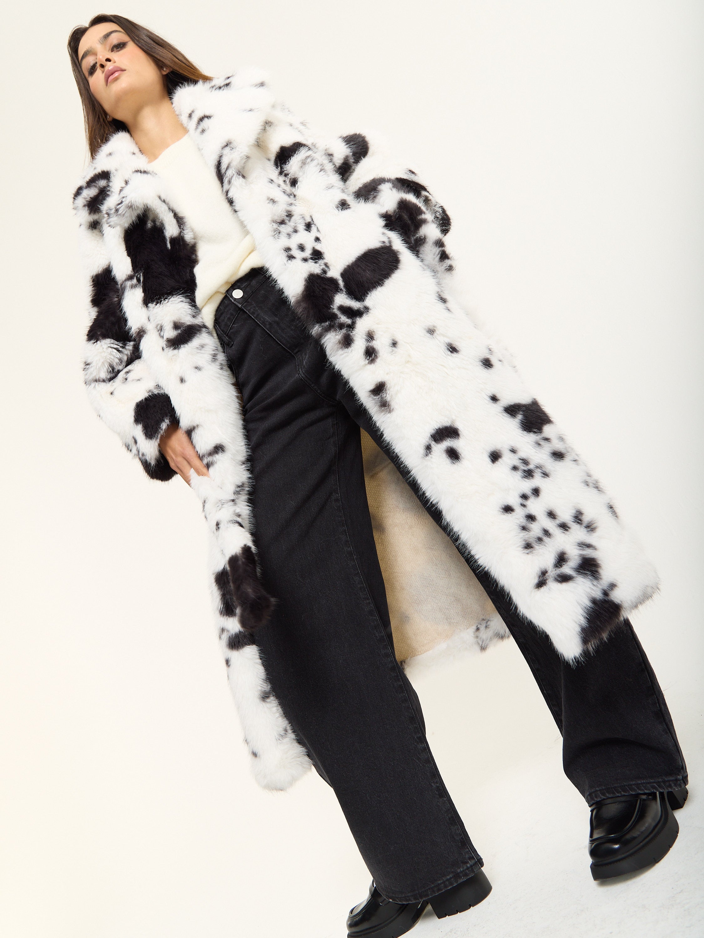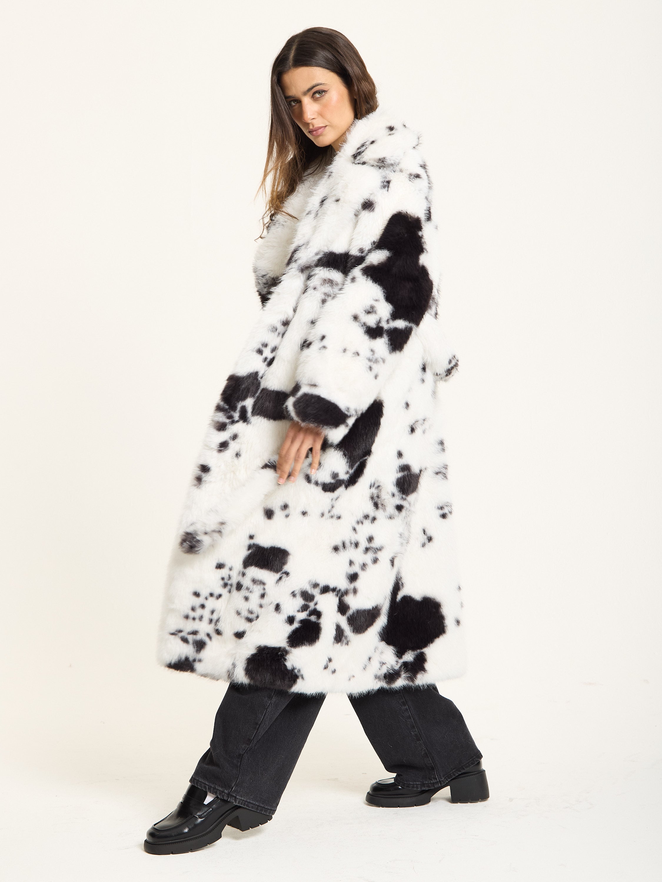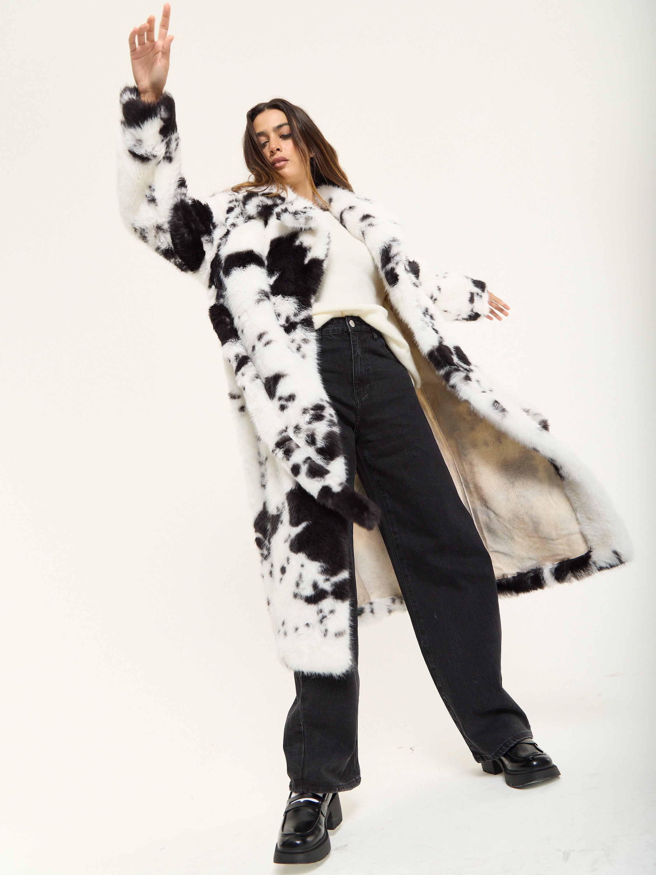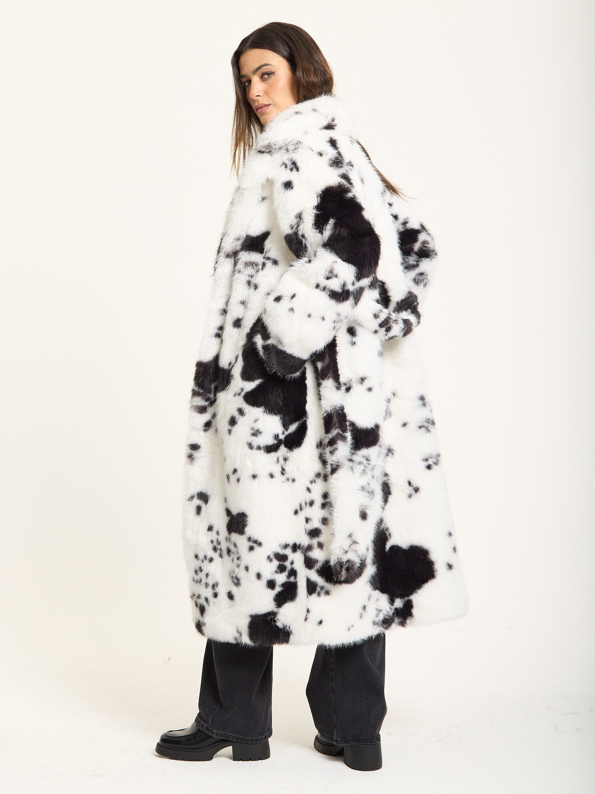 Black and White Faux Fur Cow Coat