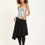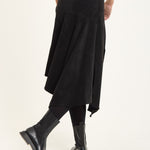 Black Faux Suede Asymmetric Midi Skirt