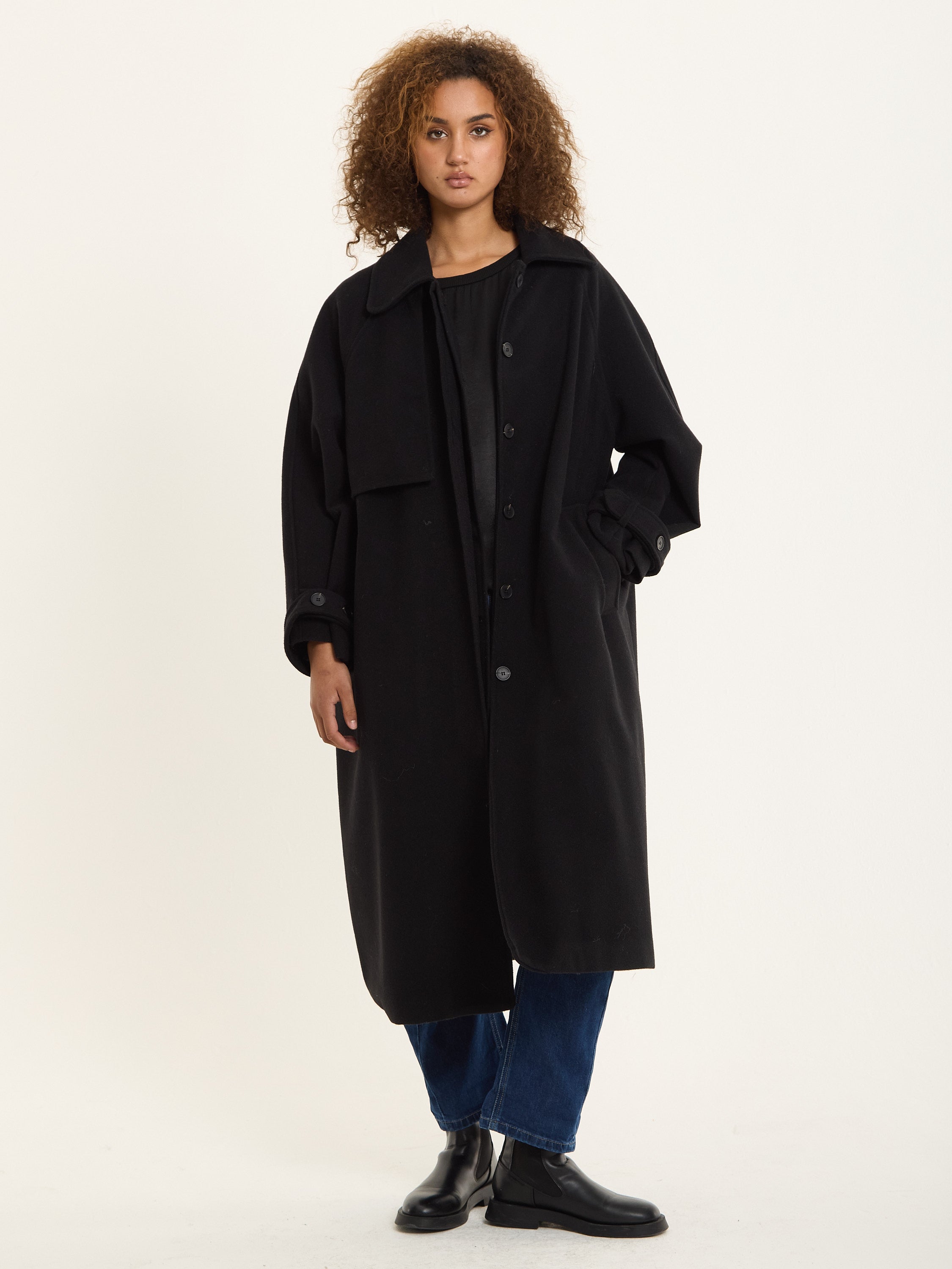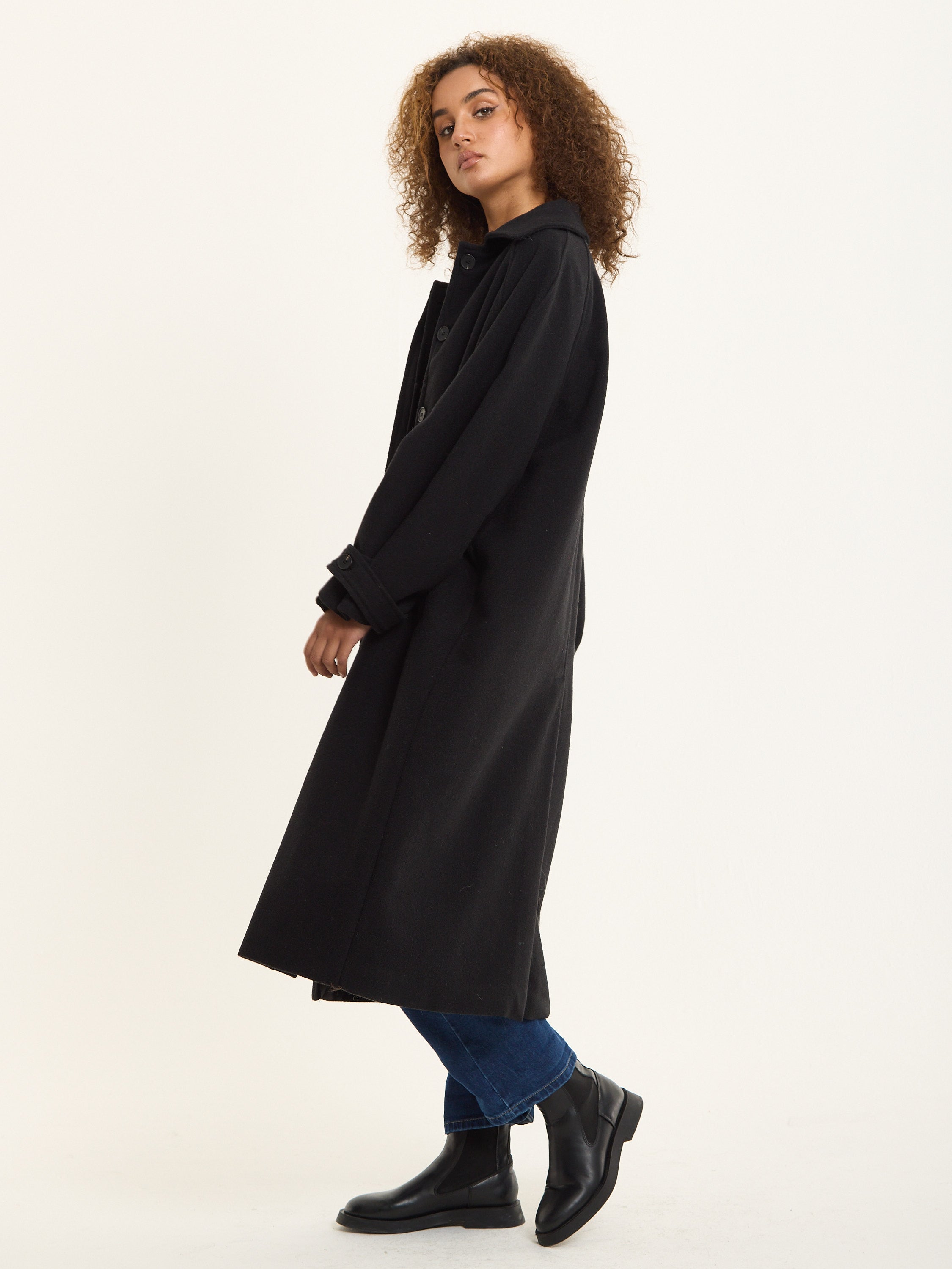 Black Oversized Wool Blend Longline Coat
