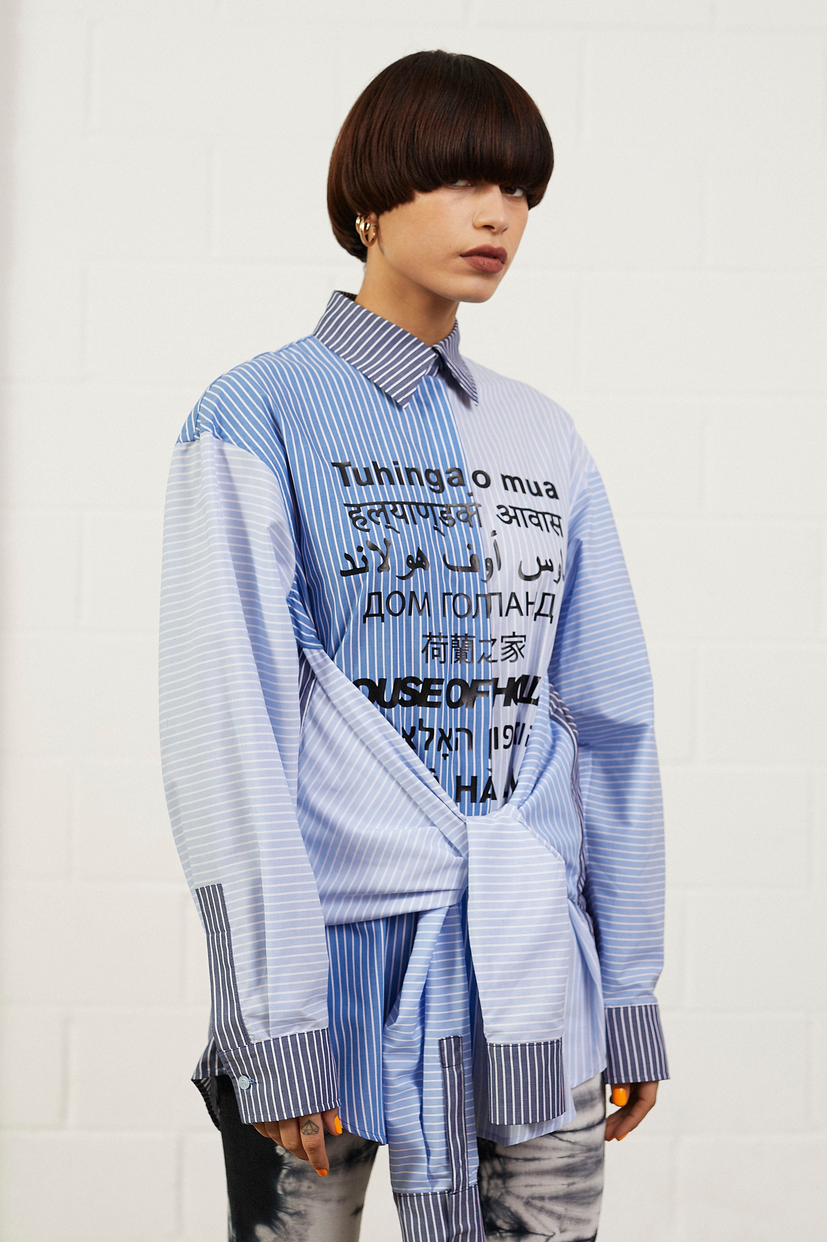 Stripes every which way with the House of Holland cotton mix shirt. With an oversized fit and featuring a sleeve style belt.