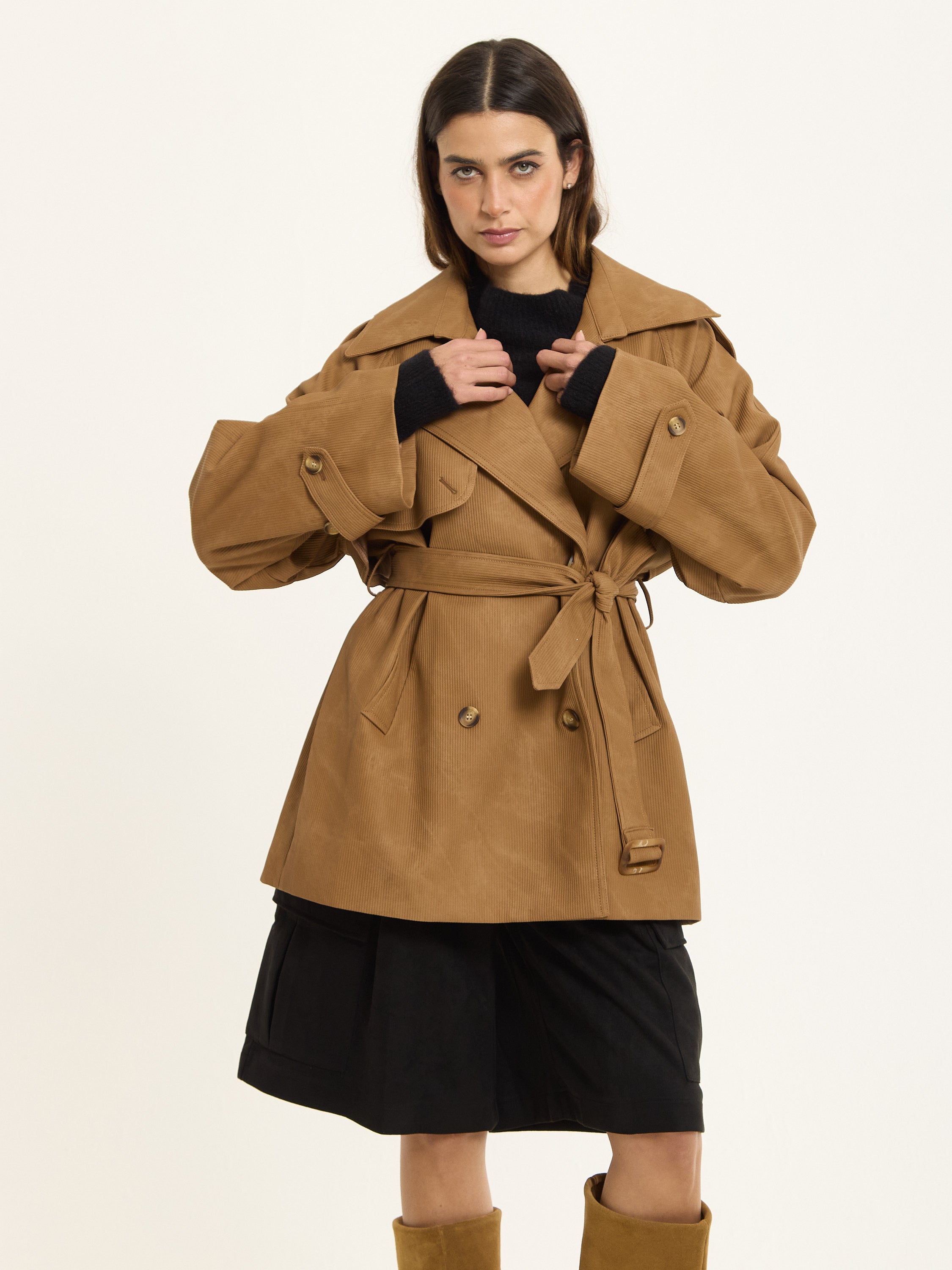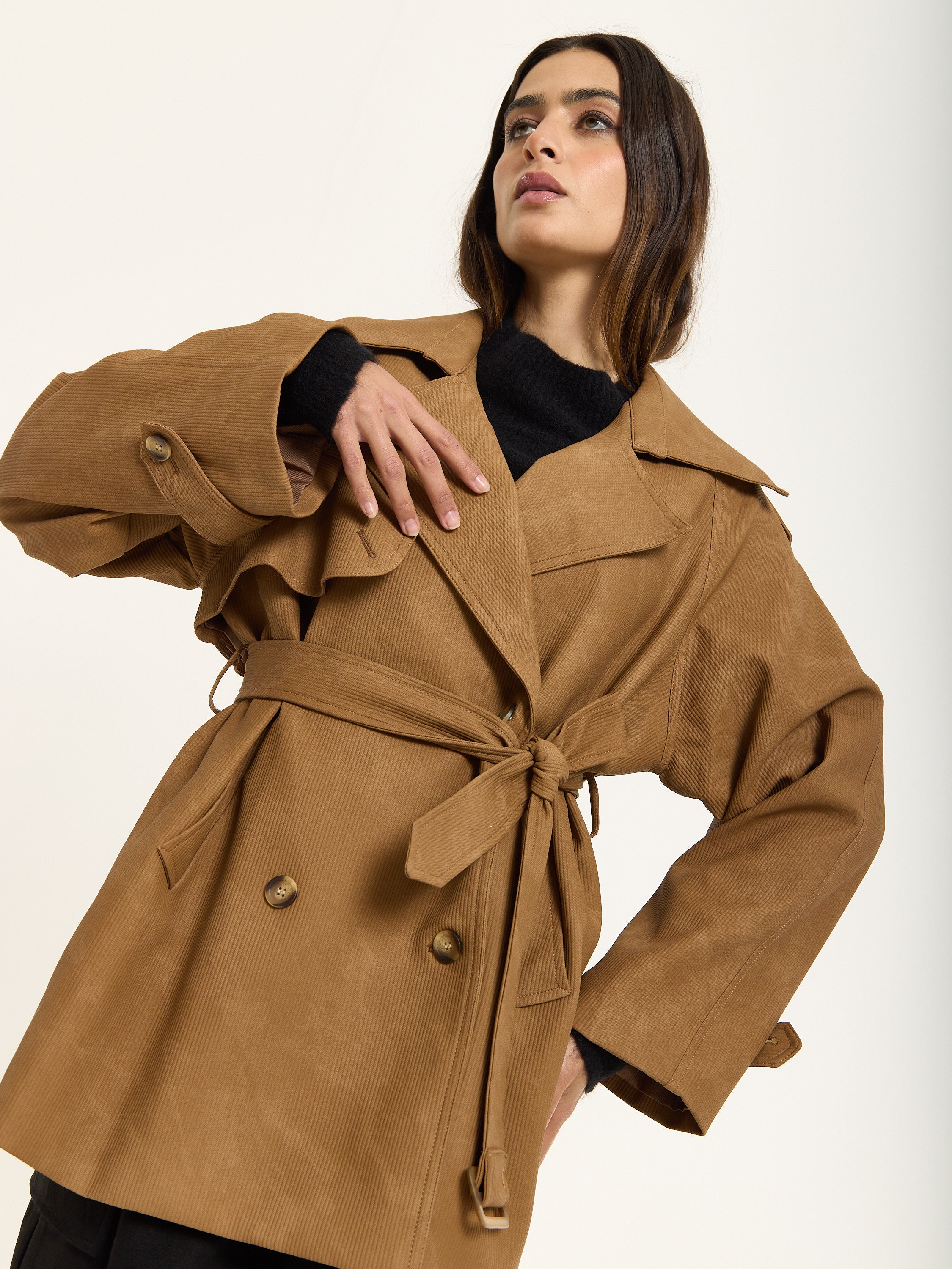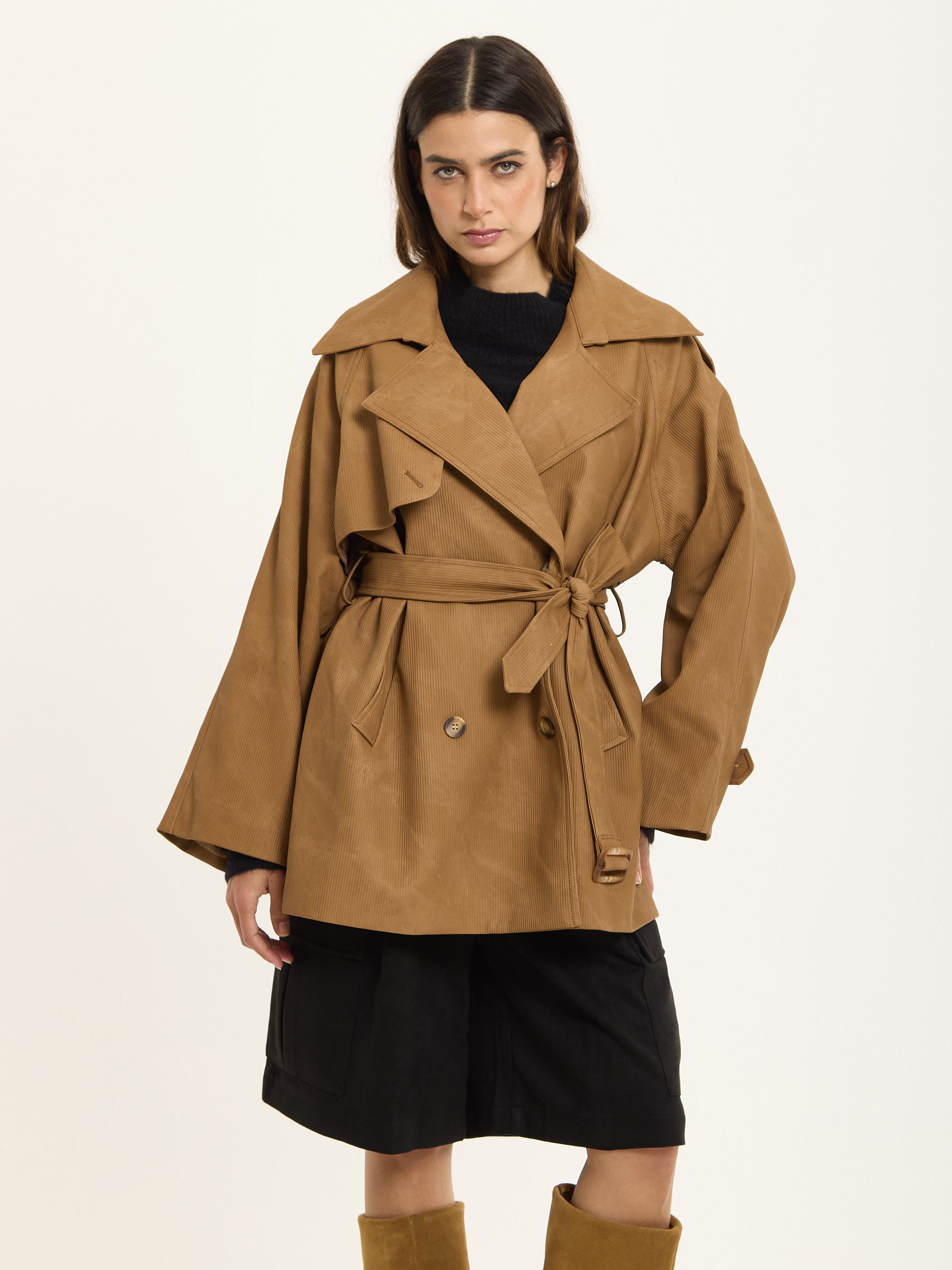 Effortlessly cool and endlessly wearable, the House of Holland Cord Belted Trench Jacket in Camel reimagines a wardrobe icon with modern texture and attitude. Crafted from rich, soft corduroy, it features oversized lapels, a double-breasted front, and a statement belt for a cinched silhouette. The relaxed shape keeps it versatile and laid-back, while the camel hue brings warmth and sophistication to your look.