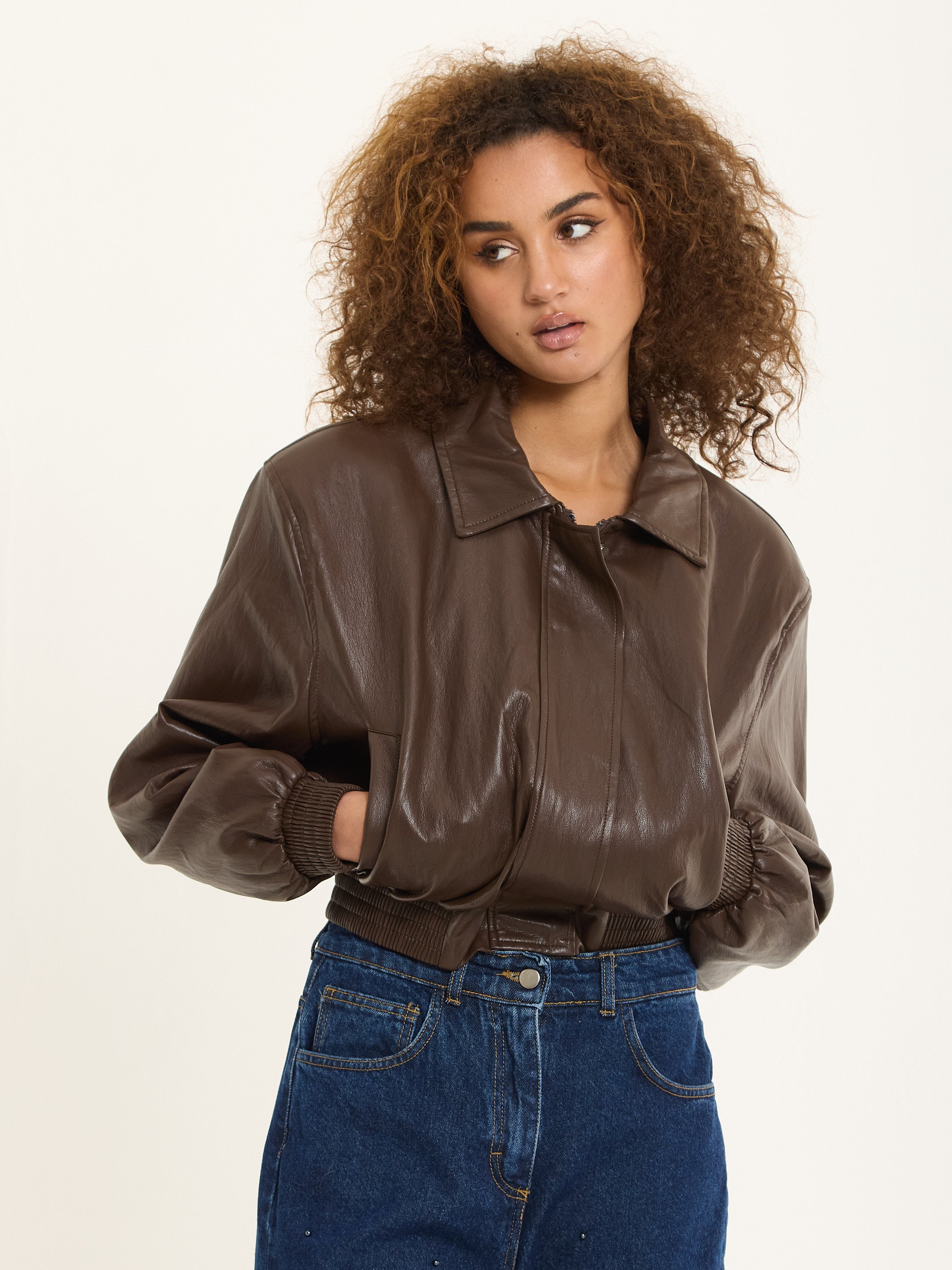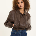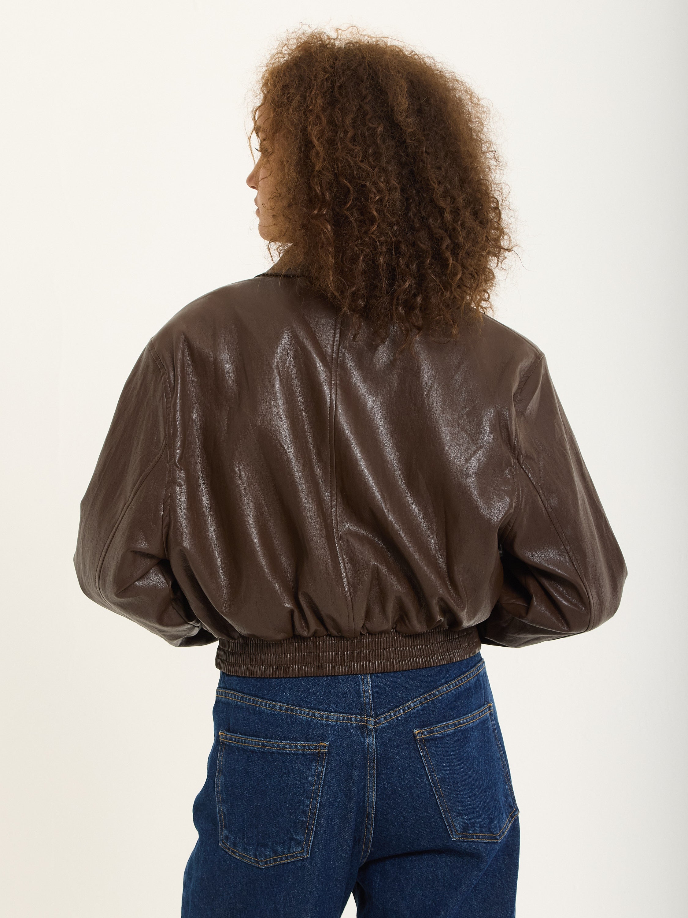 Dark and refined, this chocolate brown bomber adds depth and attitude to even the simplest look.