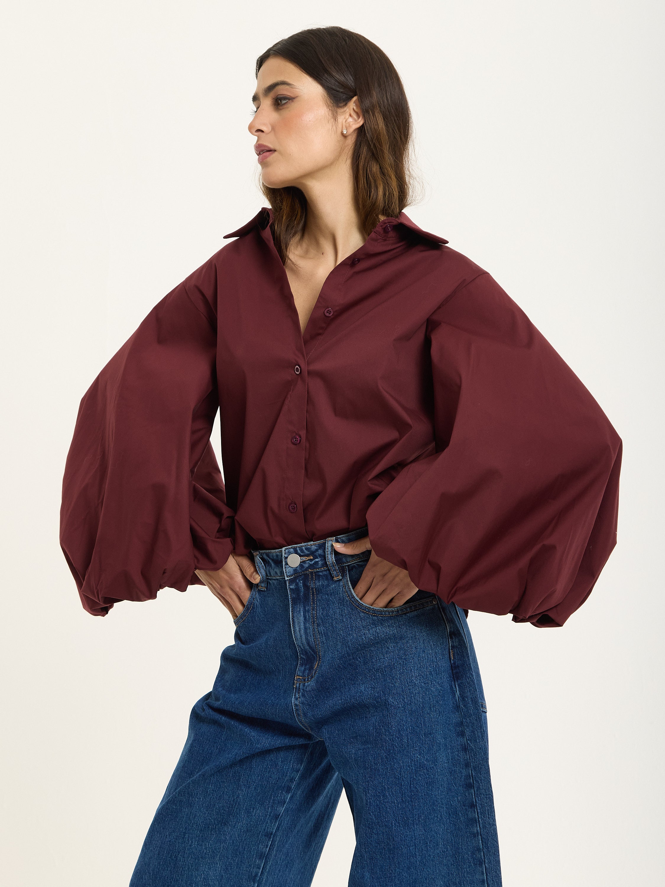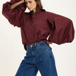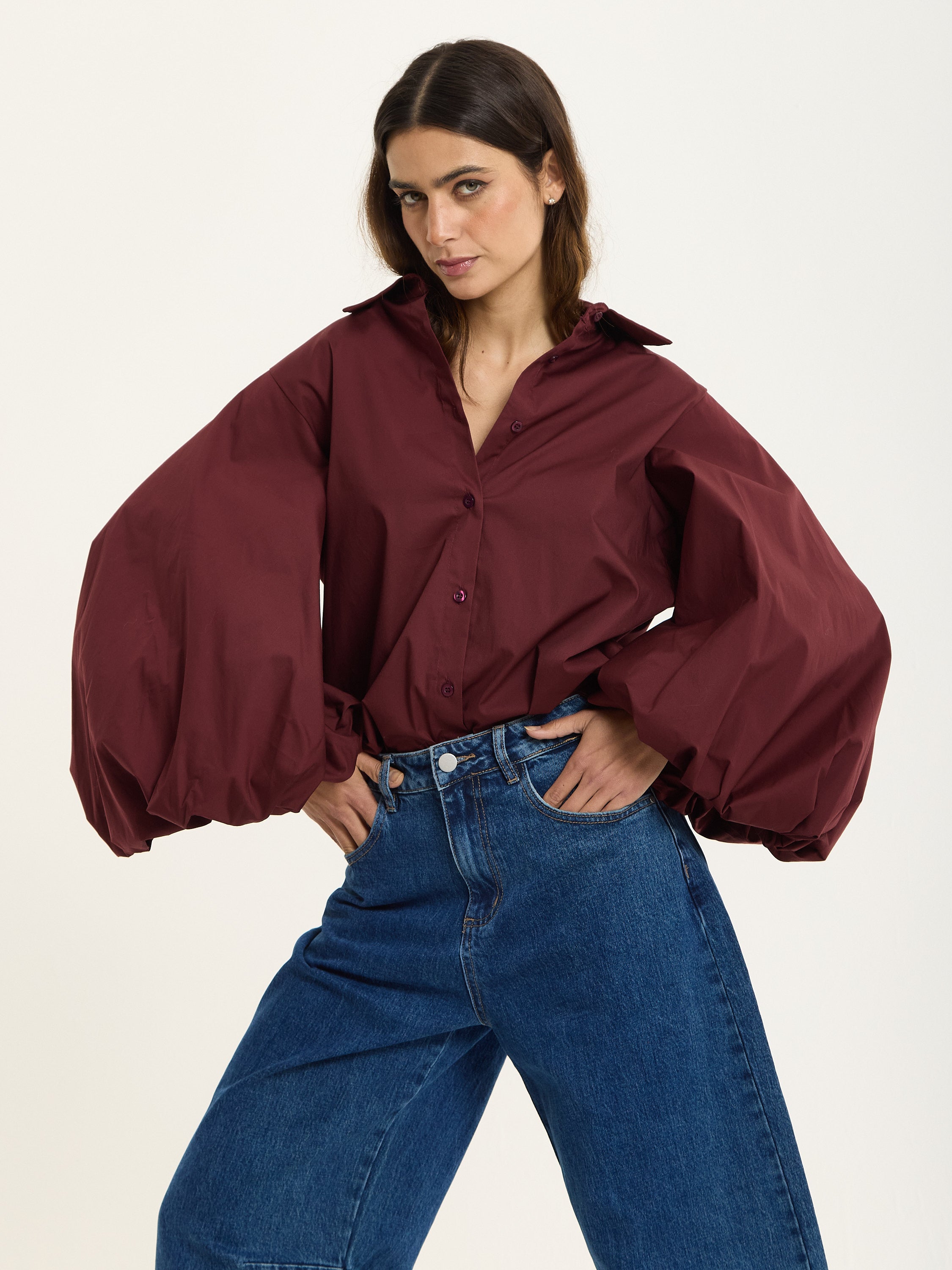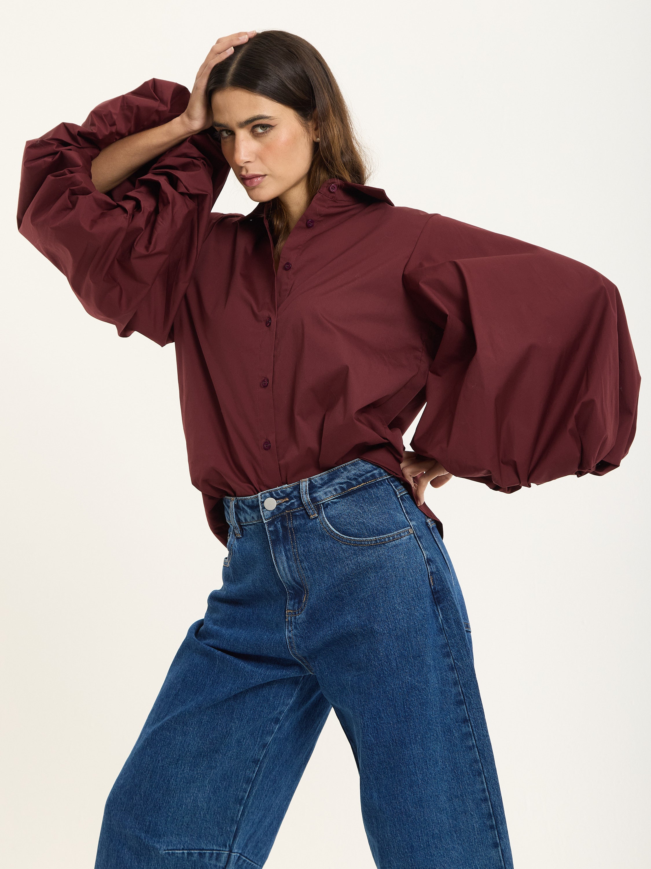 The Balloon Sleeve Cotton Poplin Shirt from House of Holland reimagines the classic button-up with sculptural volume and bold attitude. Cut from crisp cotton poplin in a rich burgundy hue, this statement shirt features oversized balloon sleeves that bring architectural flair to everyday dressing.
