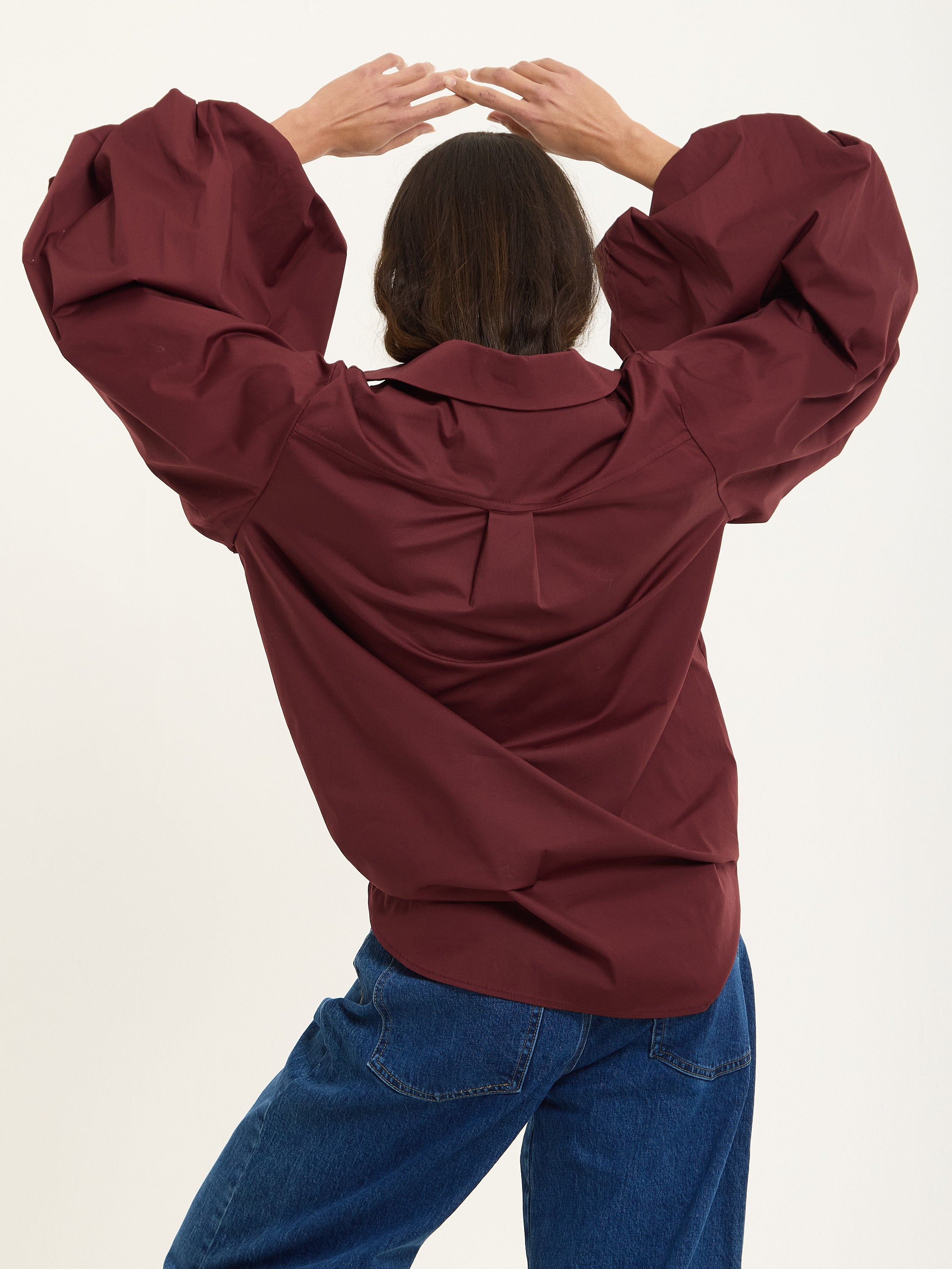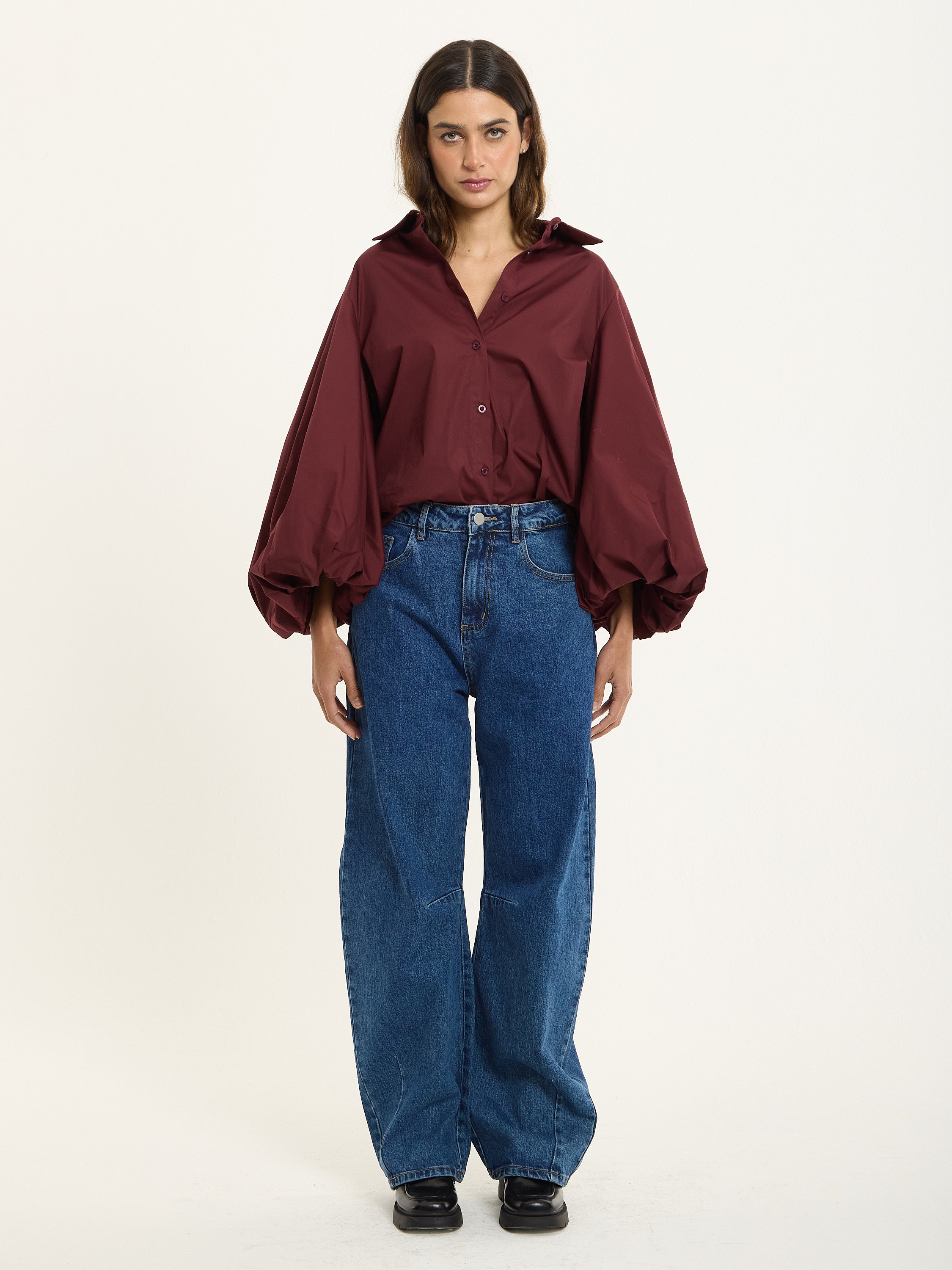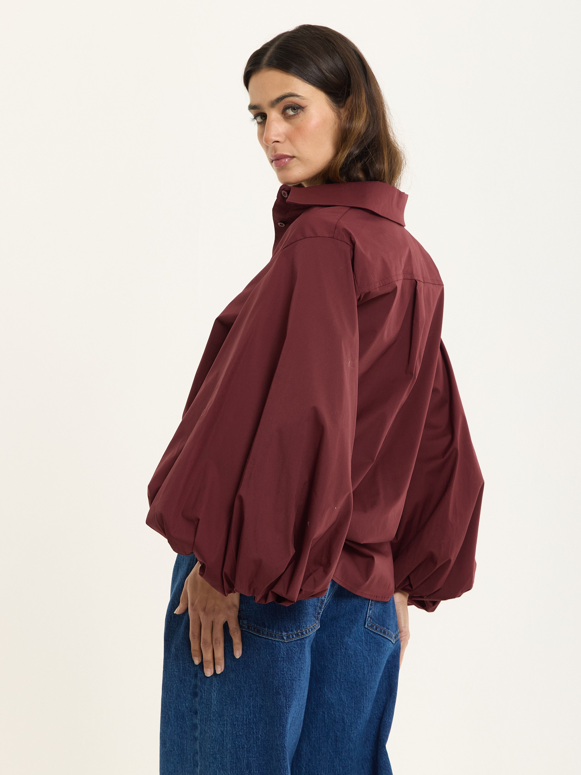 The Balloon Sleeve Cotton Poplin Shirt from House of Holland reimagines the classic button-up with sculptural volume and bold attitude. Cut from crisp cotton poplin in a rich burgundy hue, this statement shirt features oversized balloon sleeves that bring architectural flair to everyday dressing.