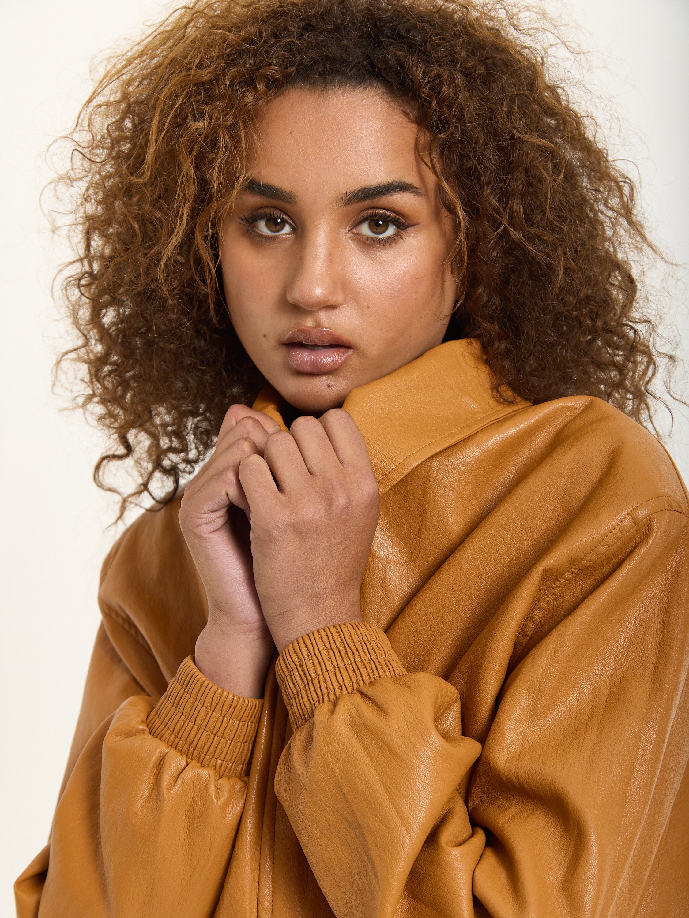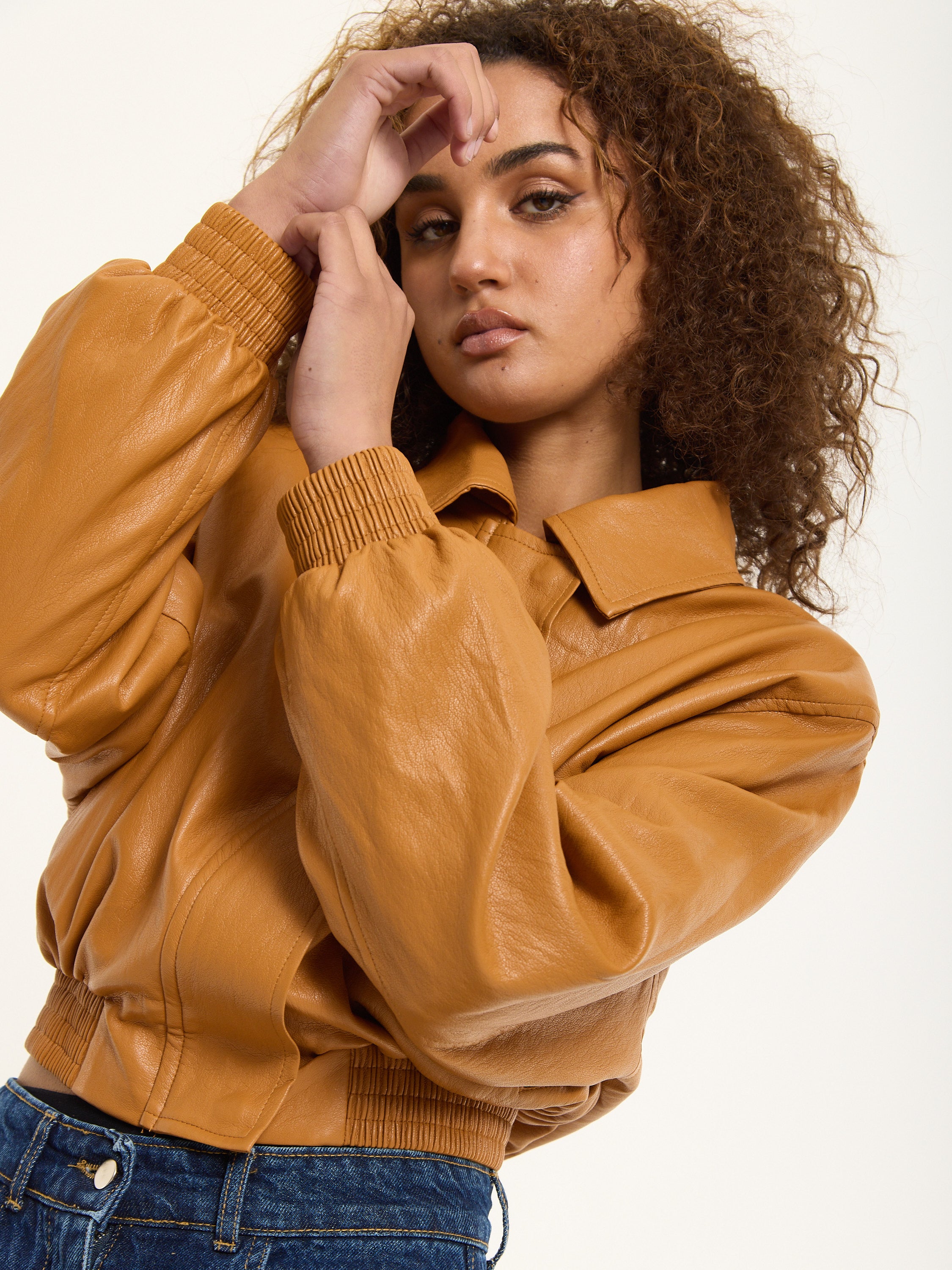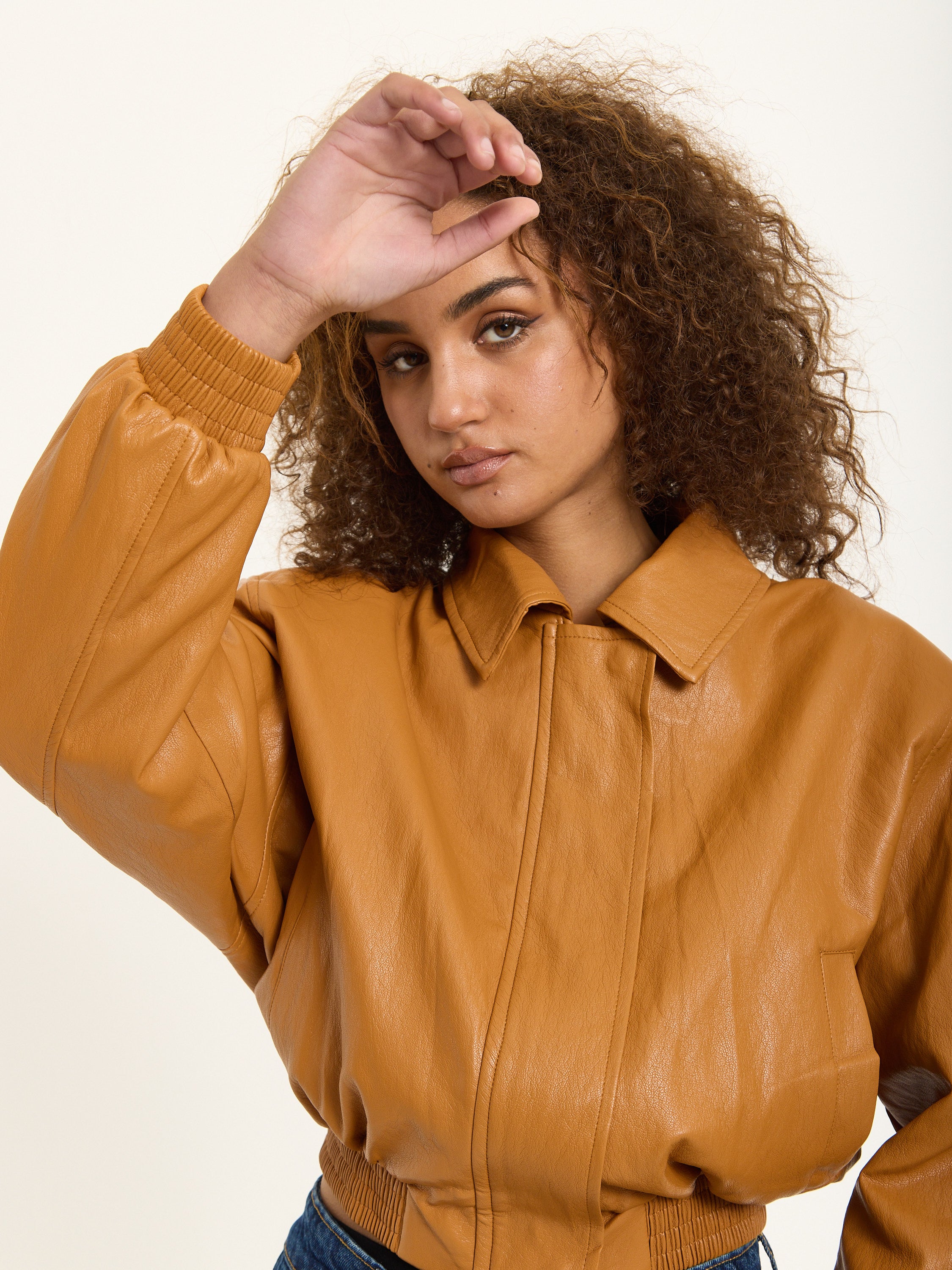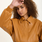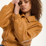 Tan Faux Leather Bomber Jacket