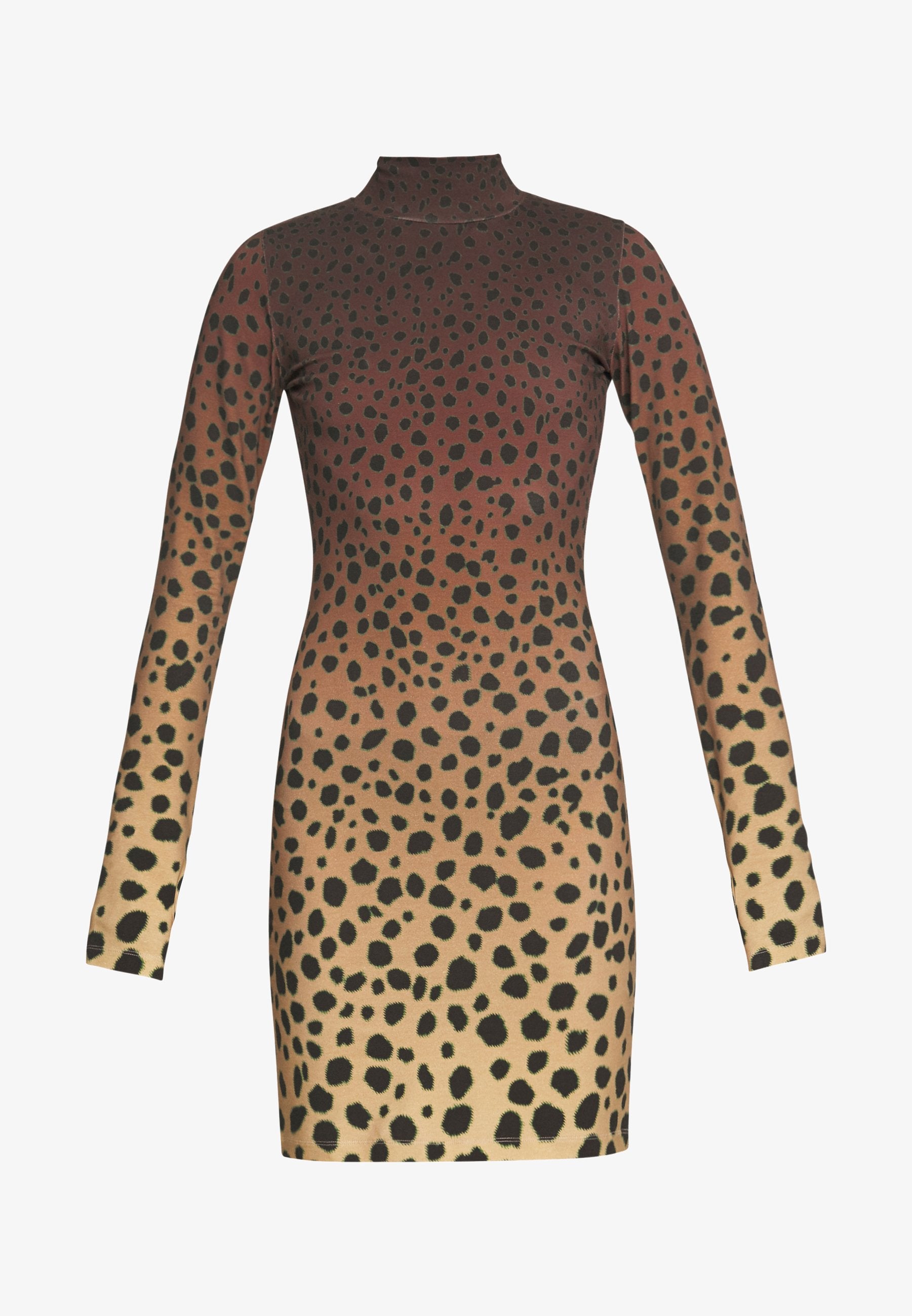 Cover yourself in Cheetah print, high neck, fitted mini dress of dreams