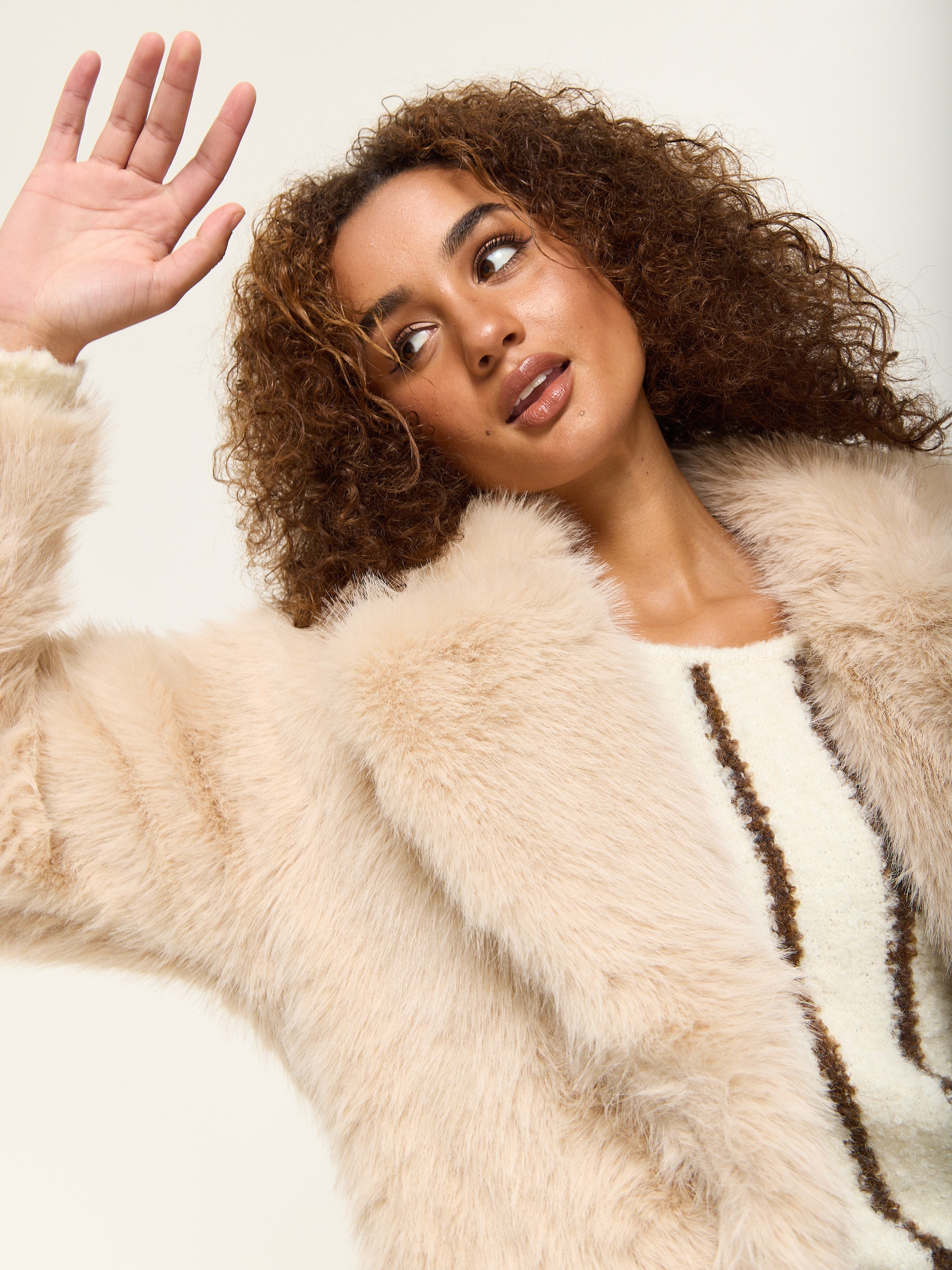This coat was made to turn heads. Throw it over relaxed denim and chunky boots for daytime attitude, or layer with sleek tailoring for evening elegance. Wherever you go, the Cream Long Faux Fur Coat brings instant polish and confidence.