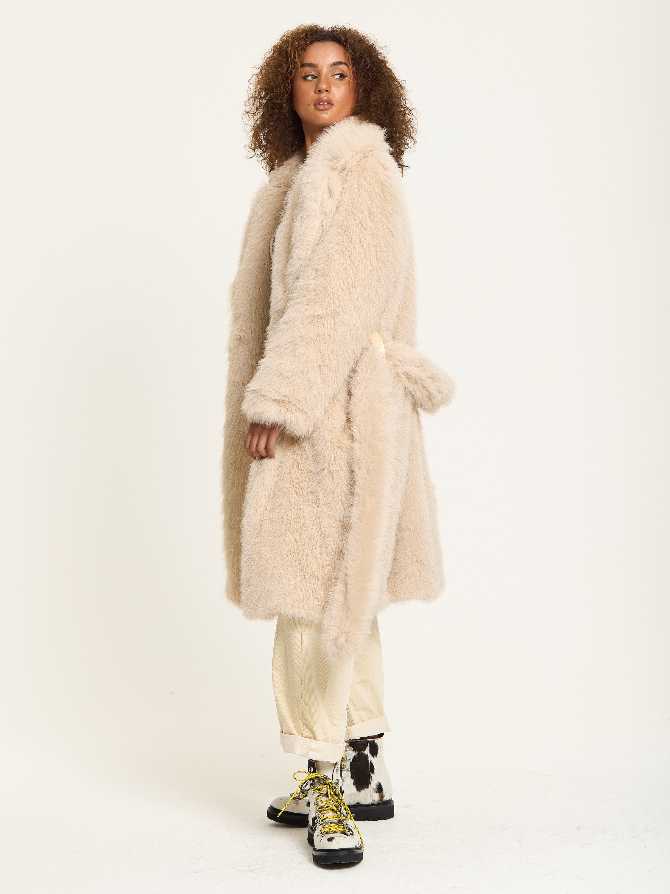 Wrap yourself in full-on glamour. The Cream Long Faux Fur Coat blends statement style with serious comfort, crafted from ultra-soft faux fur that feels as good as it looks. Designed in a relaxed, longline silhouette, this coat drapes beautifully while keeping you warm. The creamy tone adds a touch of understated luxury — a modern classic with a playful edge.