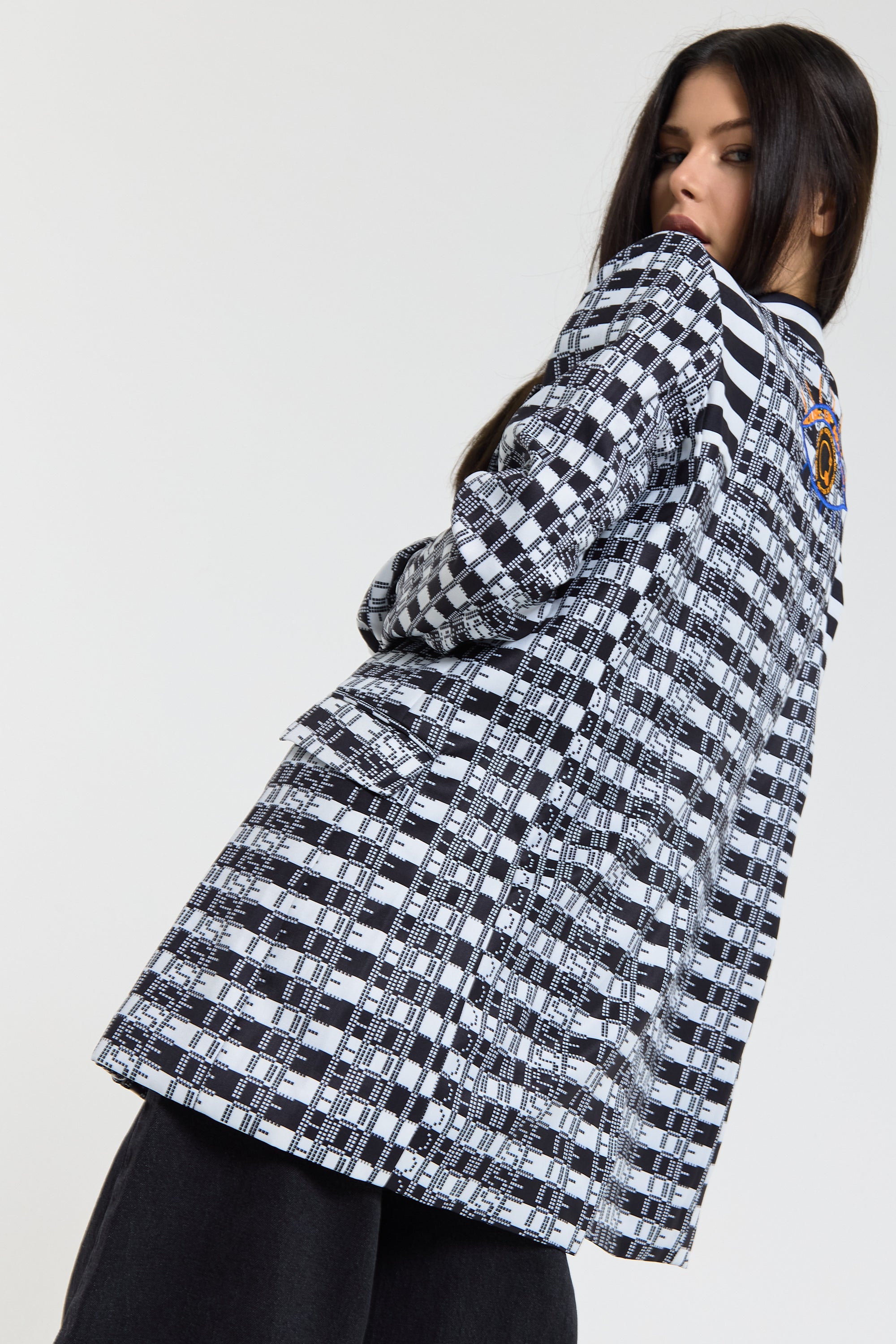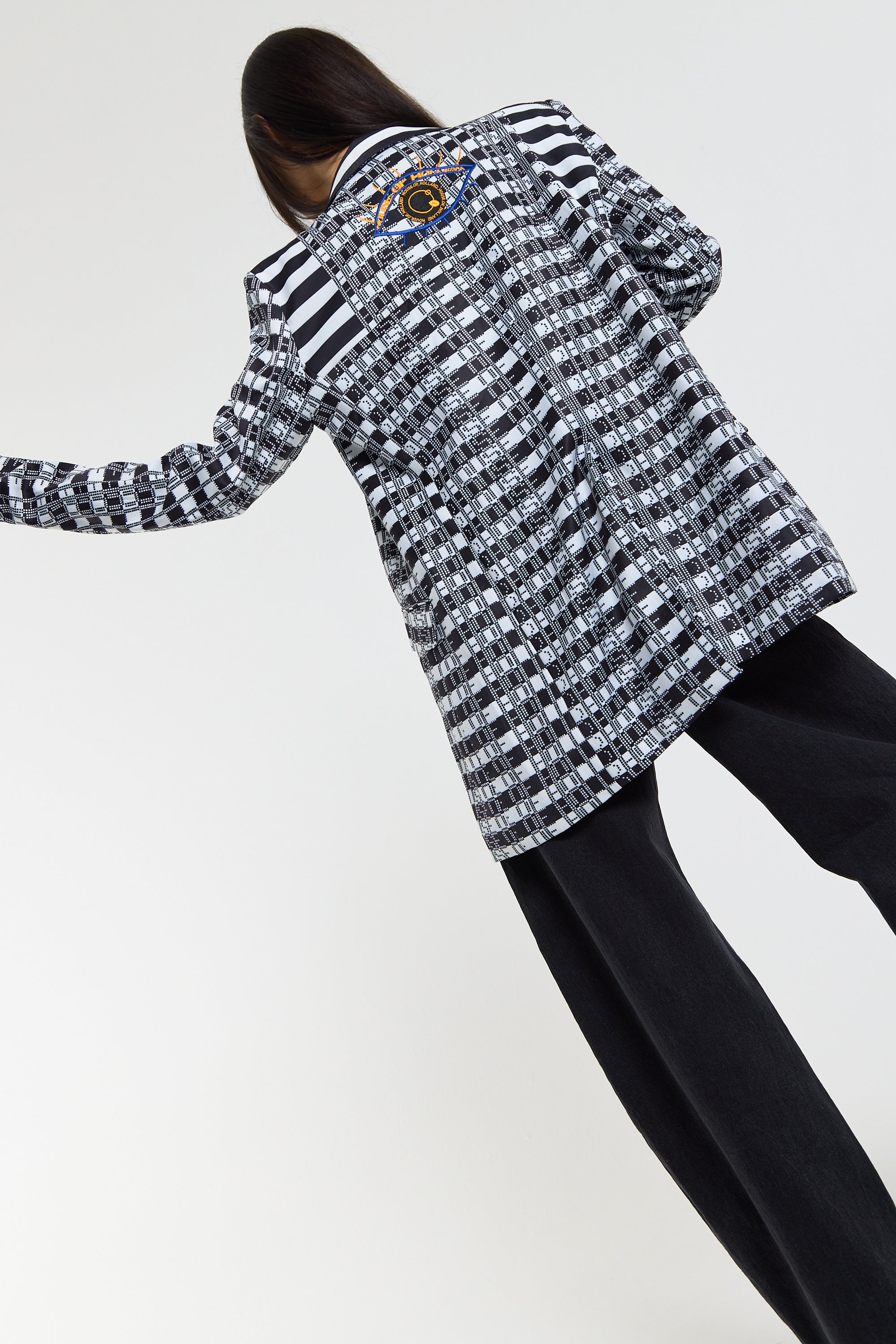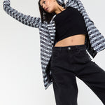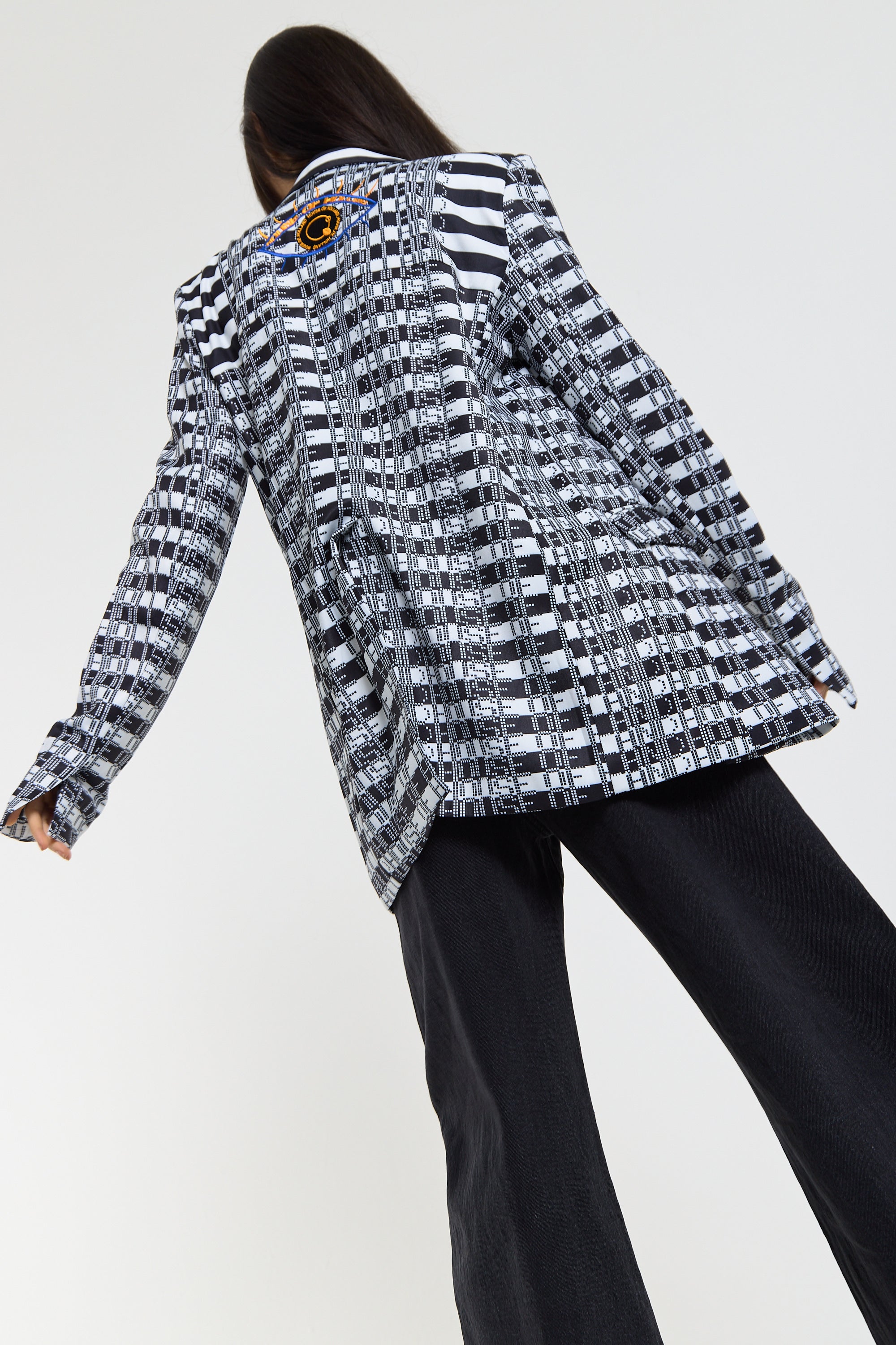 Embroidered Eye Check Blazer Jacket