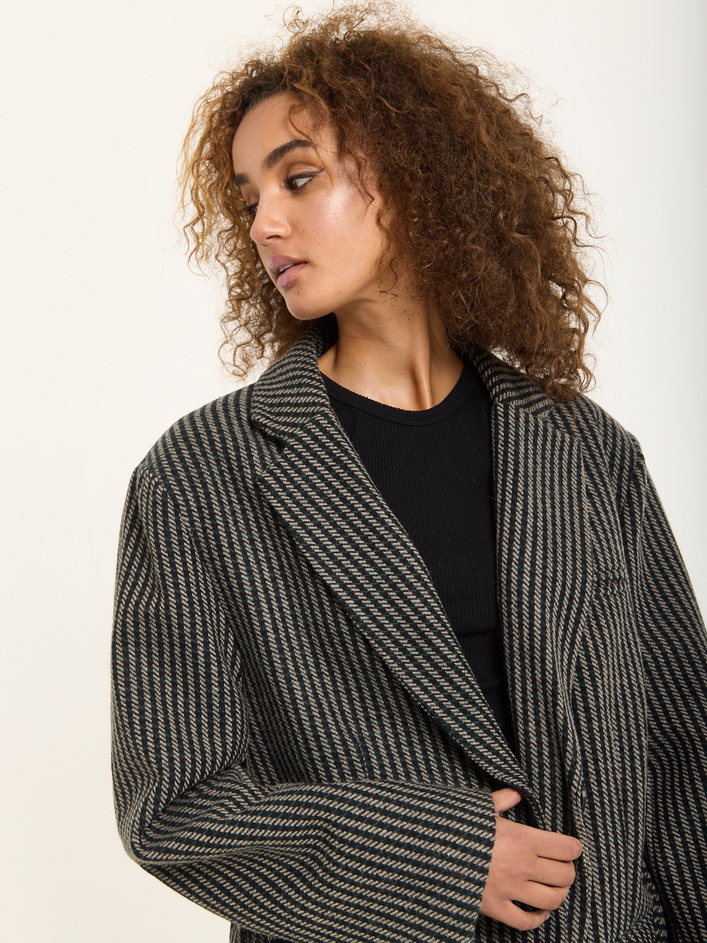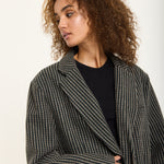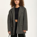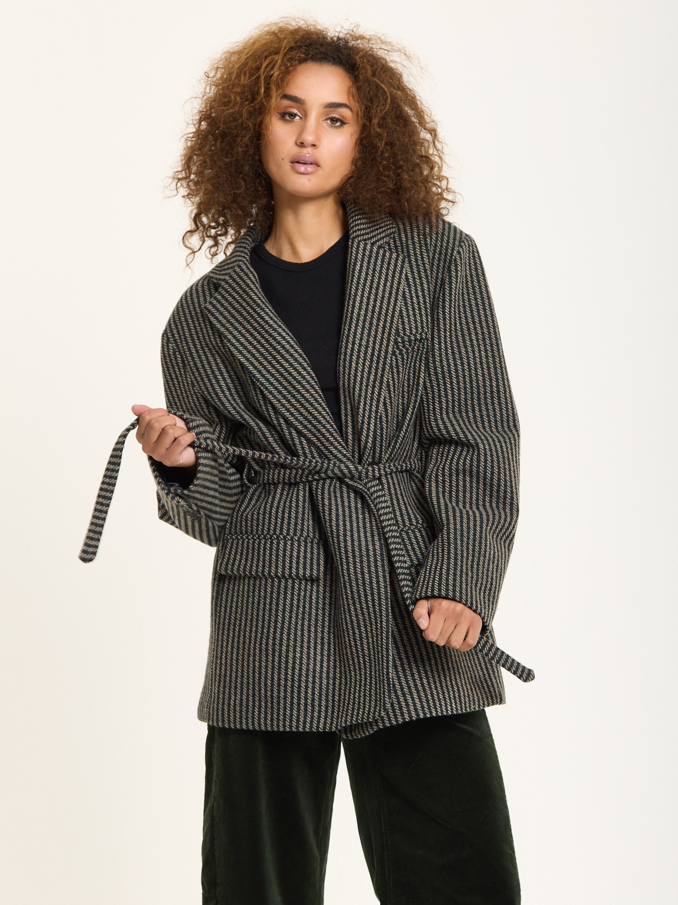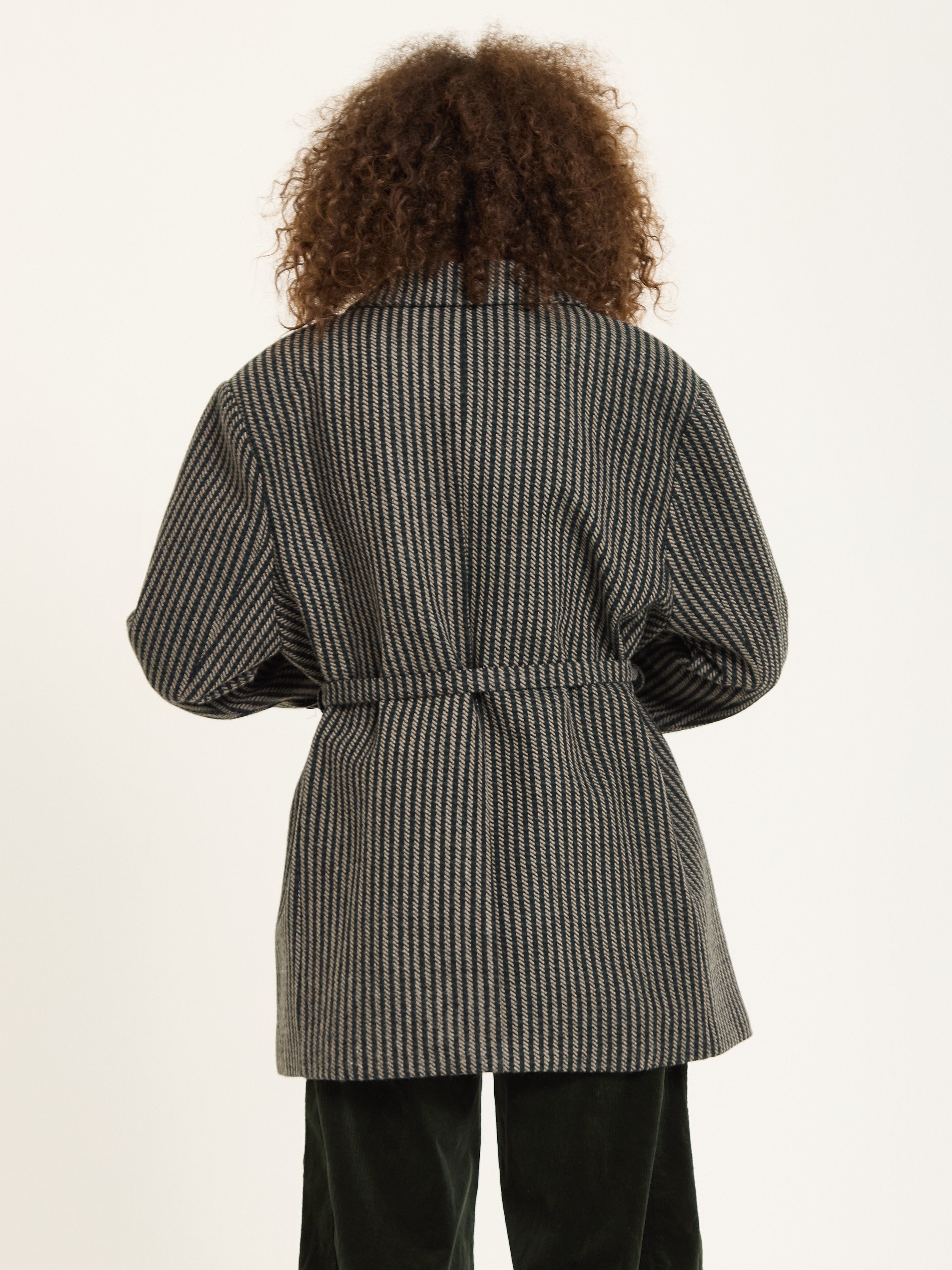 Tailored sophistication meets relaxed modernity in this wool blend belted blazer. Cut to an oversized silhouette, it features a subtle woven stripe pattern, notched lapels, and a matching fabric belt that cinches the waist for effortless definition. Designed to elevate both casual and smart looks, this piece blends classic structure with a laid-back House of Holland edge.