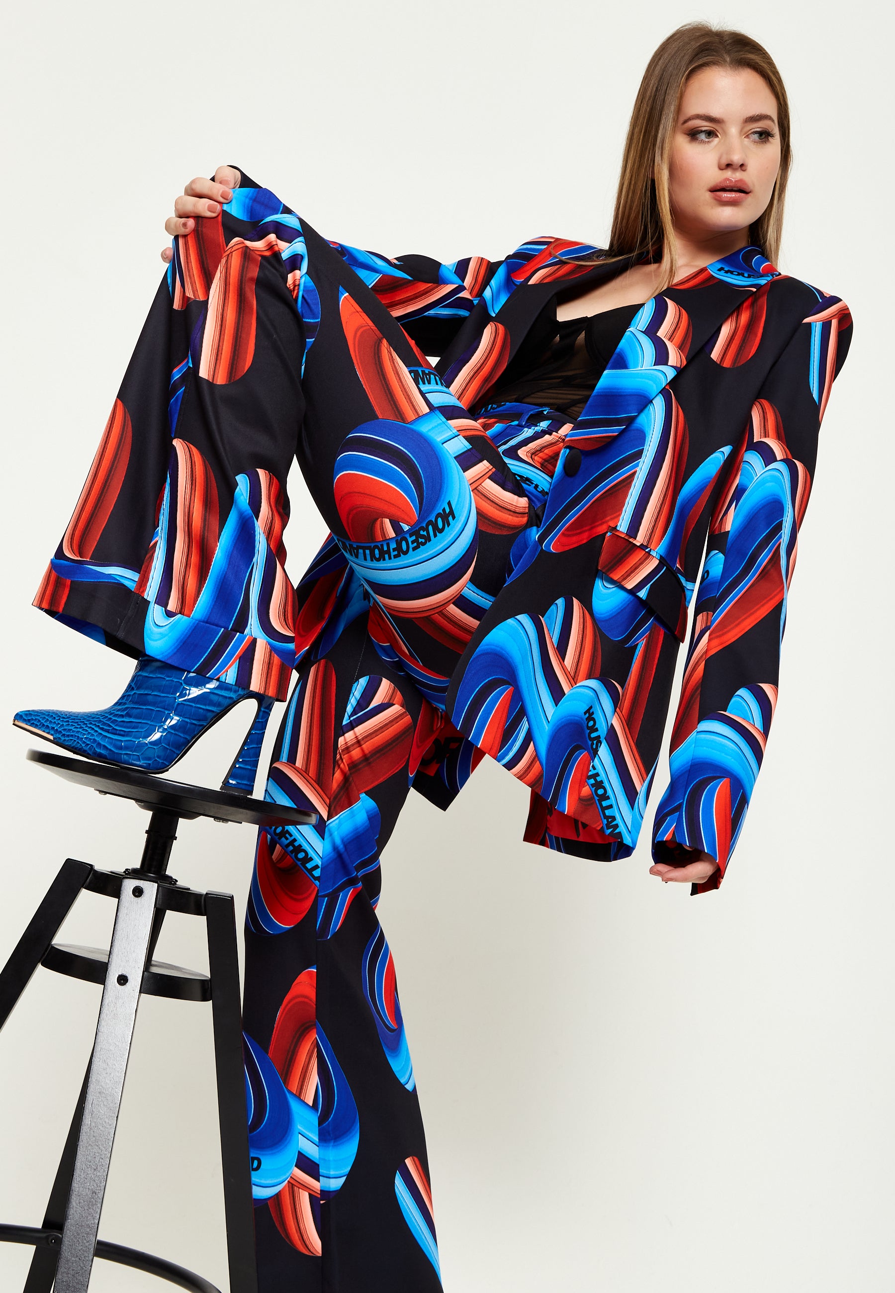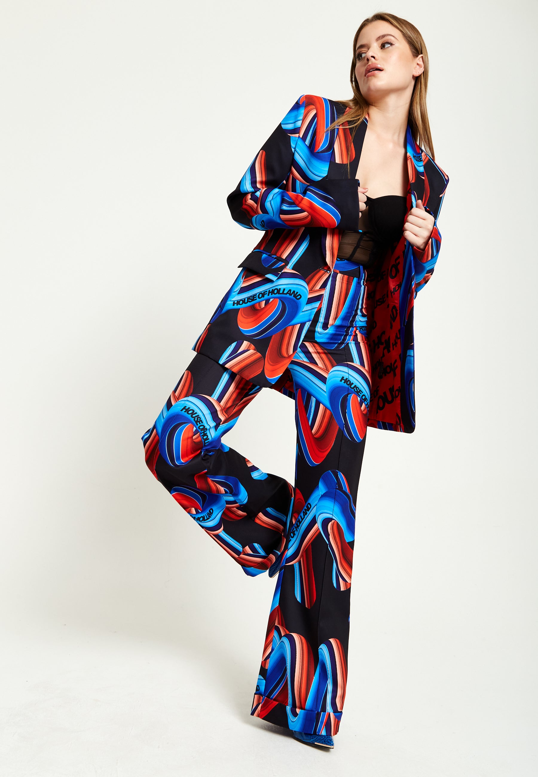 House Of Holland Abstract Print Blazer In Black, Red And Blue