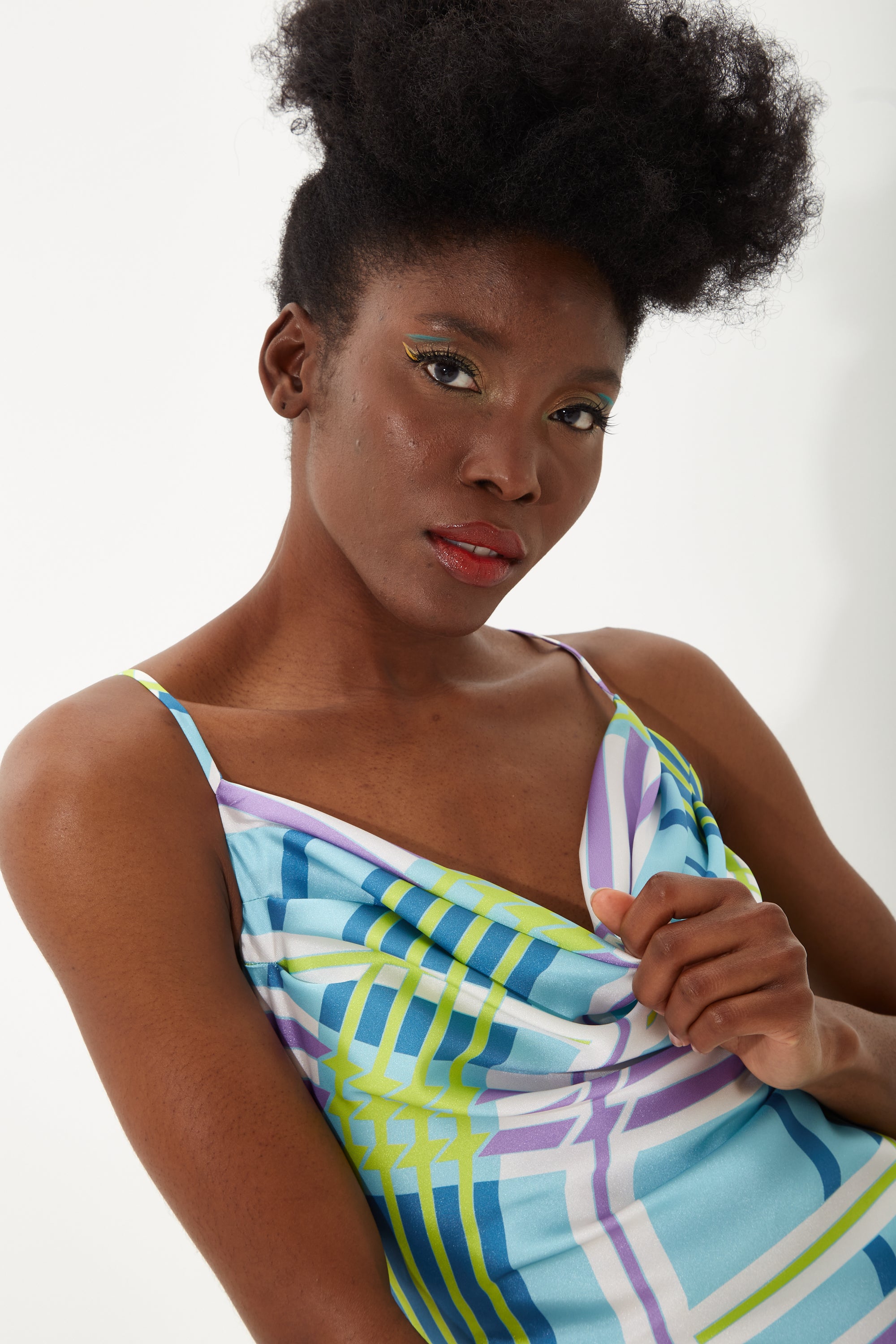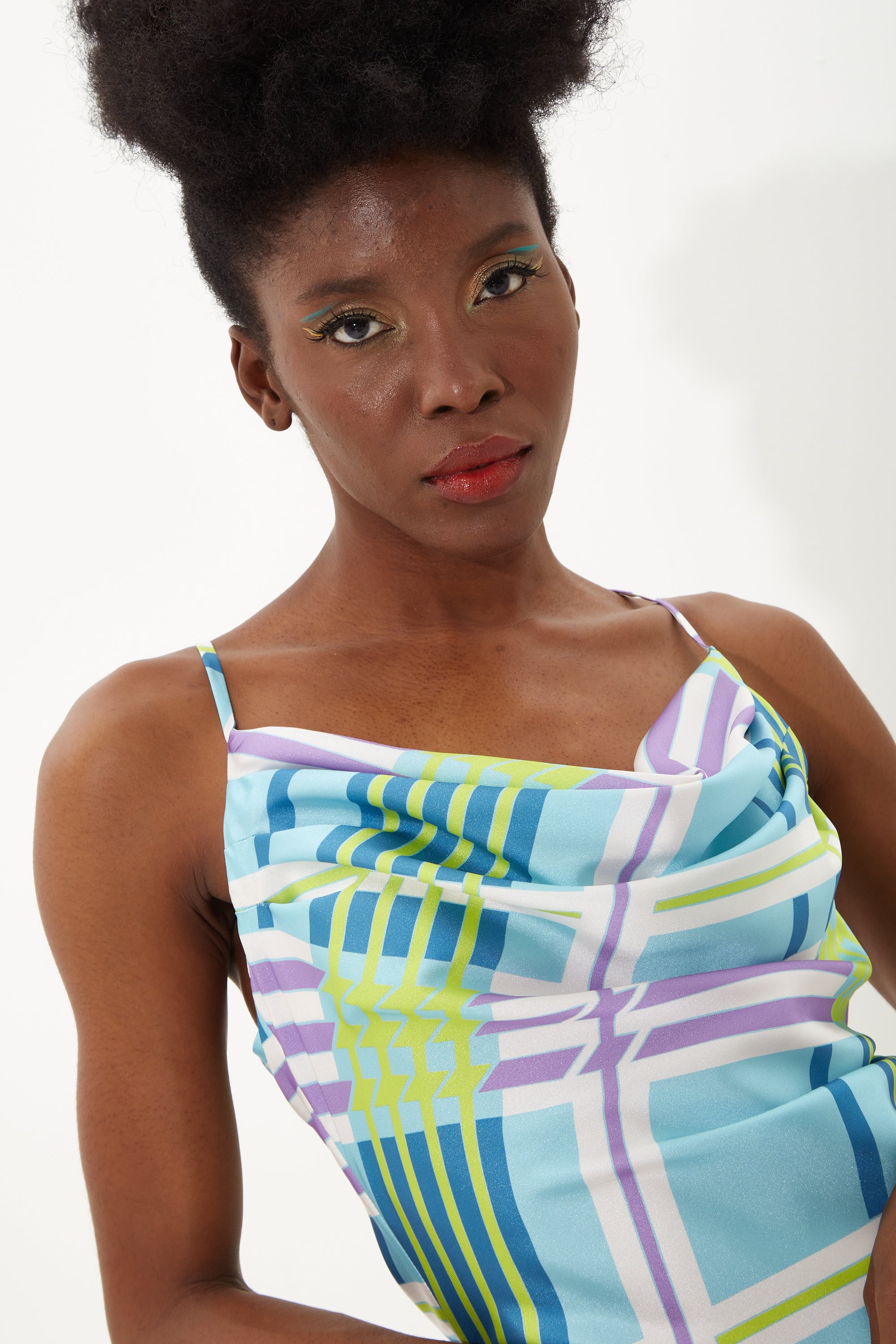 House Of Holland Cowl Neck Check Mini Dress With Adjustable Ruched Sides