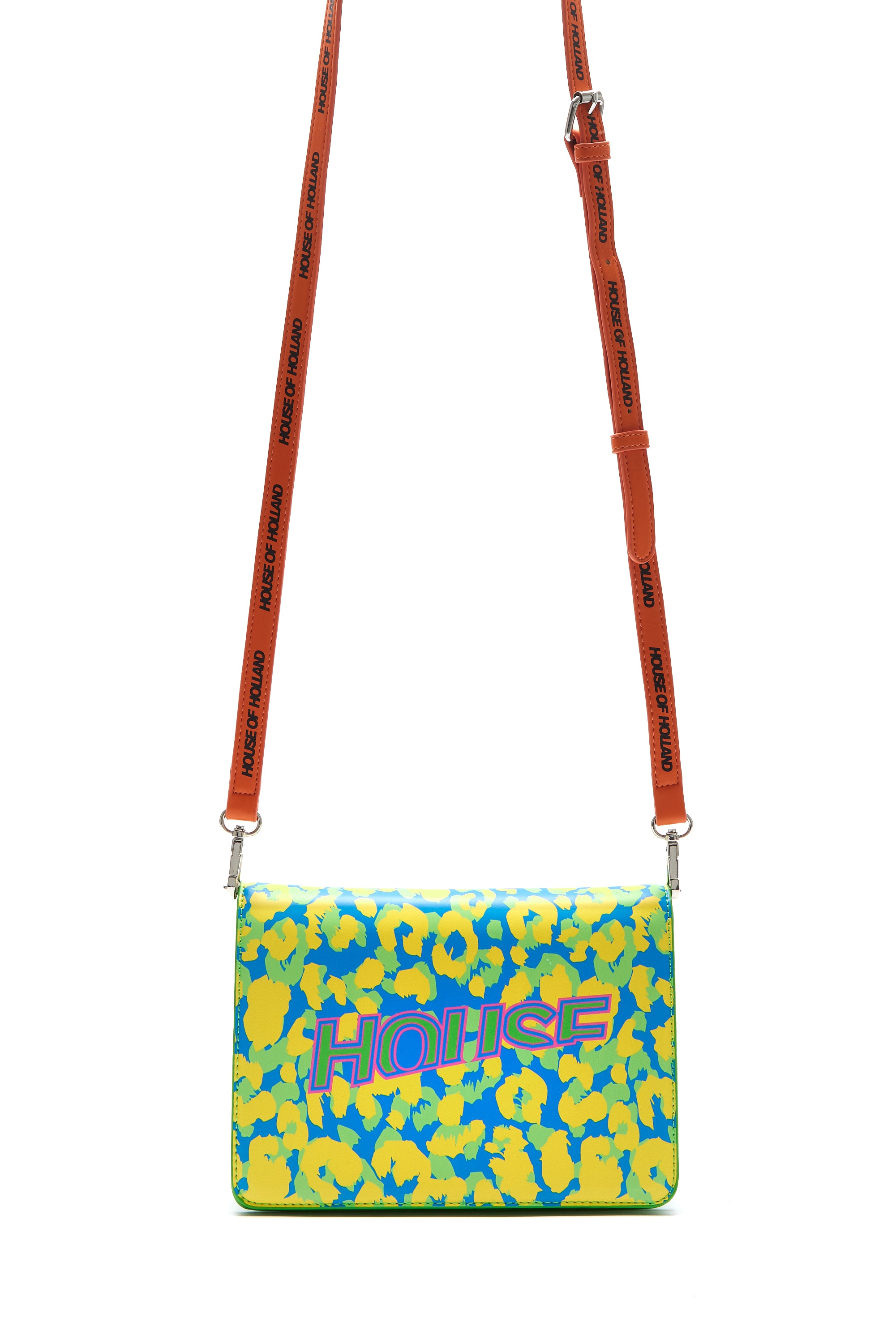 House Of Holland Cross Body Bag In Green With ‘House’ Print