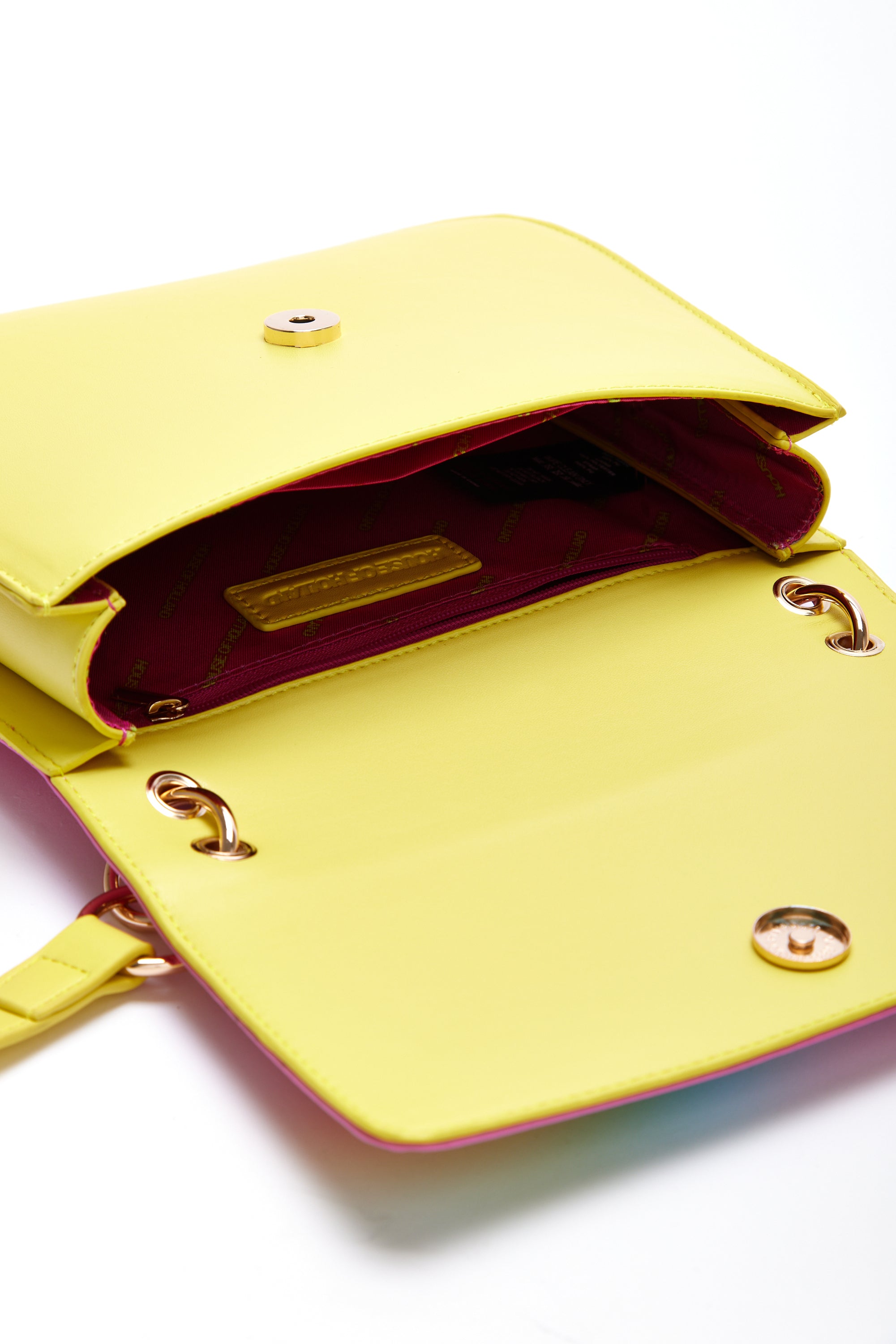 House Of Holland Cross Body Bag In Yellow With A Rainbow Print Flap