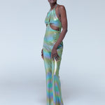 Keep your cool in this cut-out jumpsuit from House of Holland in petrol gradient effect , featuring drawstring halter neck