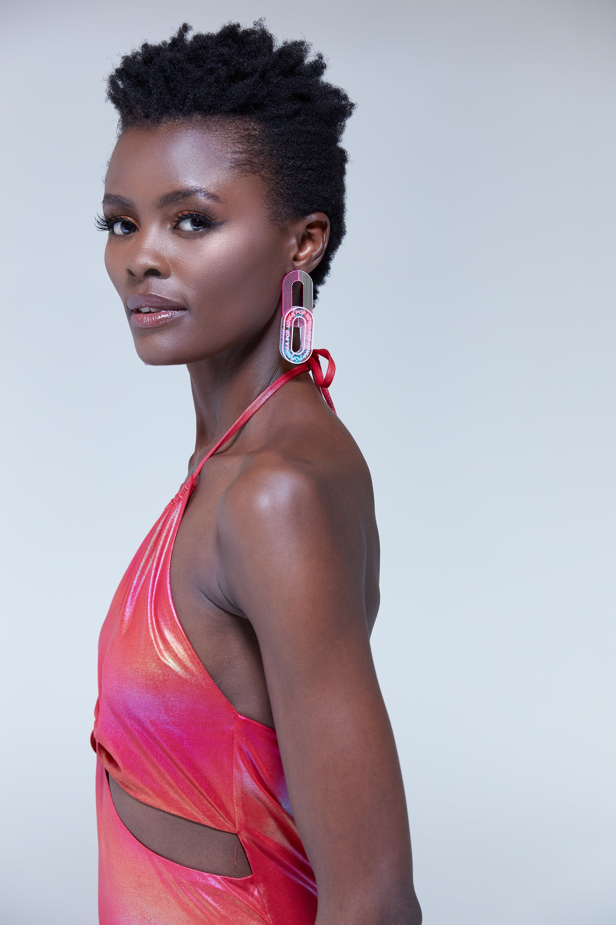 House of Holland Cut Out Halter-Neck Mini Dress in Pink