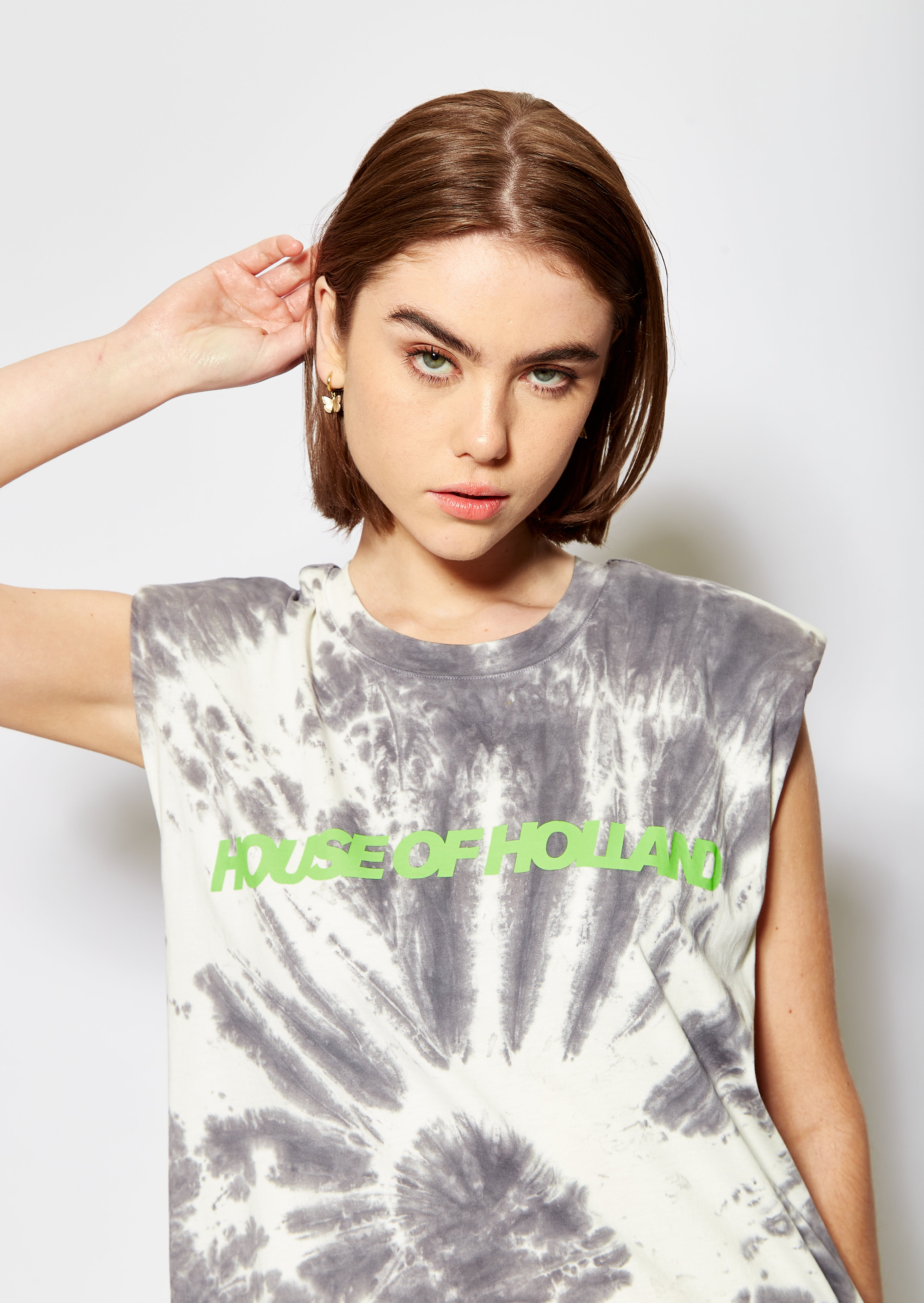 Tie-dye summer vibes with extra fabulous padded shoulder detail!