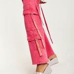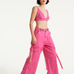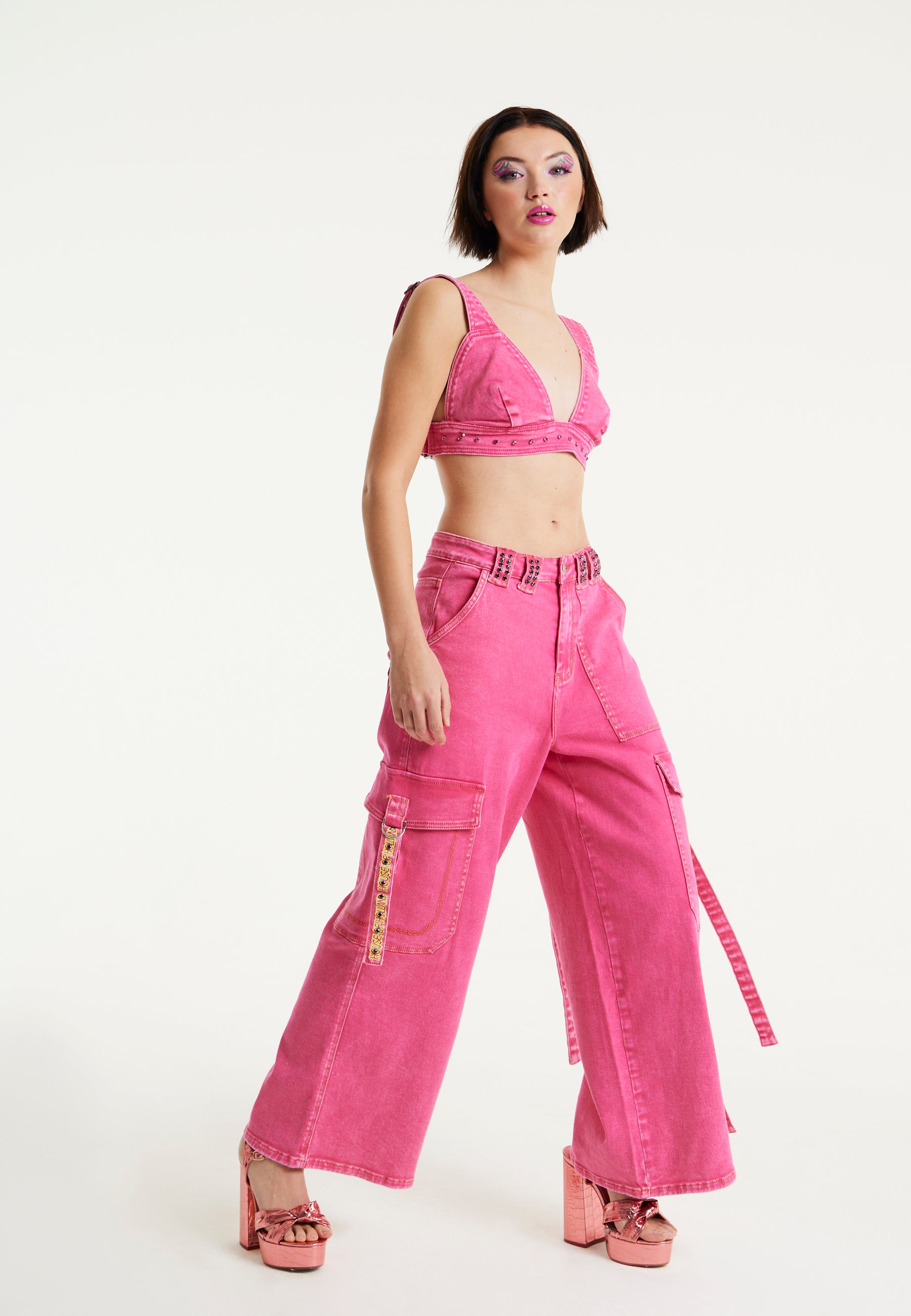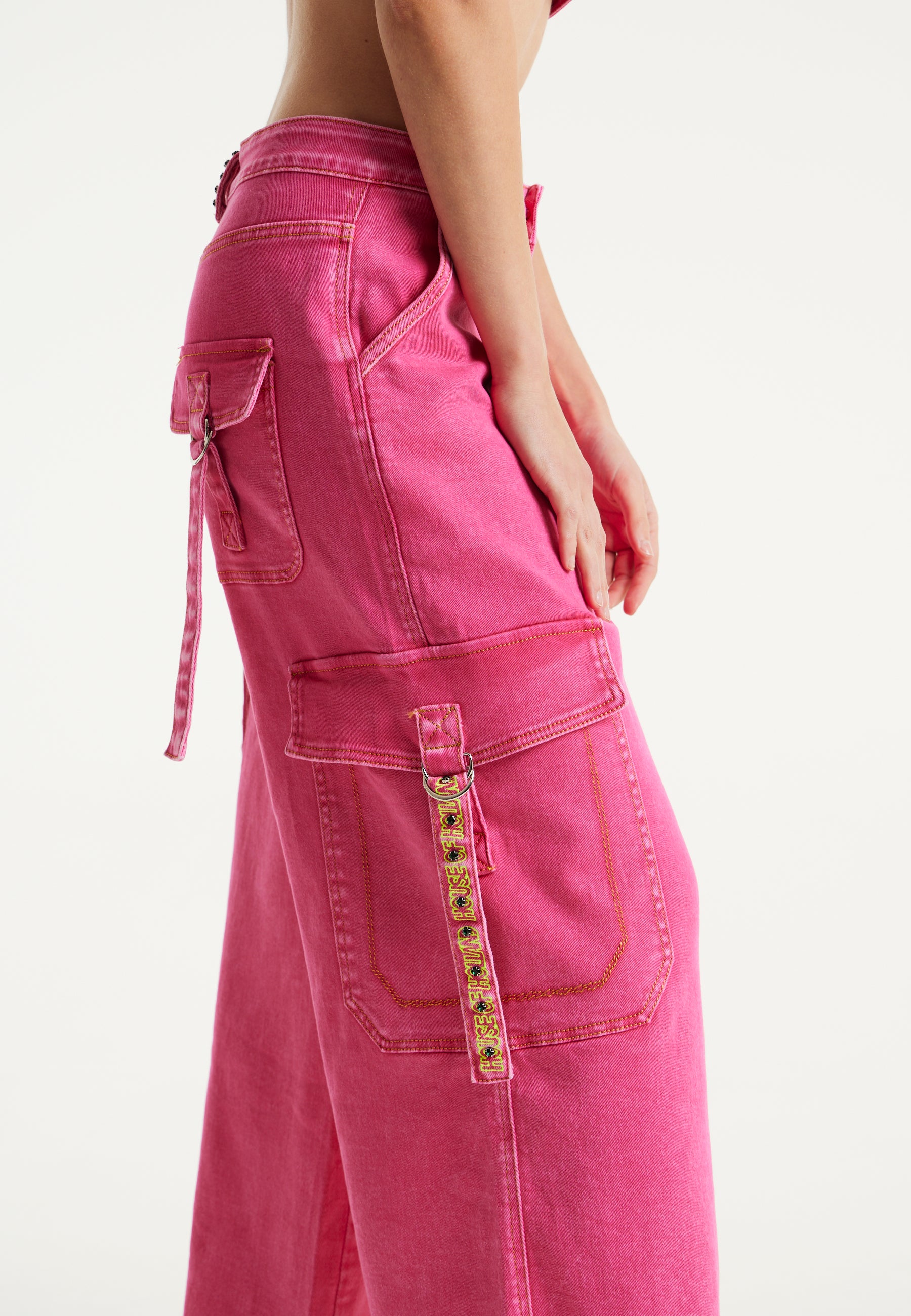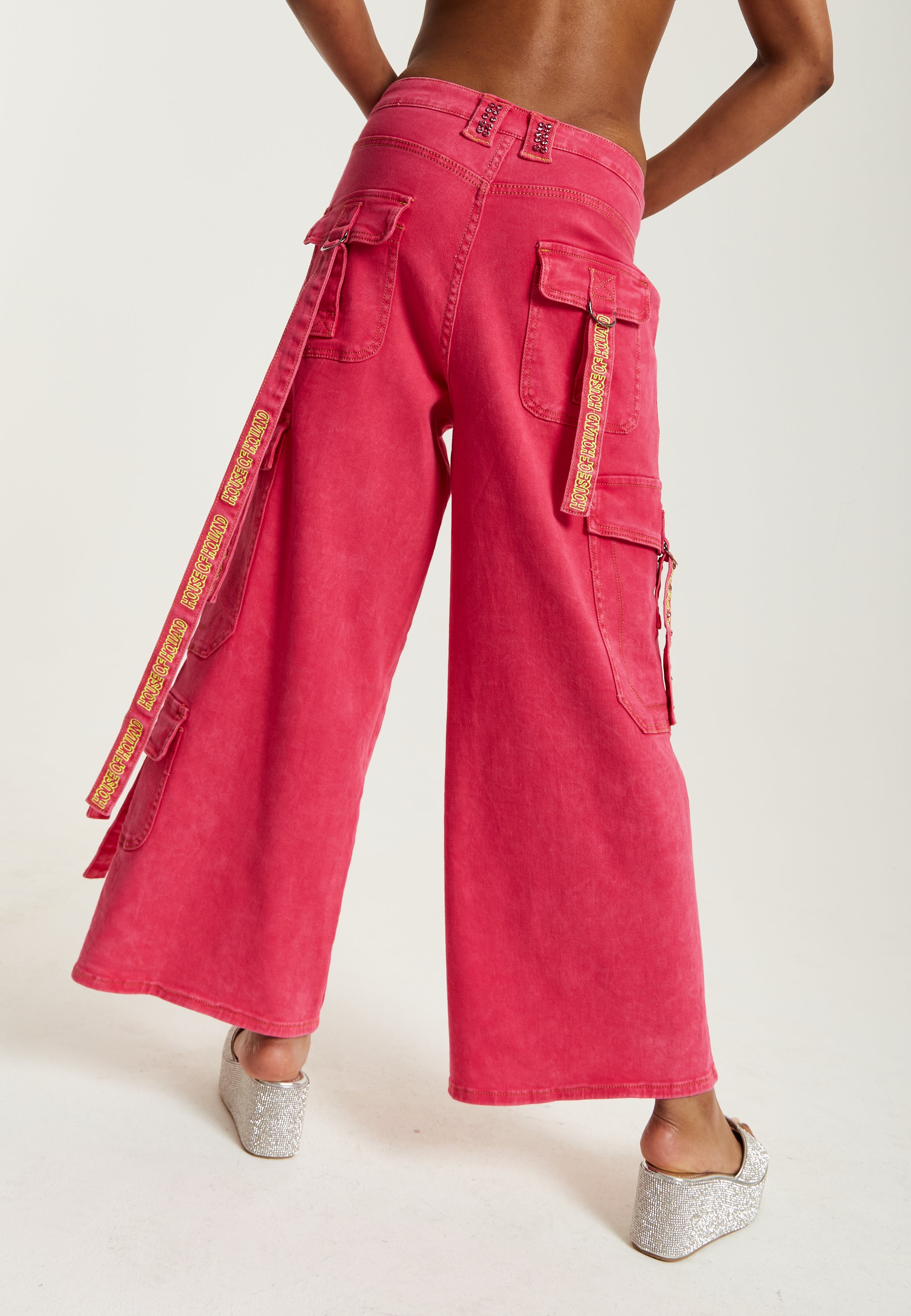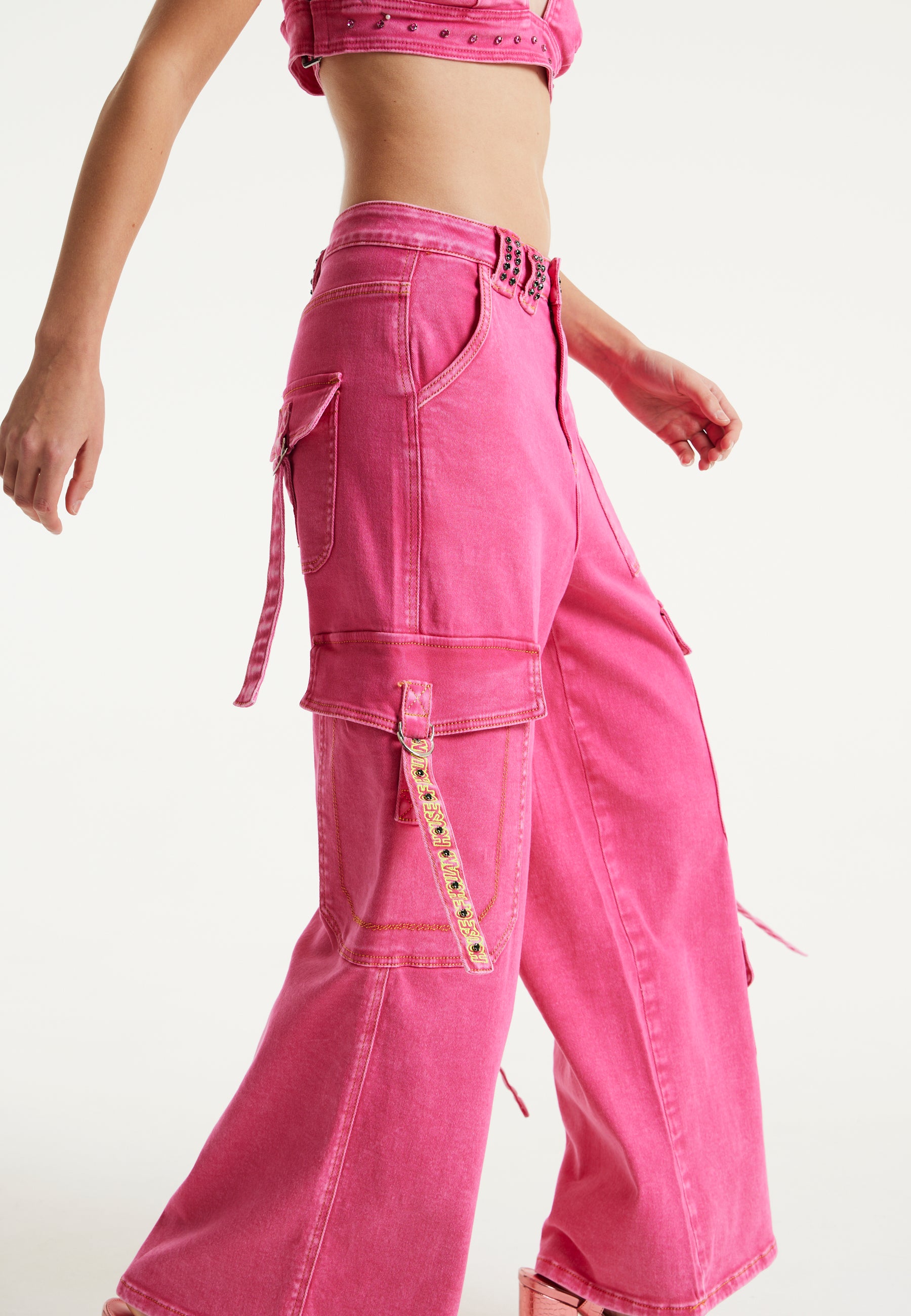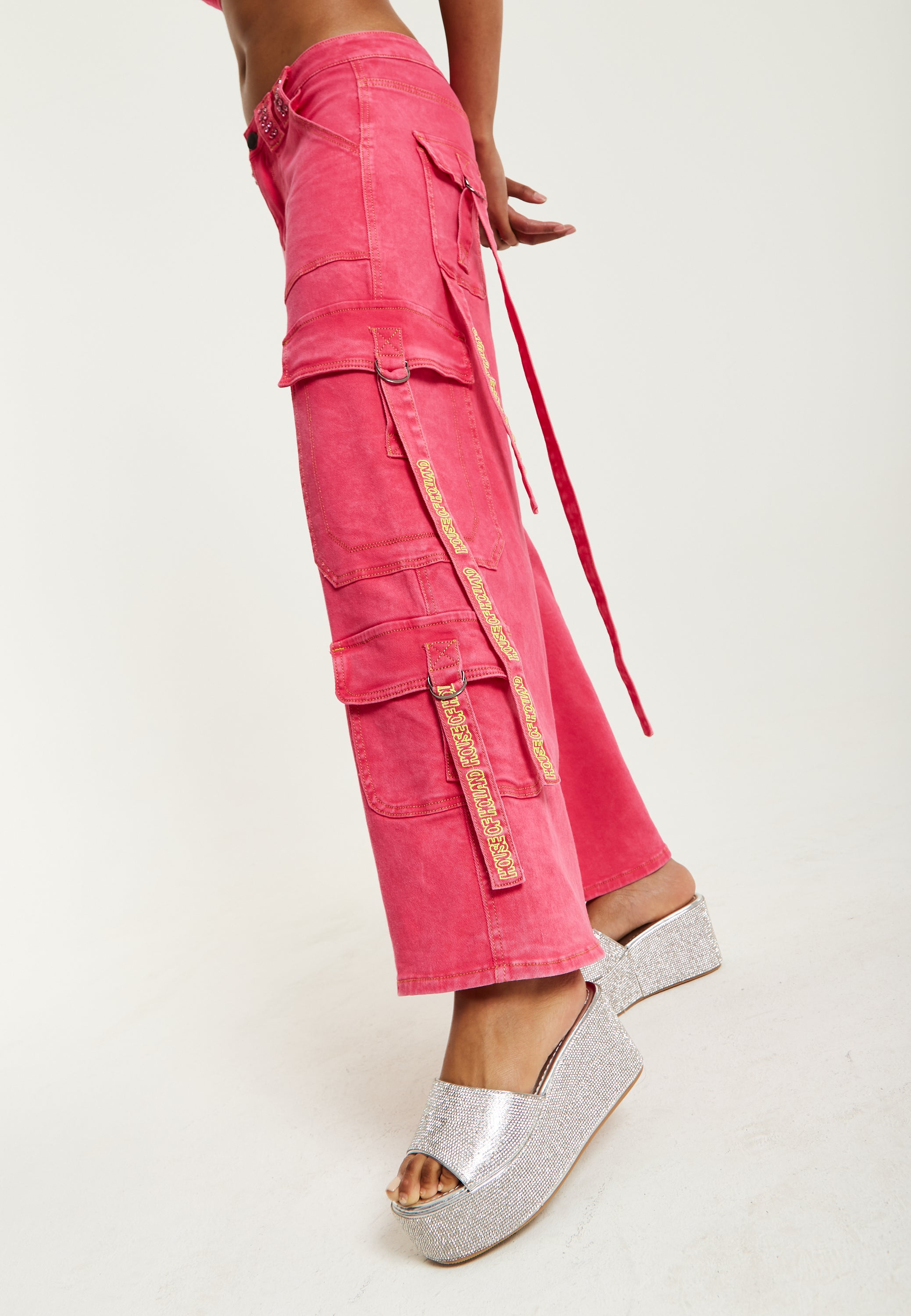 House of Holland Hot Pink Denim Wide Leg Cargo Trousers