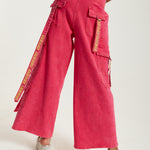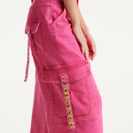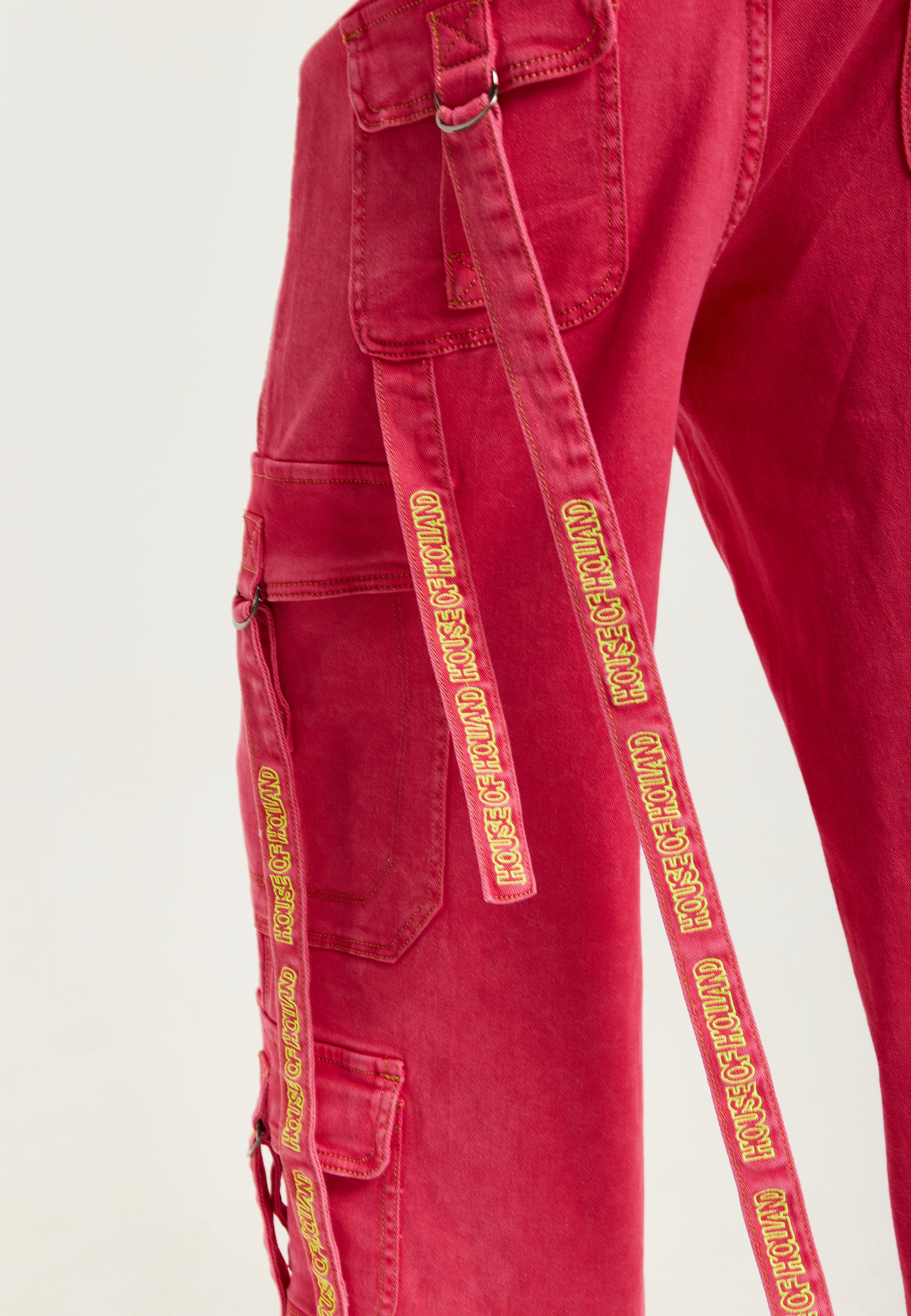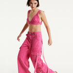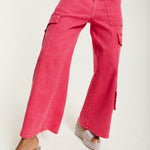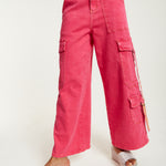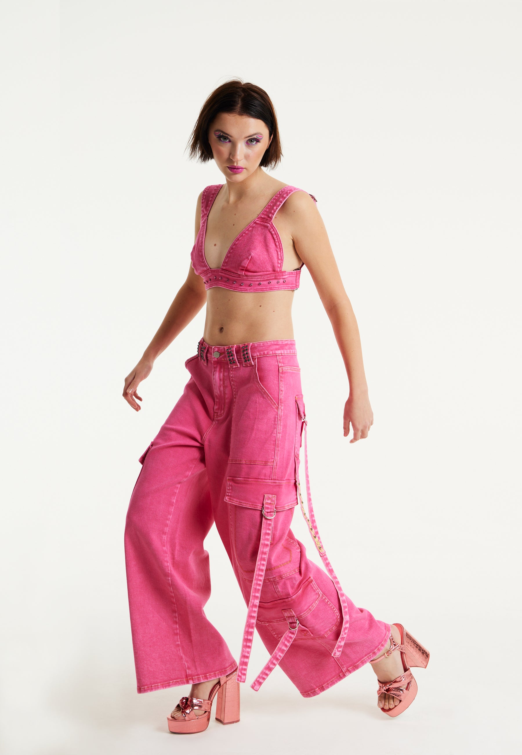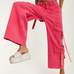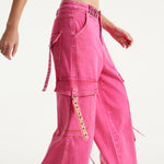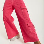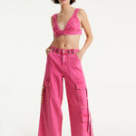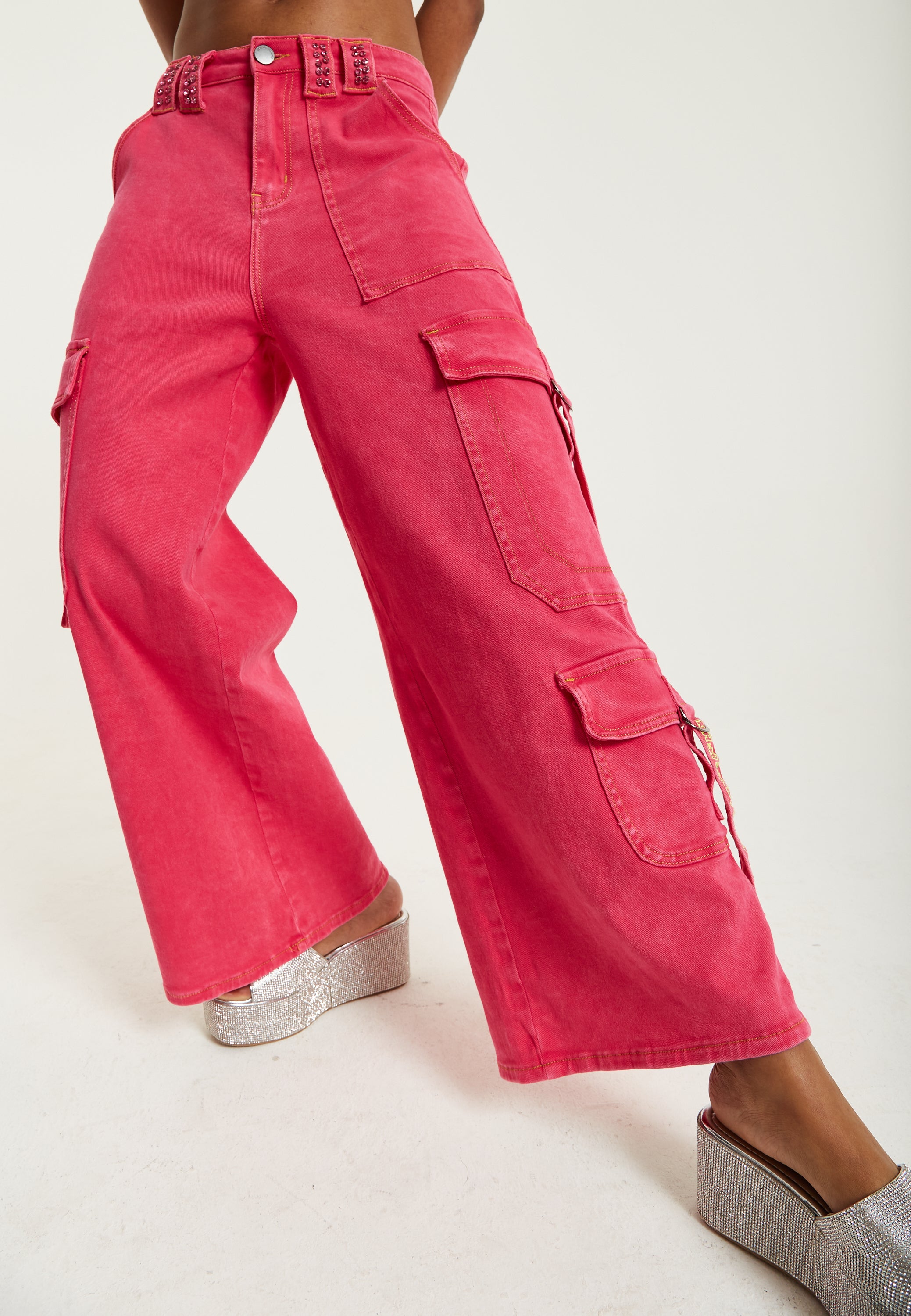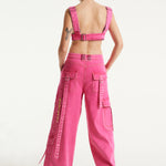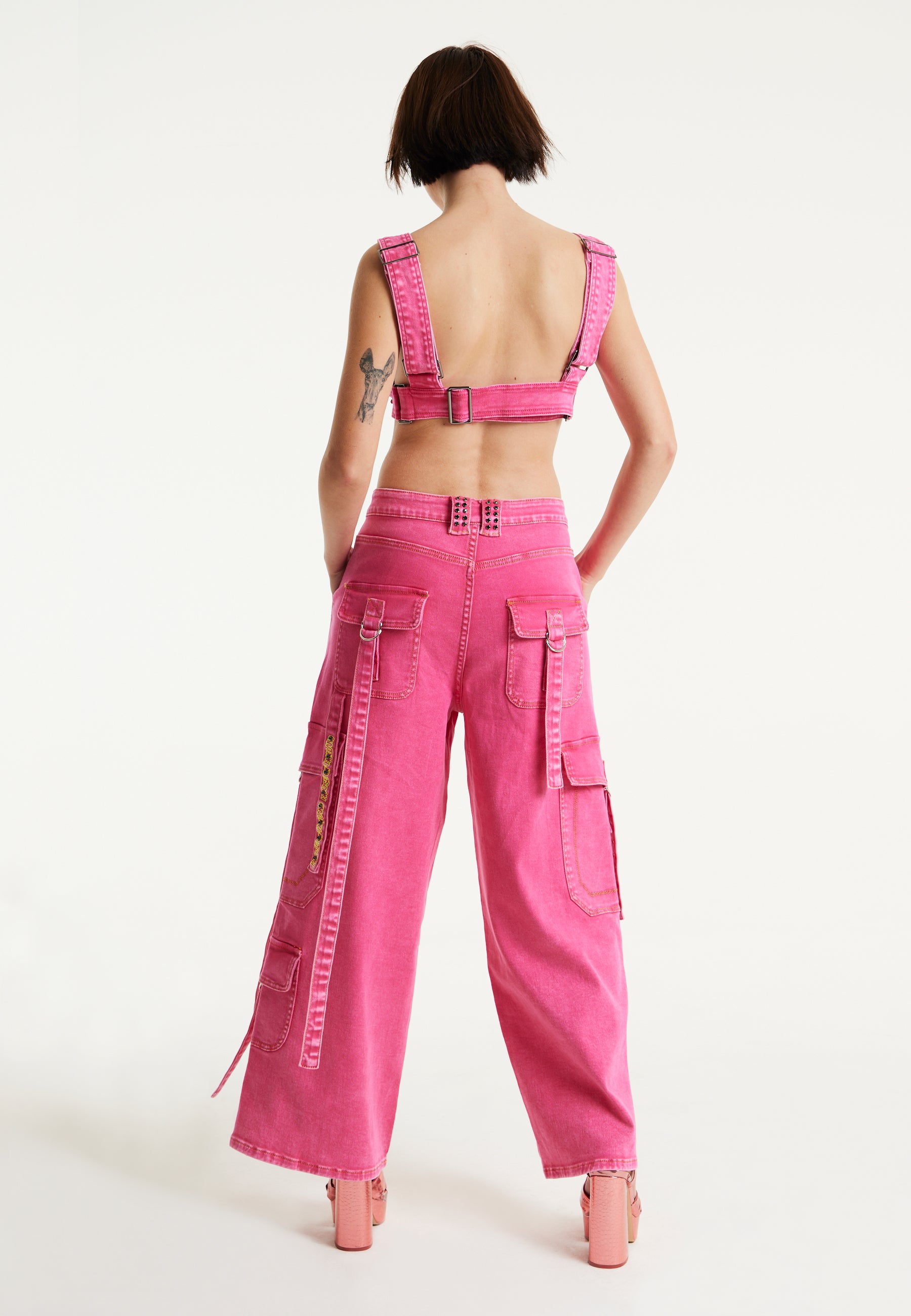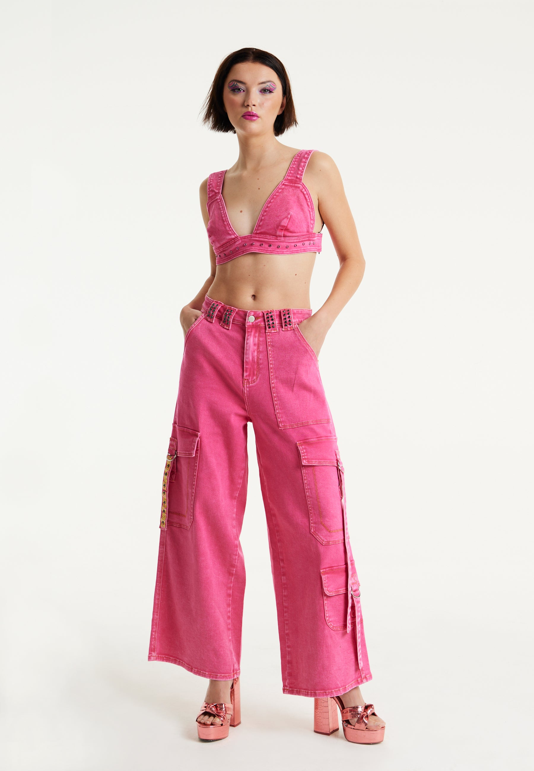 House of Holland Hot Pink Denim Wide Leg Cargo Trousers