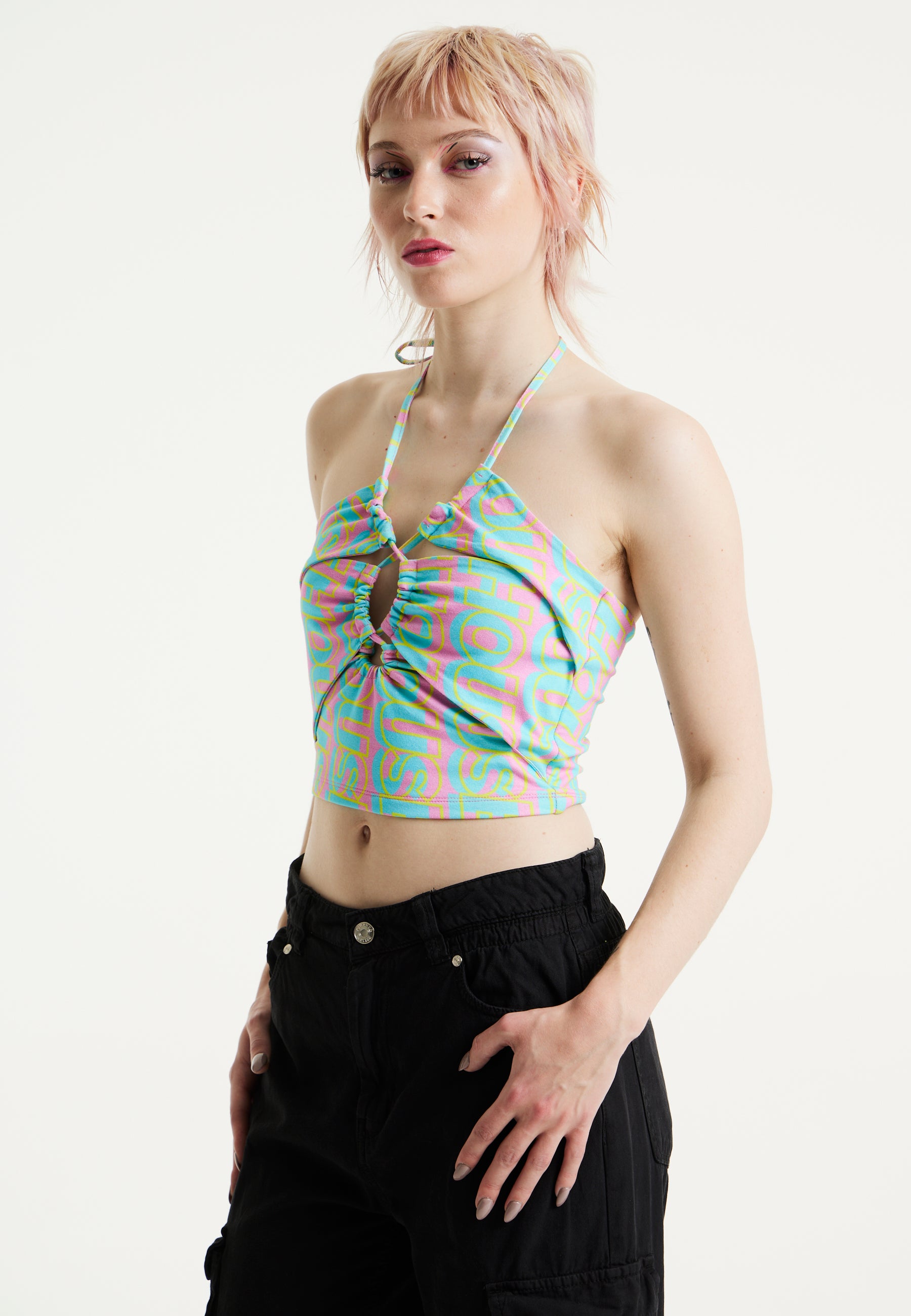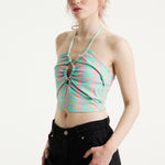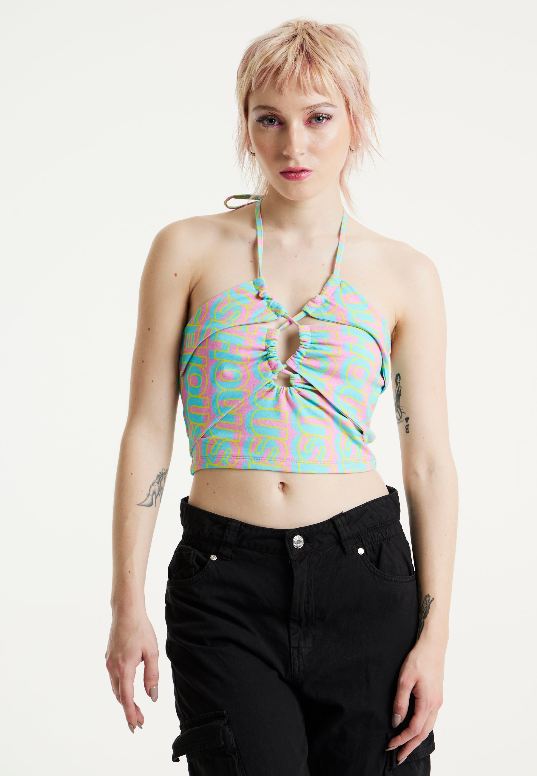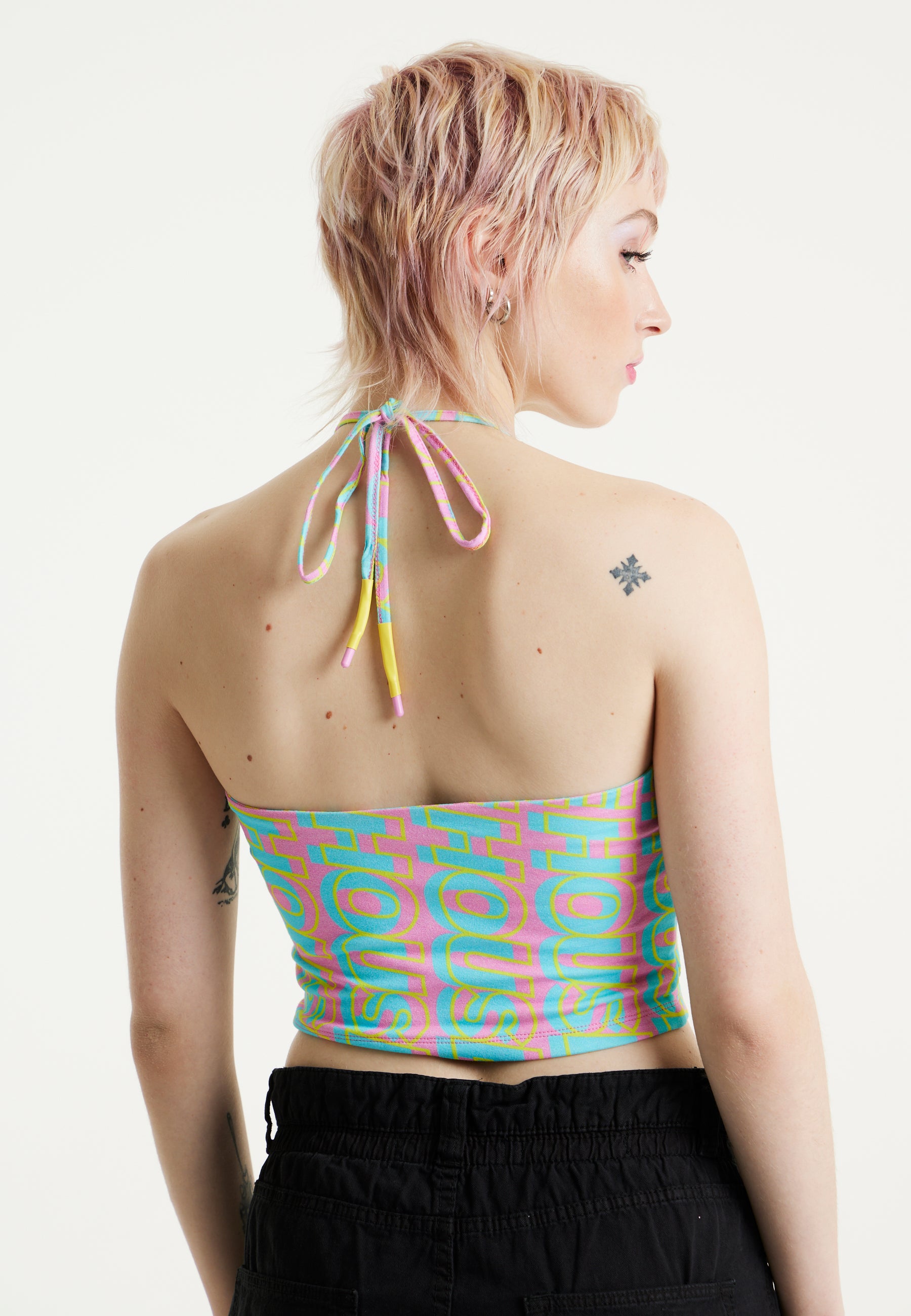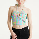 House Of Holland Logo Printed Halter Neck Crop Top