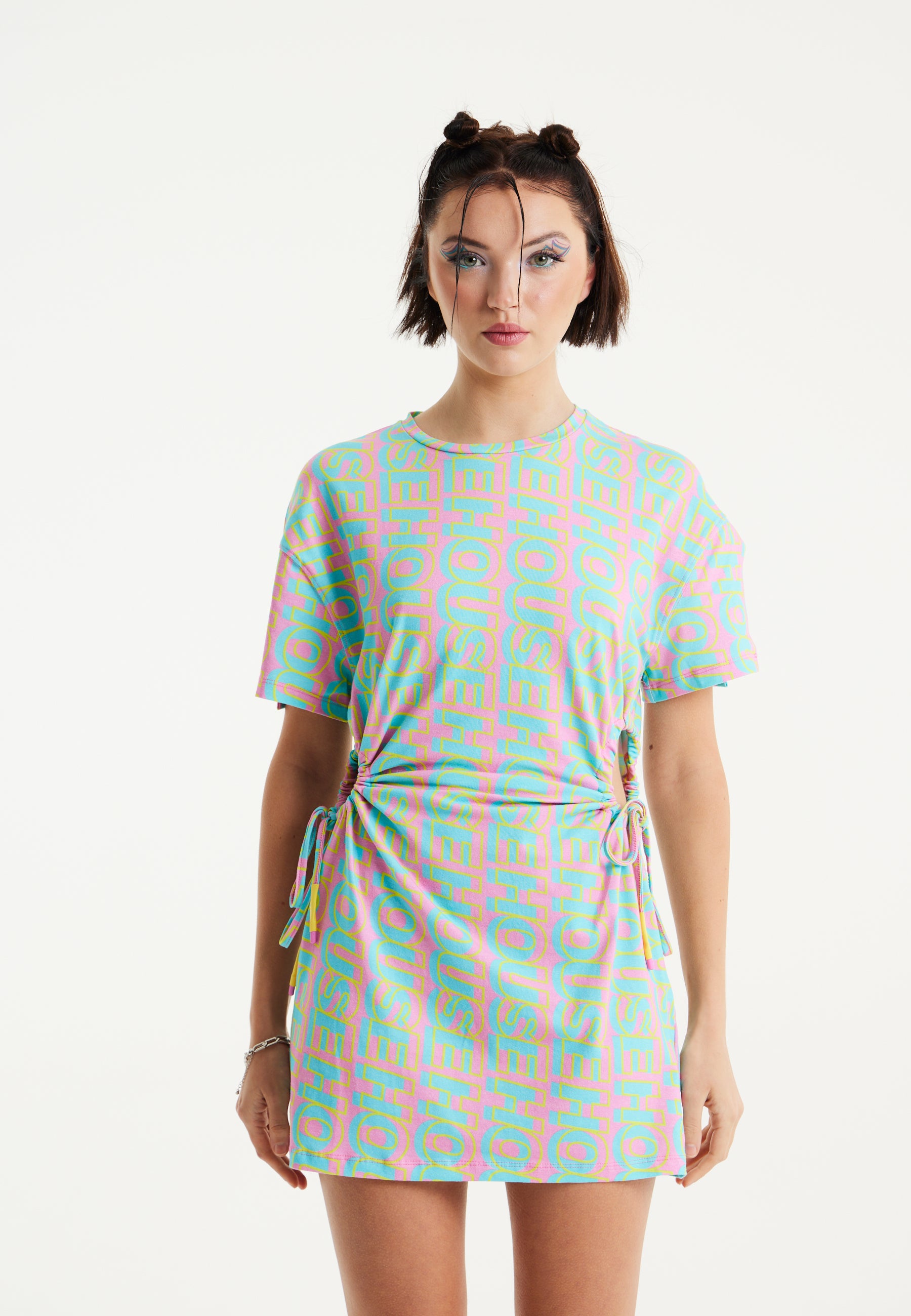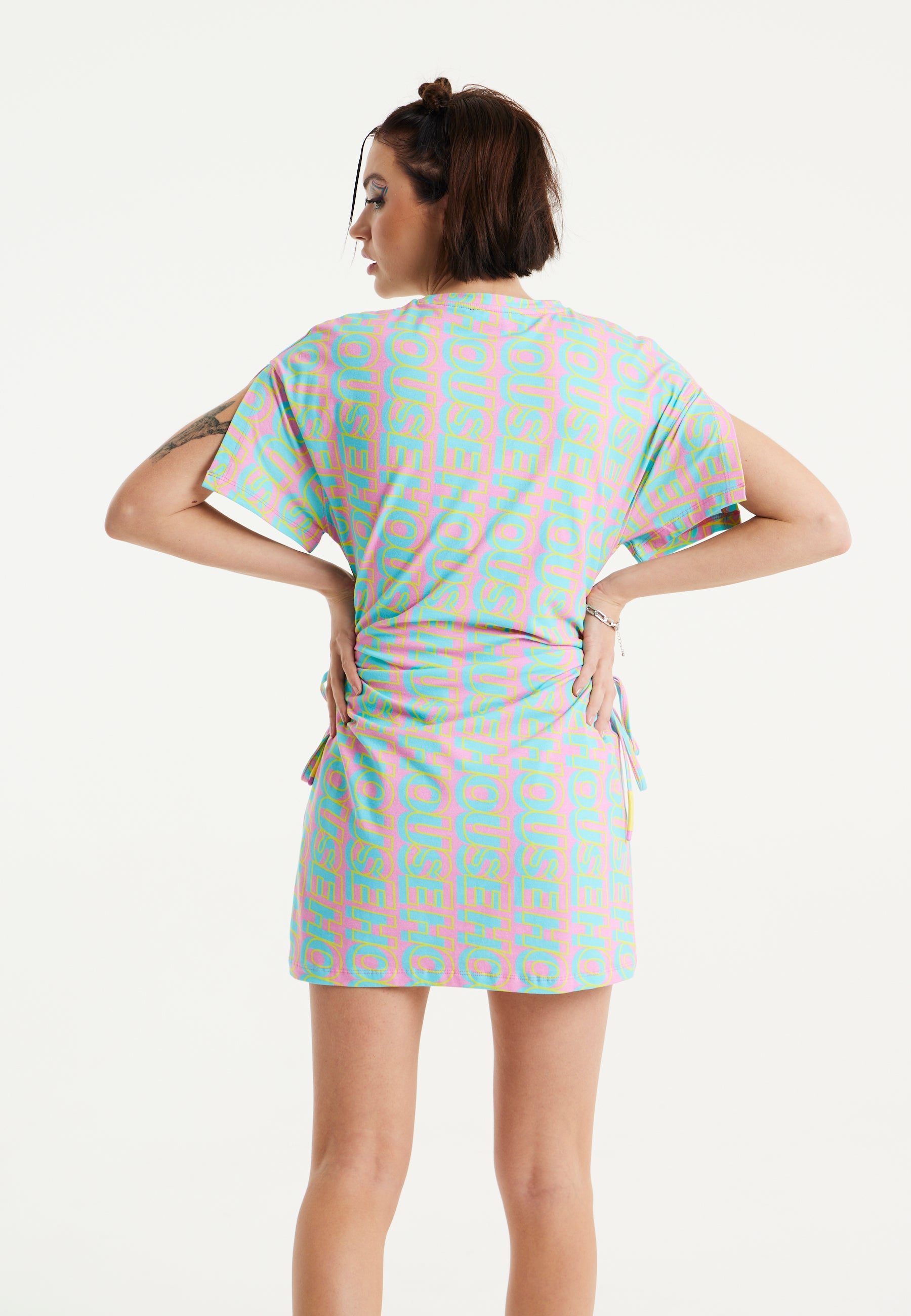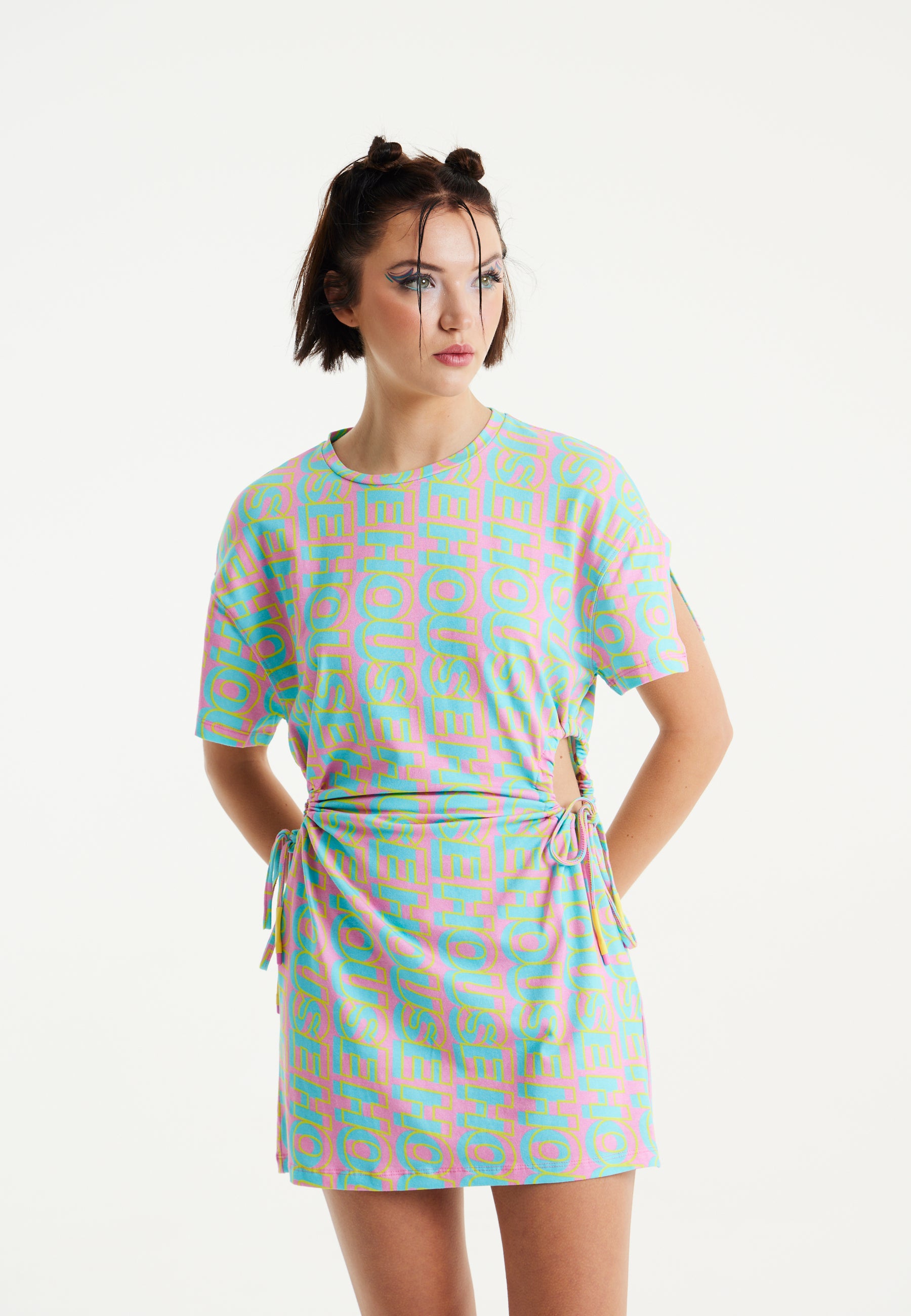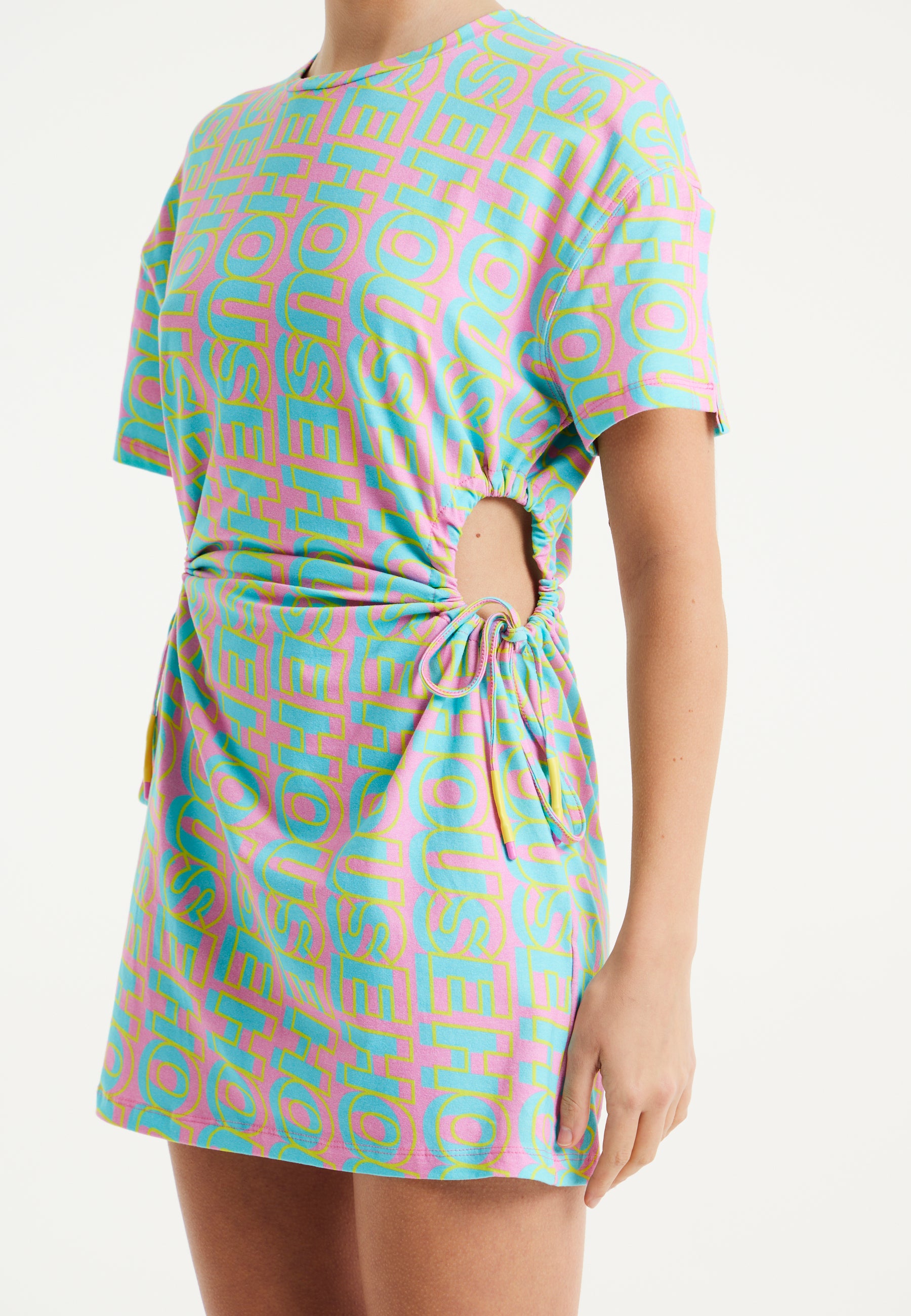 House Of Holland Logo Printed Mini Jersey Dress with Cut Out Details and Short Sleeves