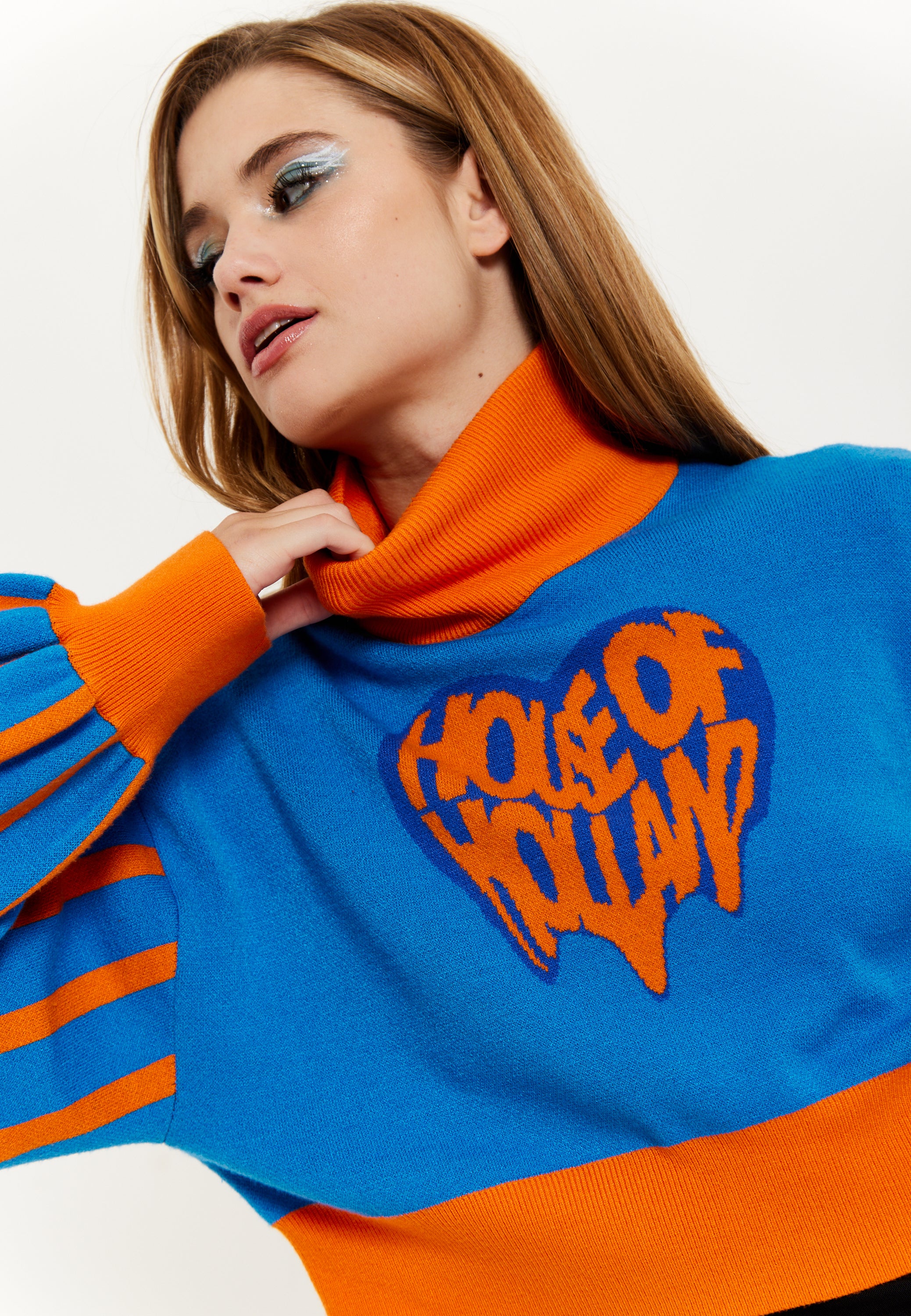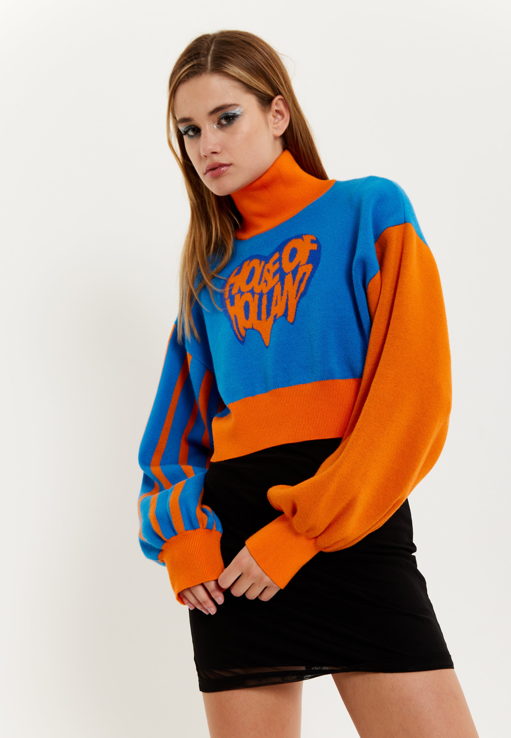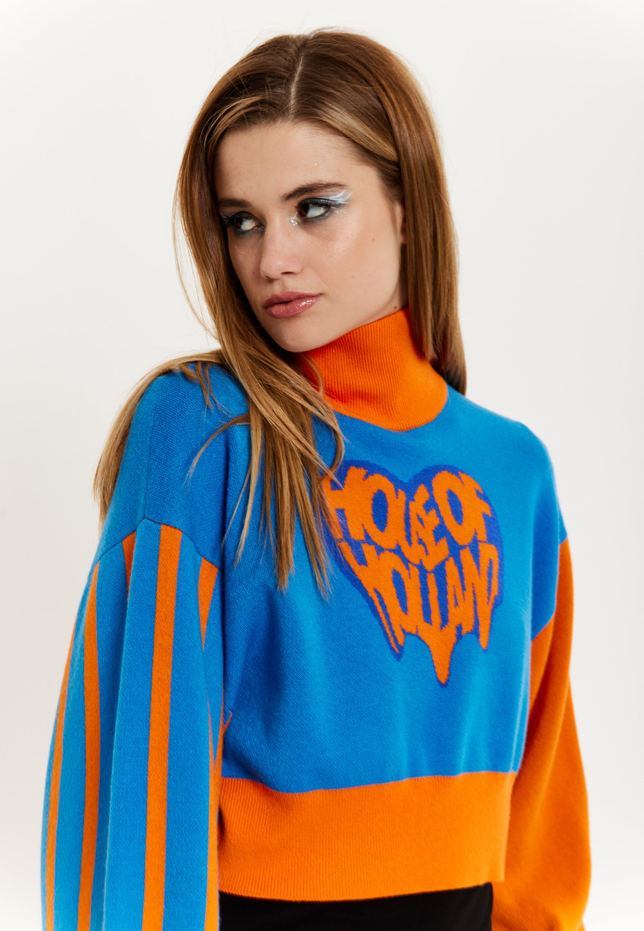 House Of Holland Melting Heart Logo Jumper in Blue And Orange