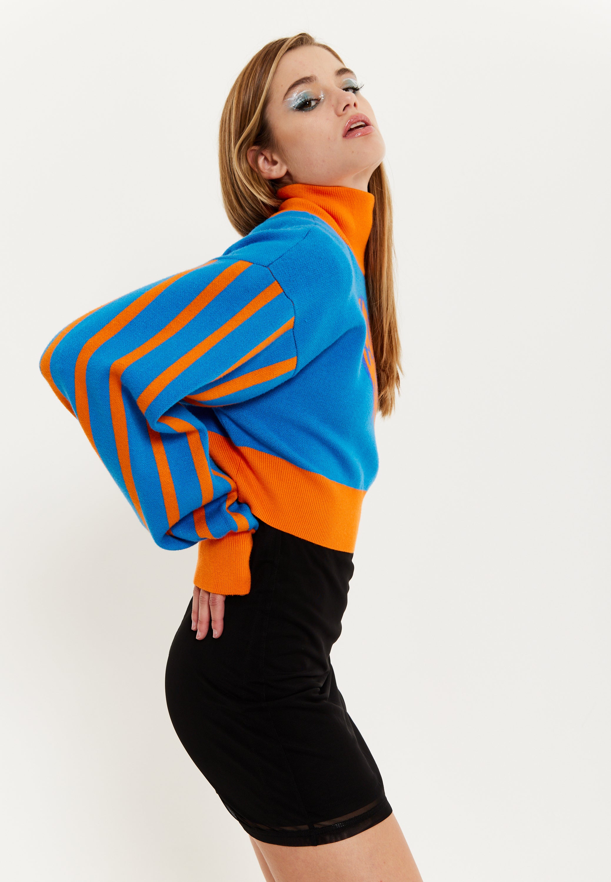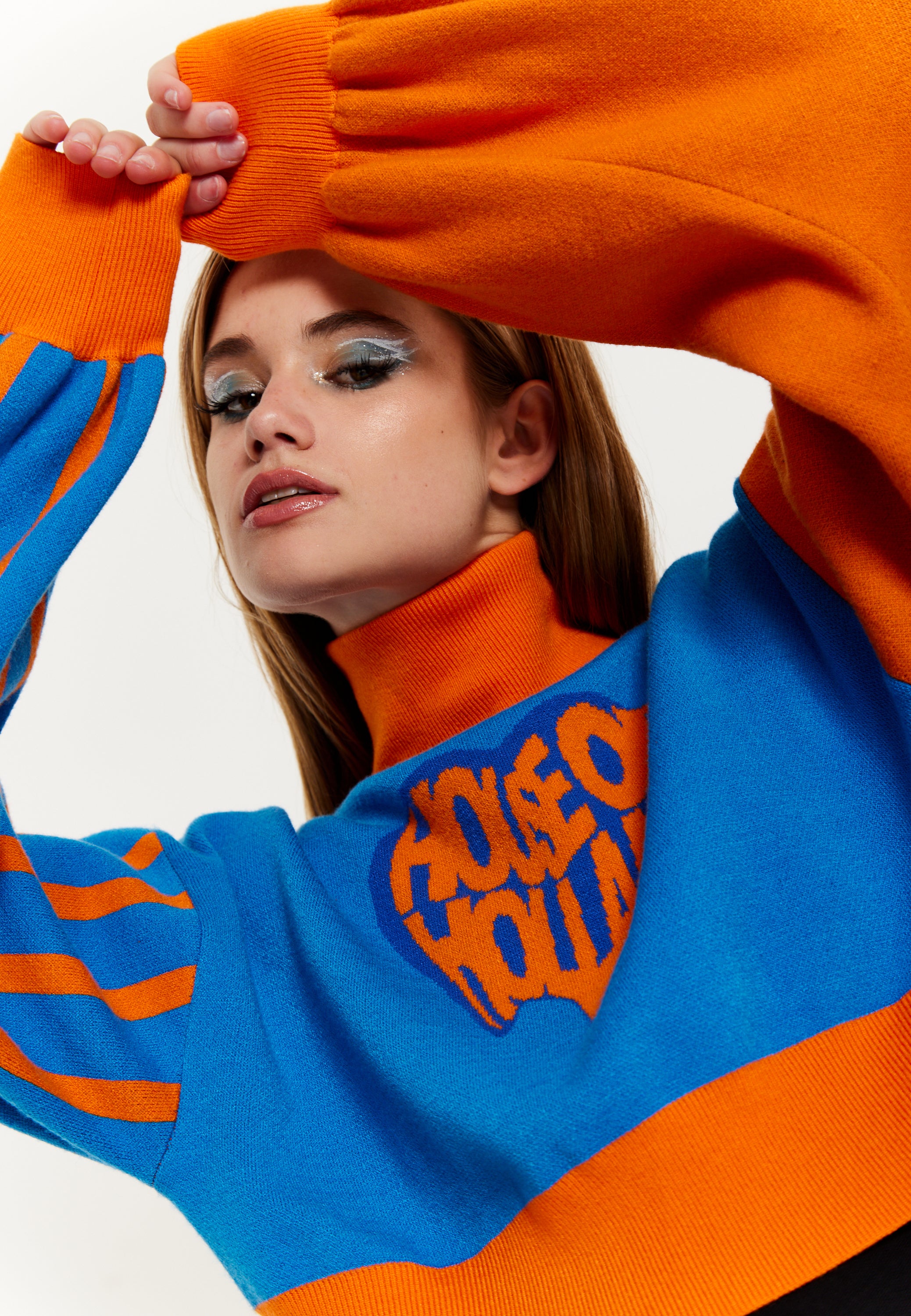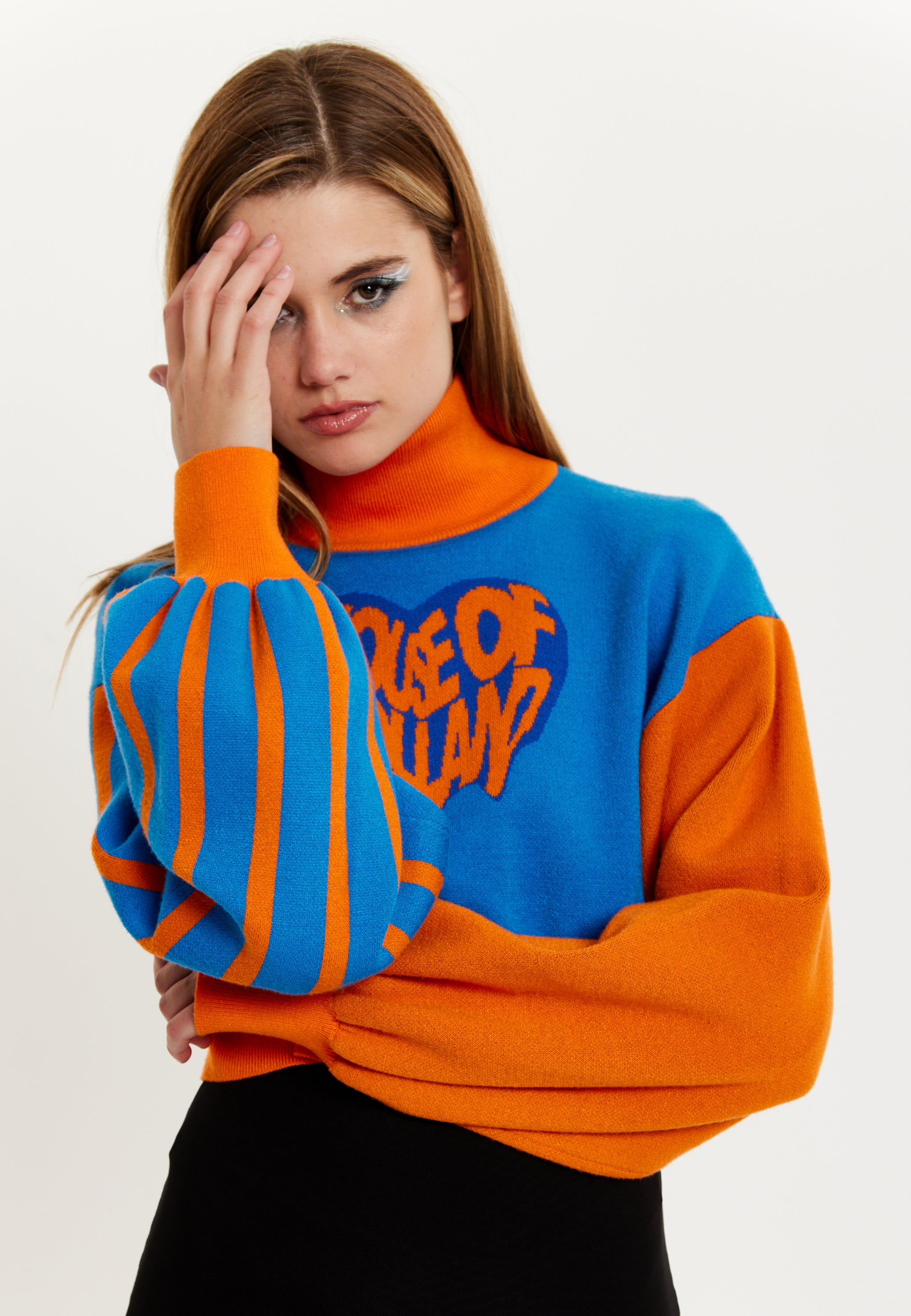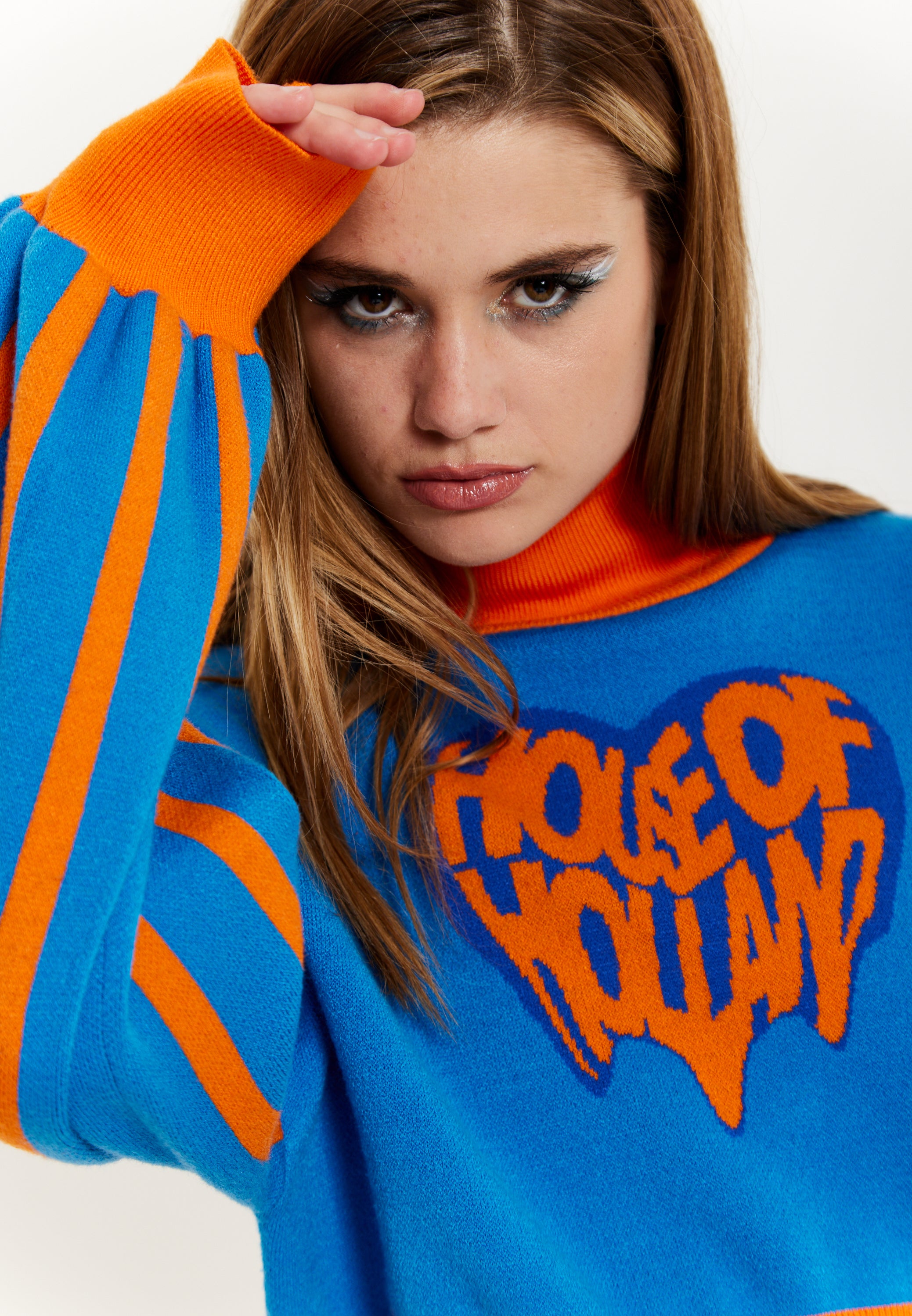 House Of Holland Melting Heart Logo Jumper in Blue And Orange