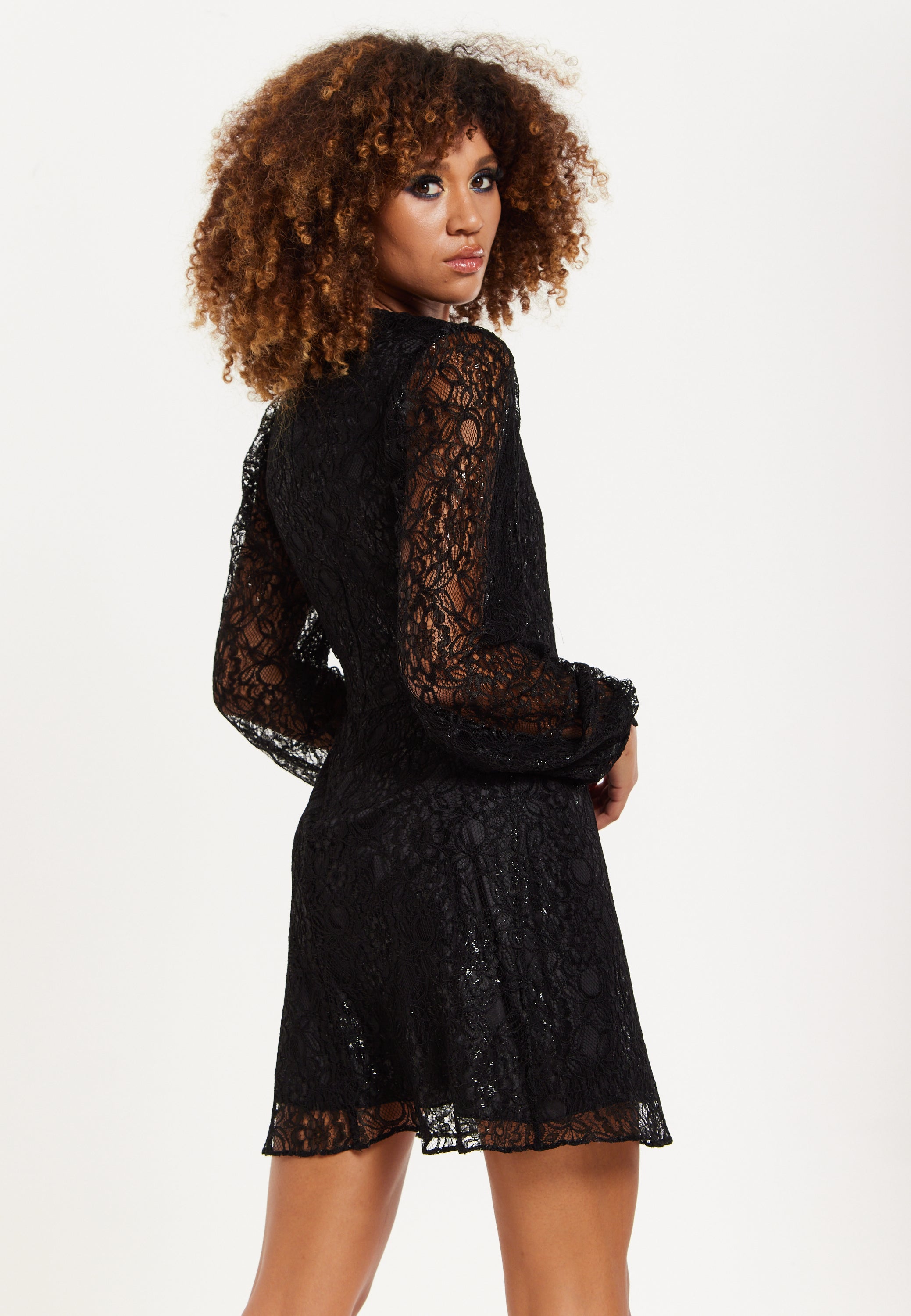 House of Holland Midnight Lace Long-Sleeve Mini Dress