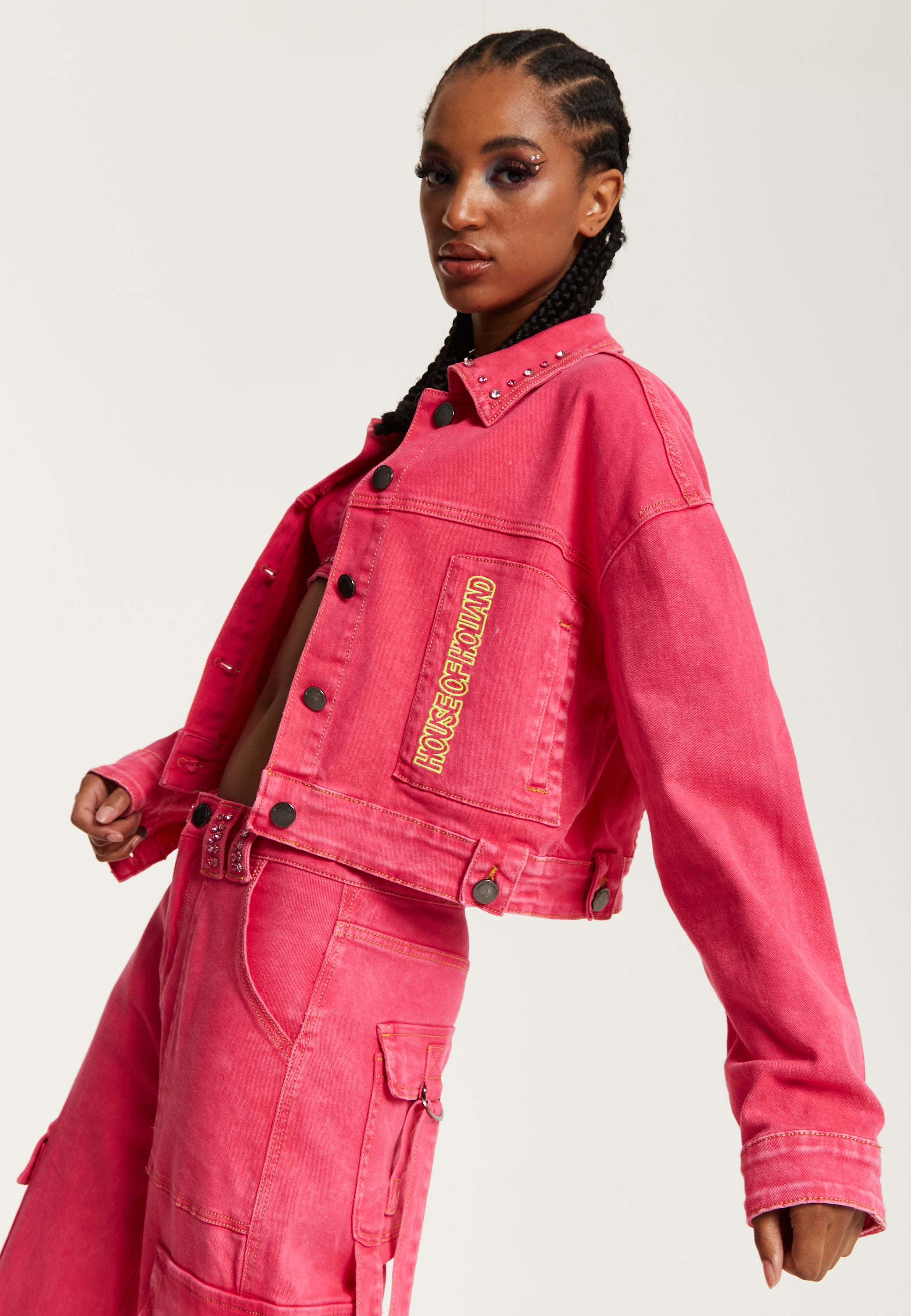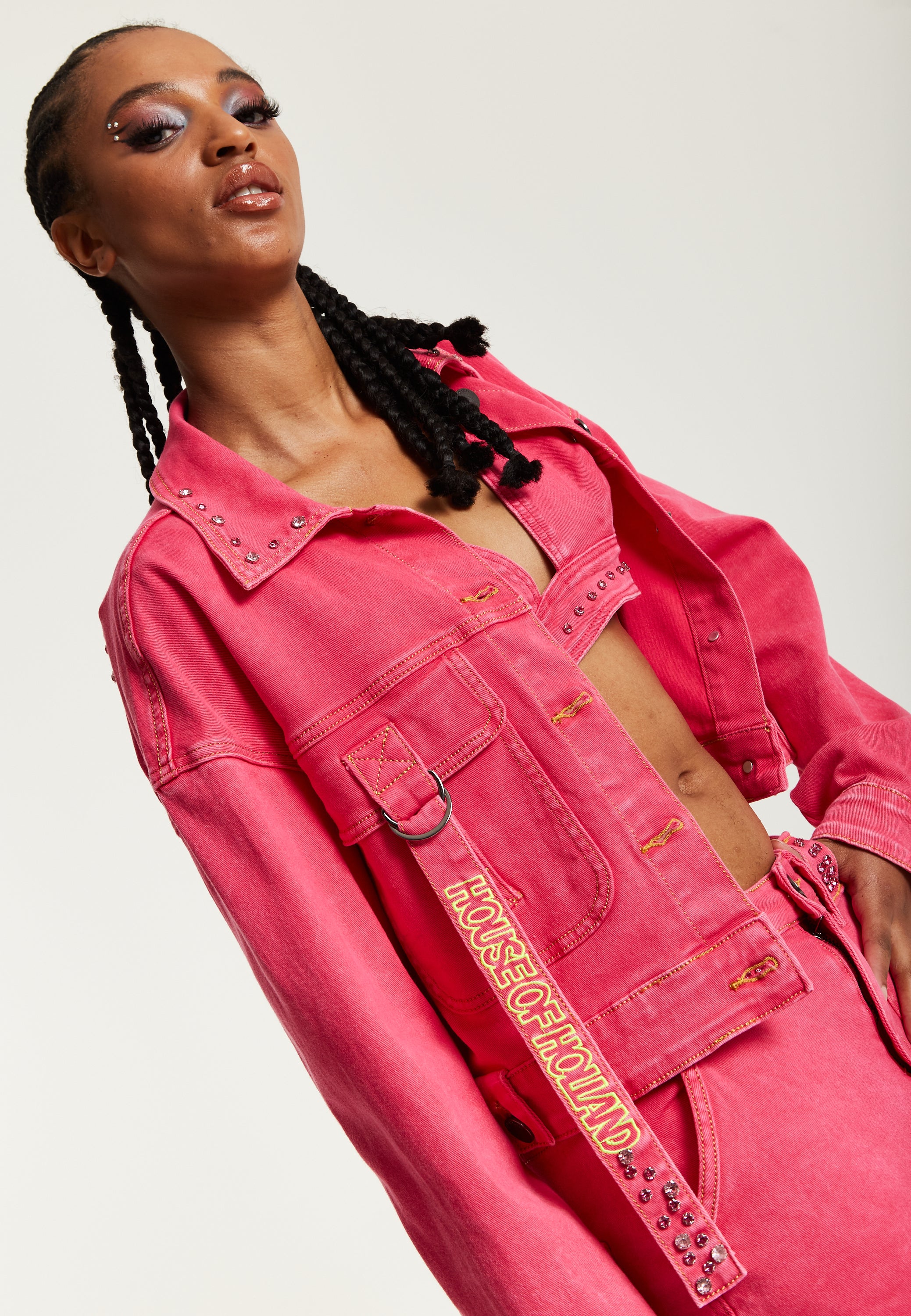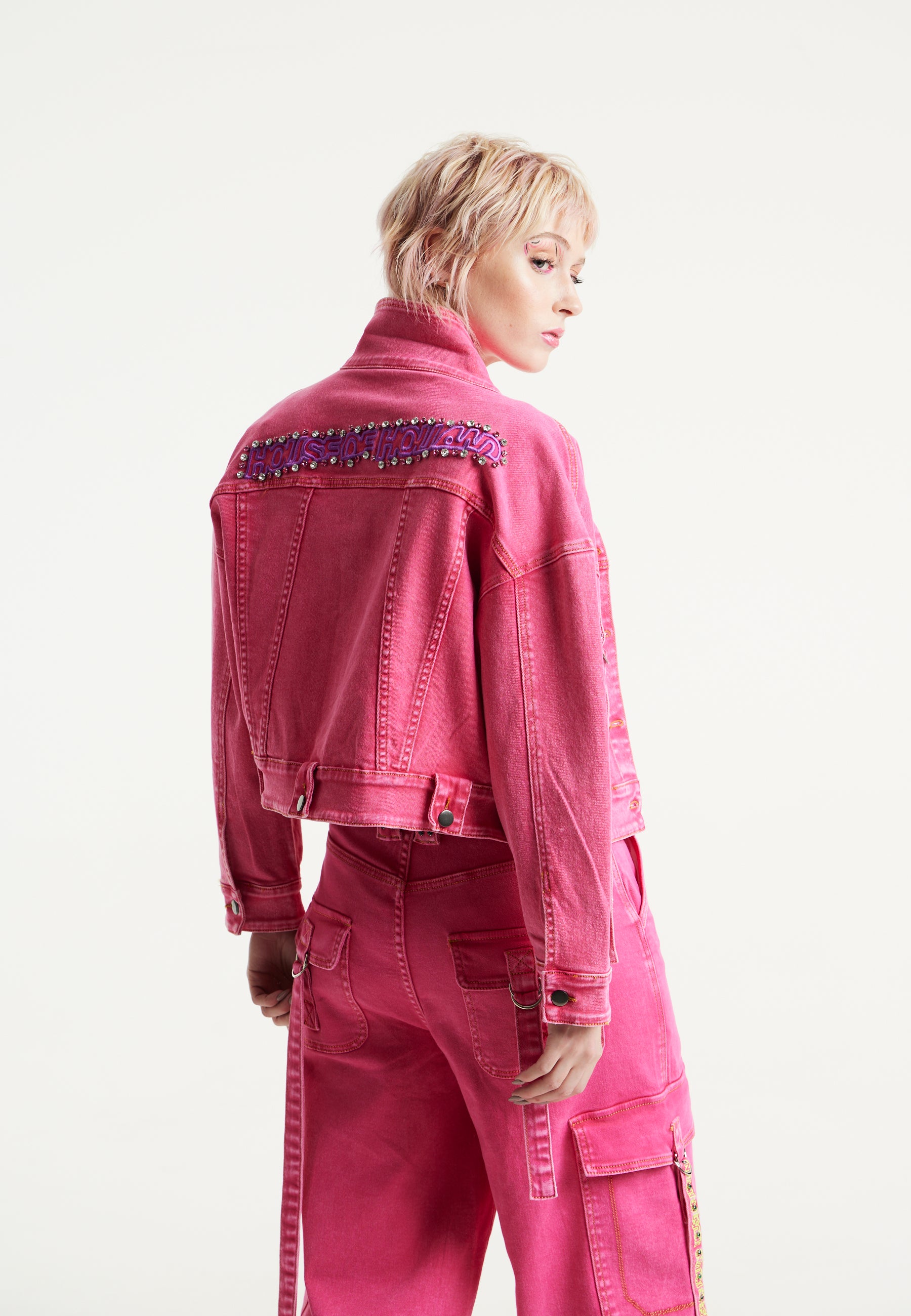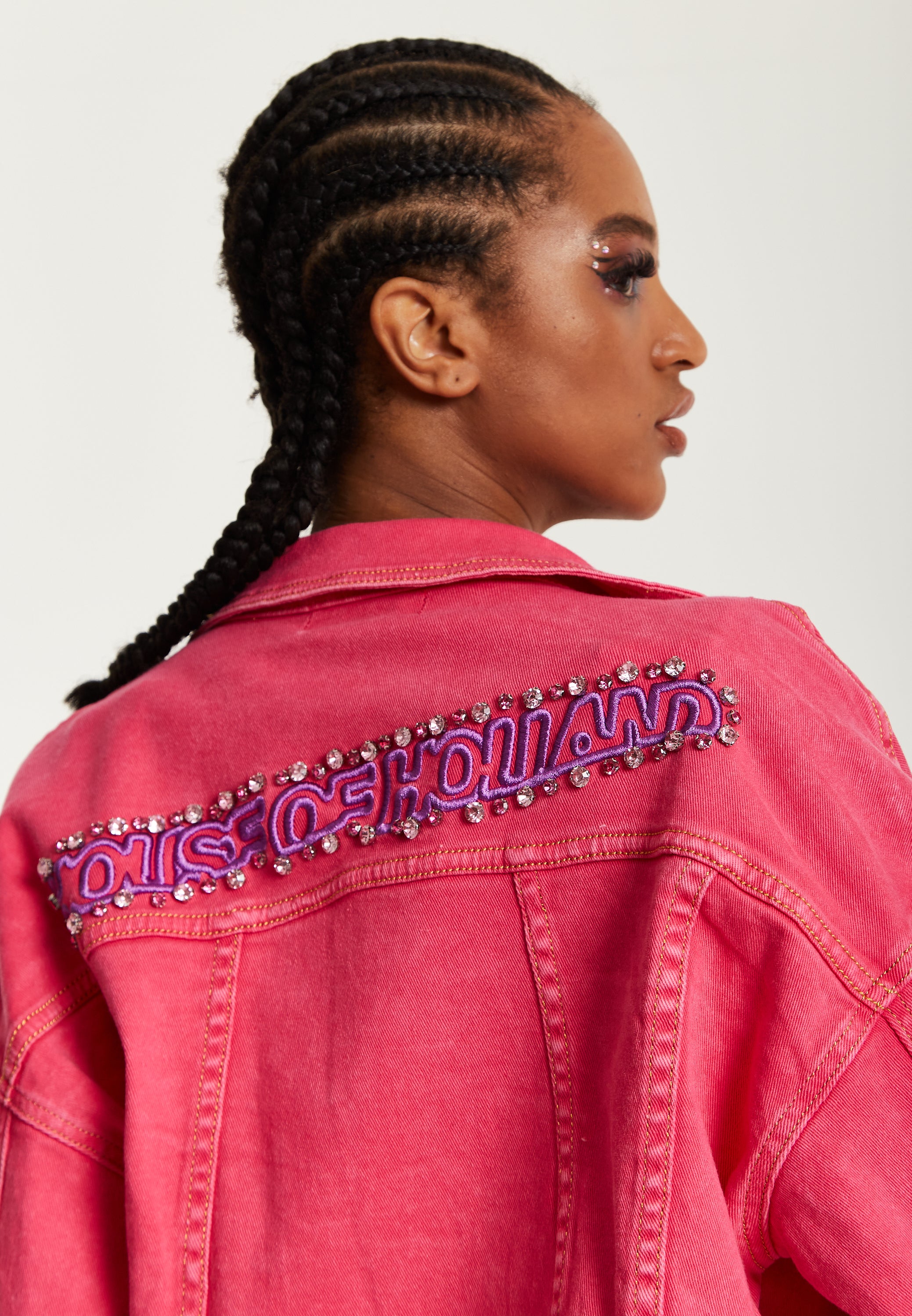 House of Holland Oversized Hot Pink Denim Jacket With Studs