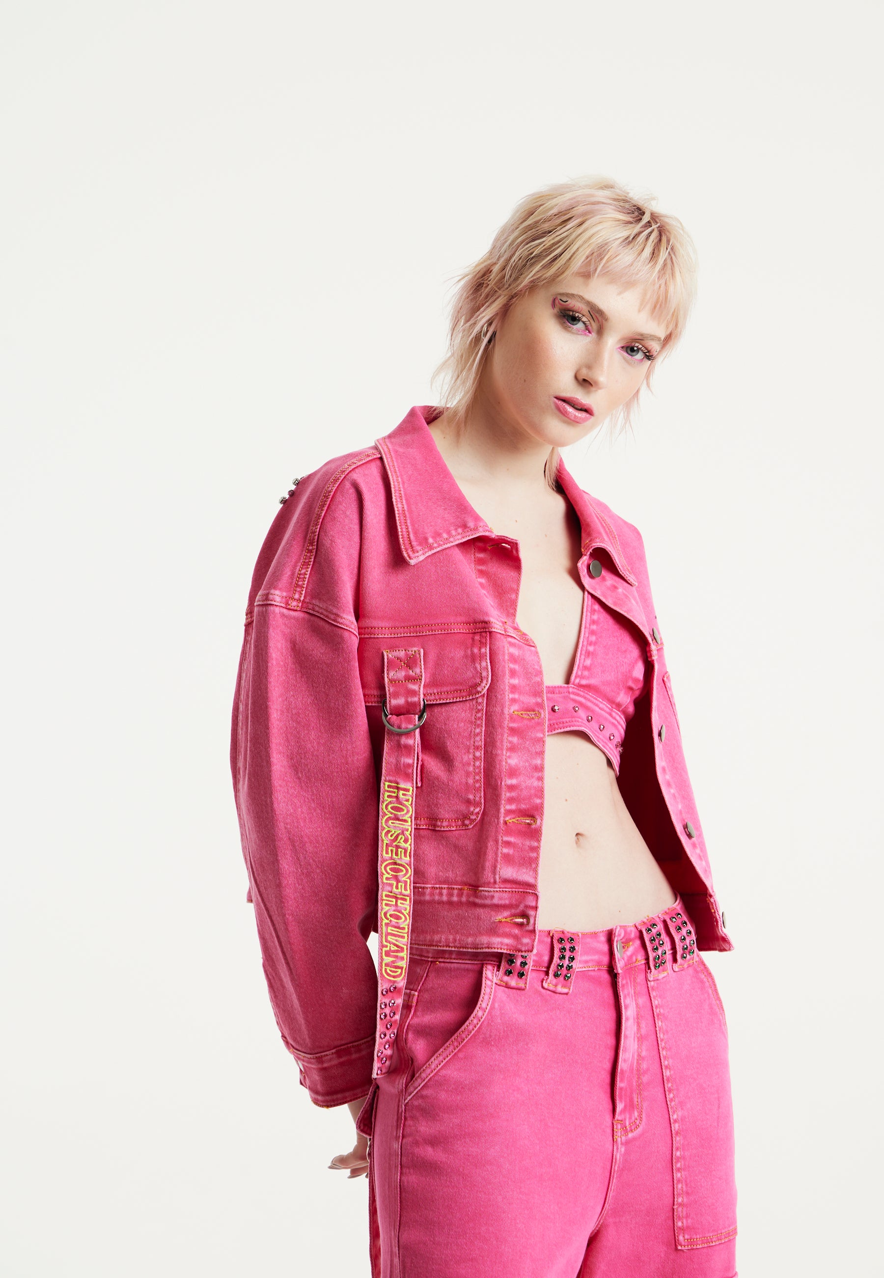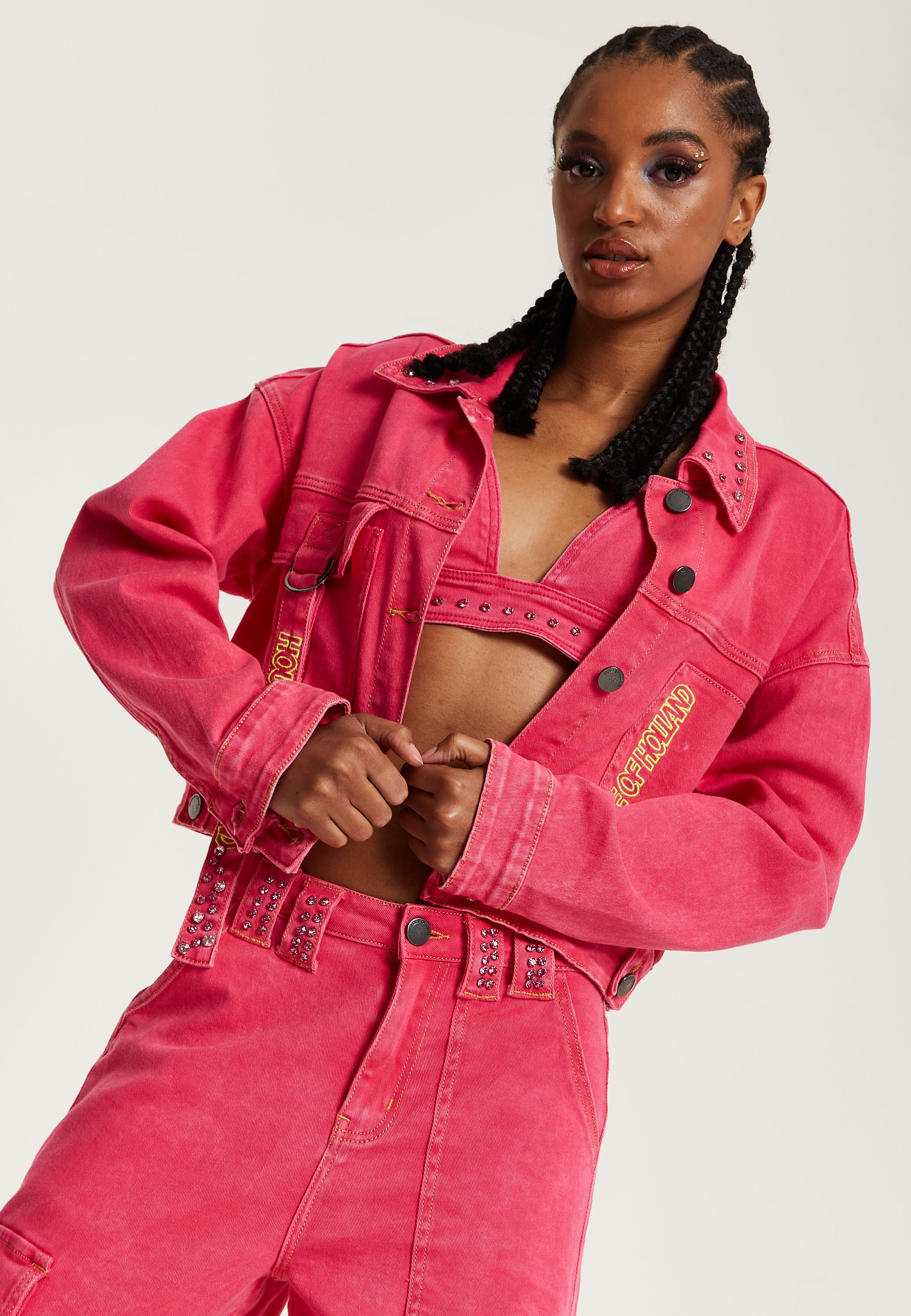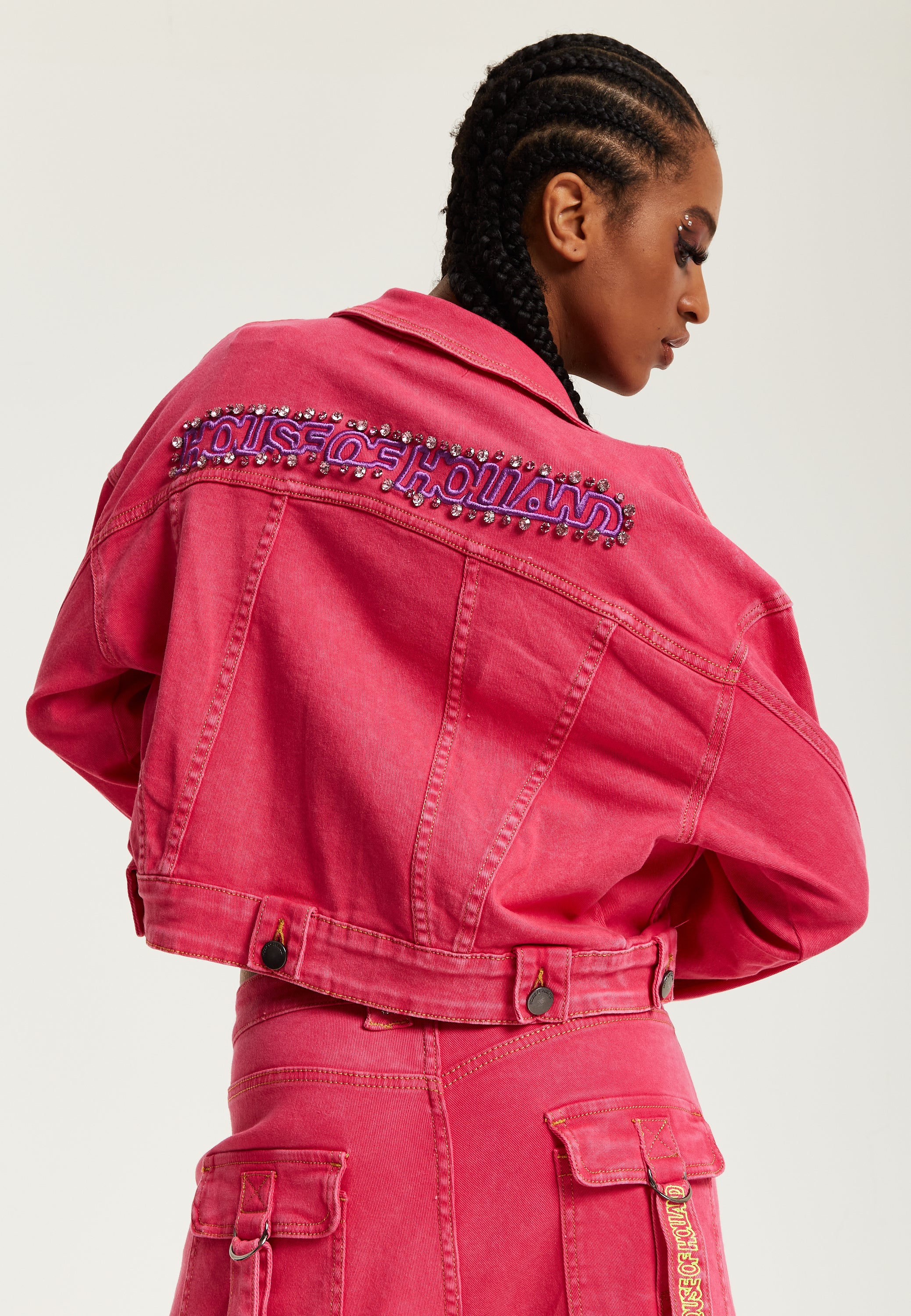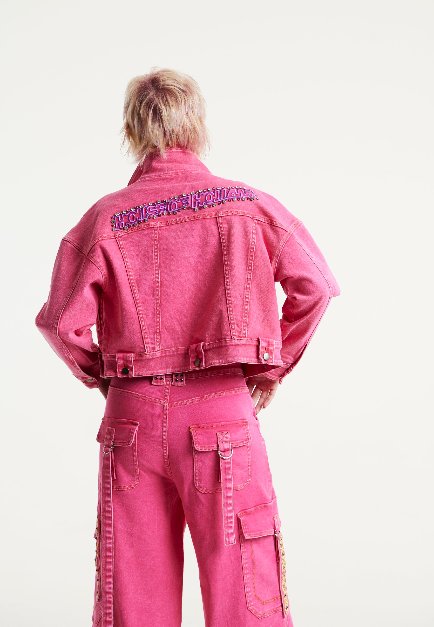 House of Holland Oversized Hot Pink Denim Jacket With Studs