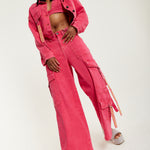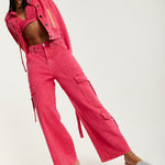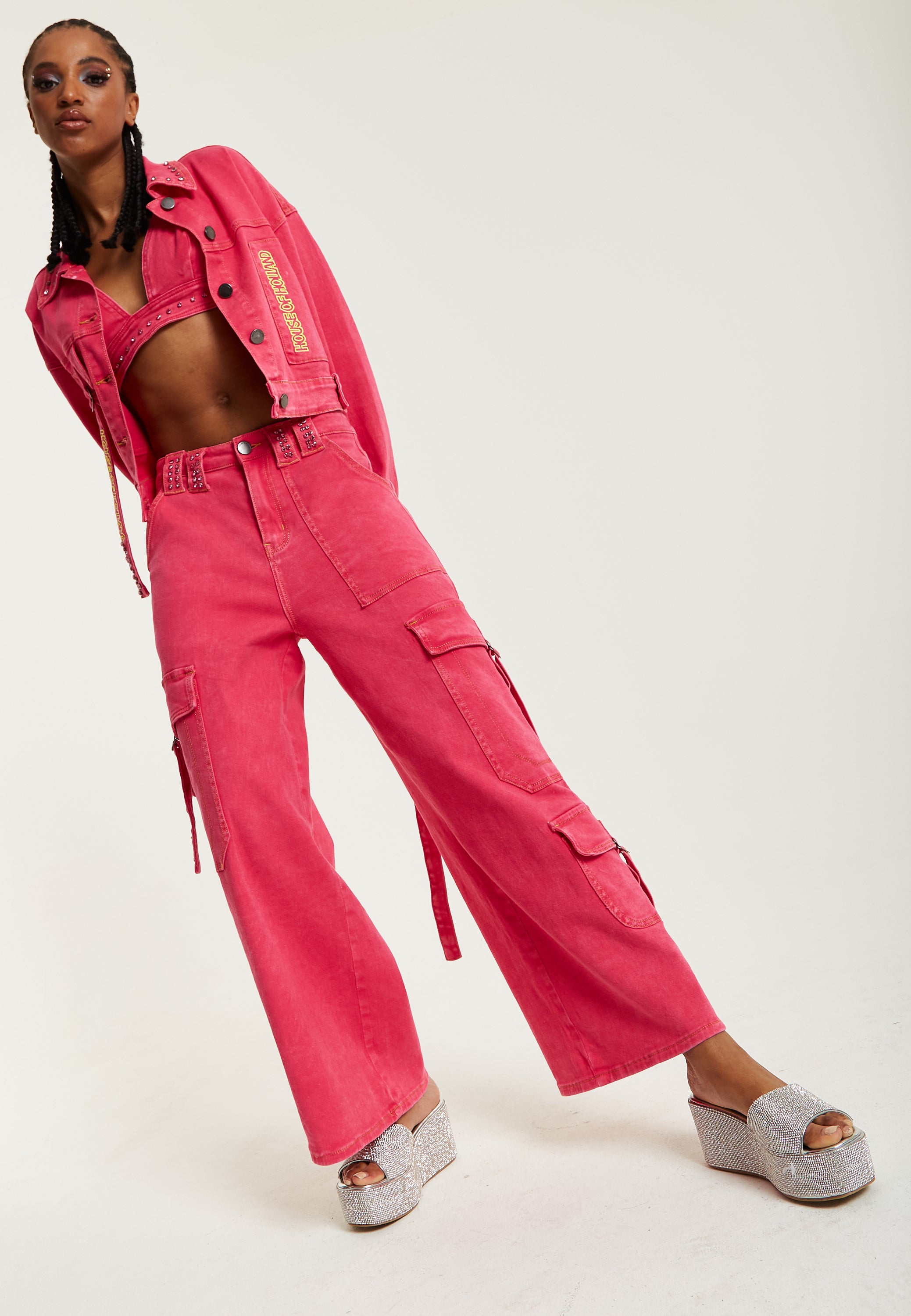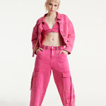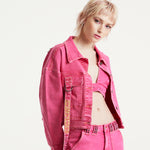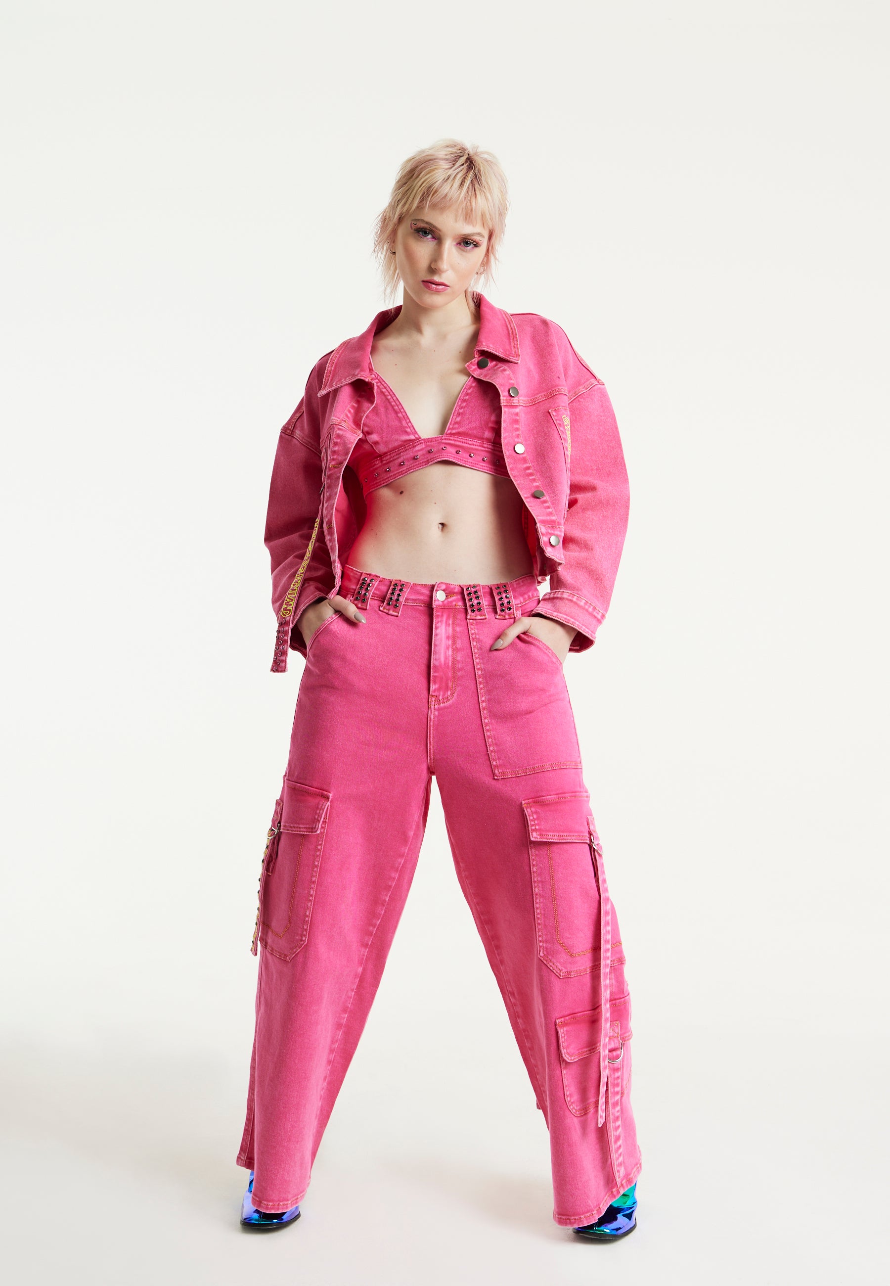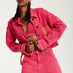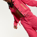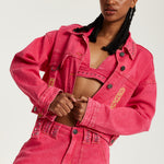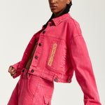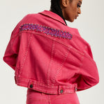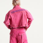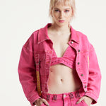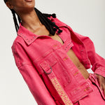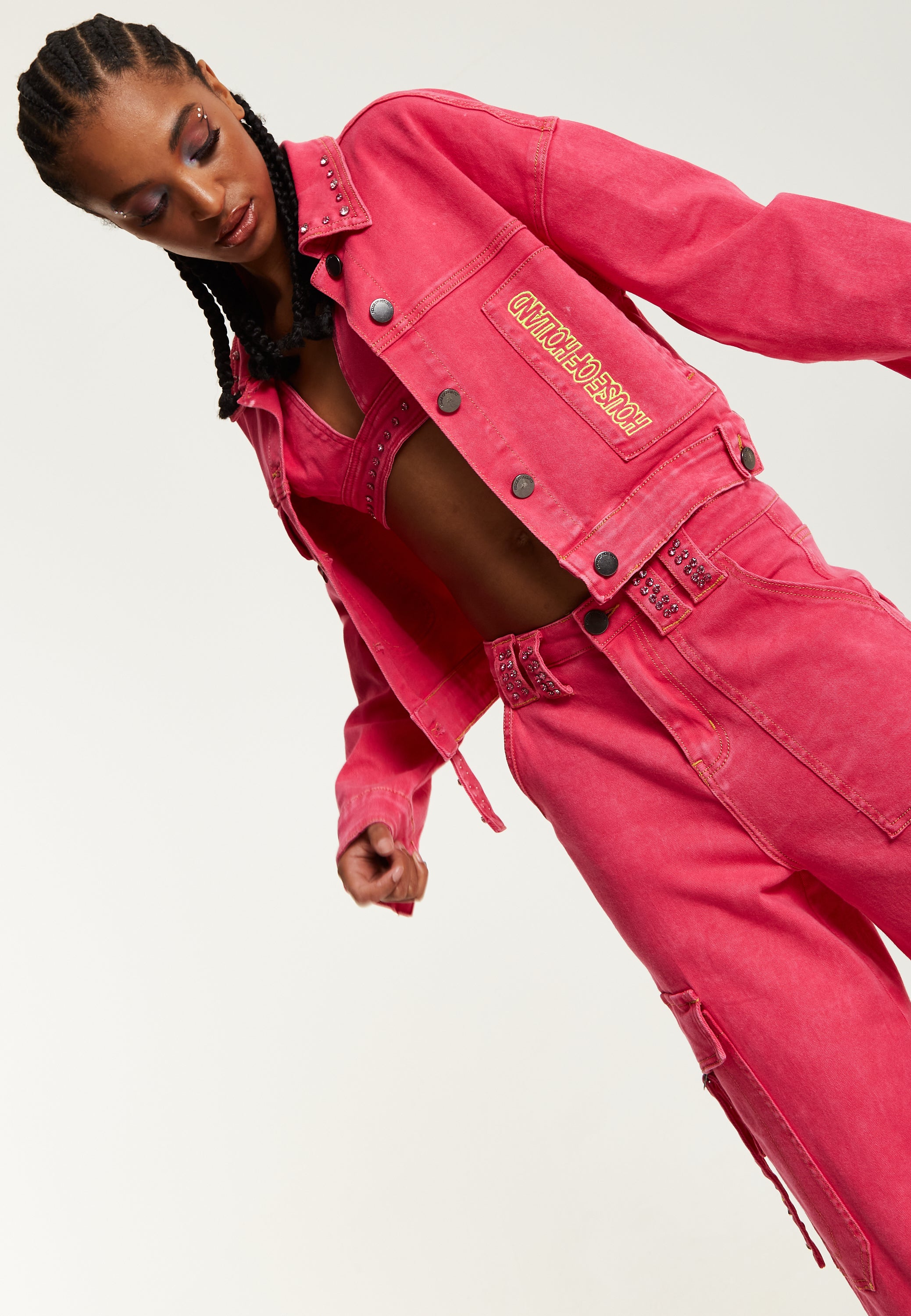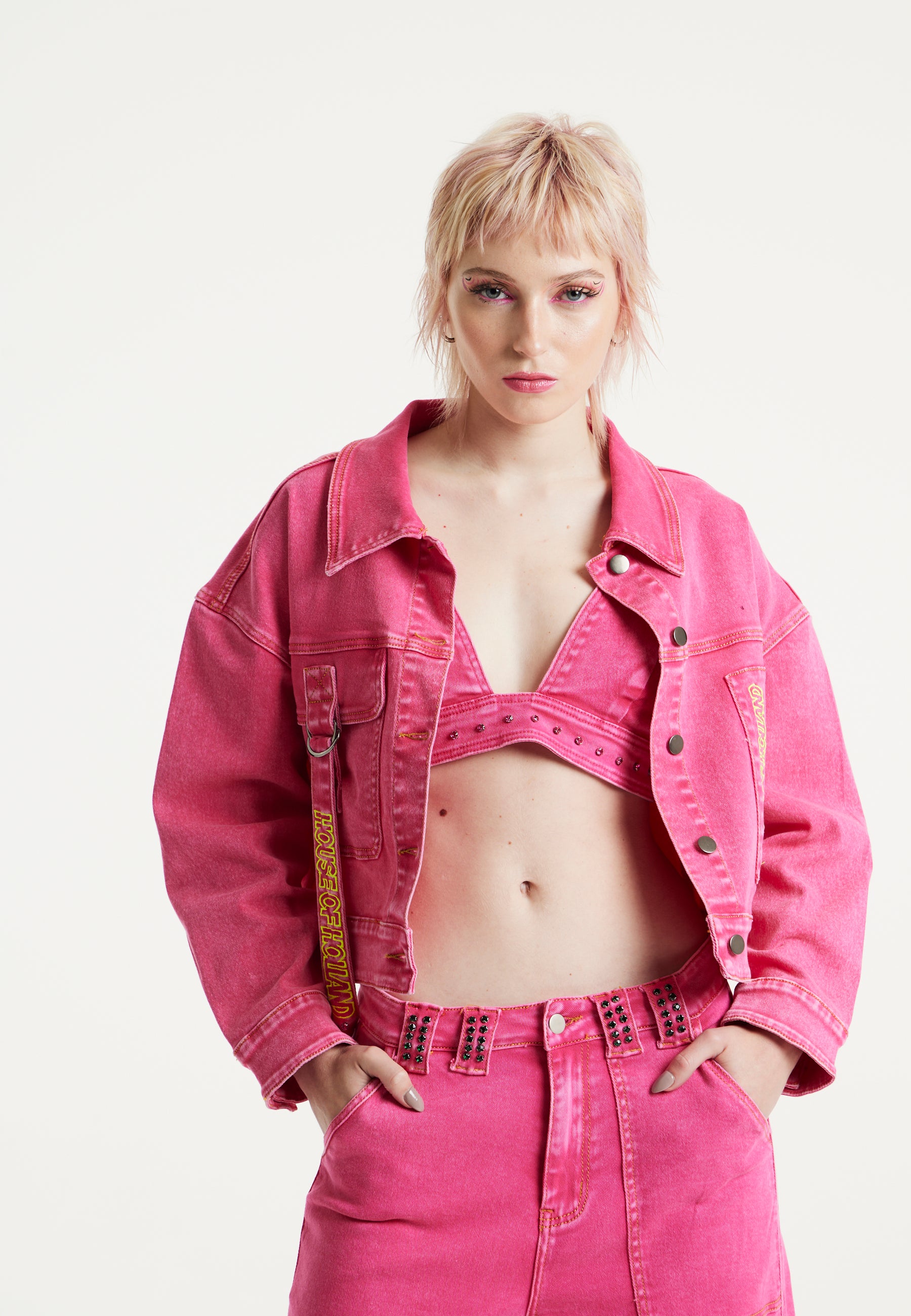House of Holland Oversized Hot Pink Denim Jacket With Studs