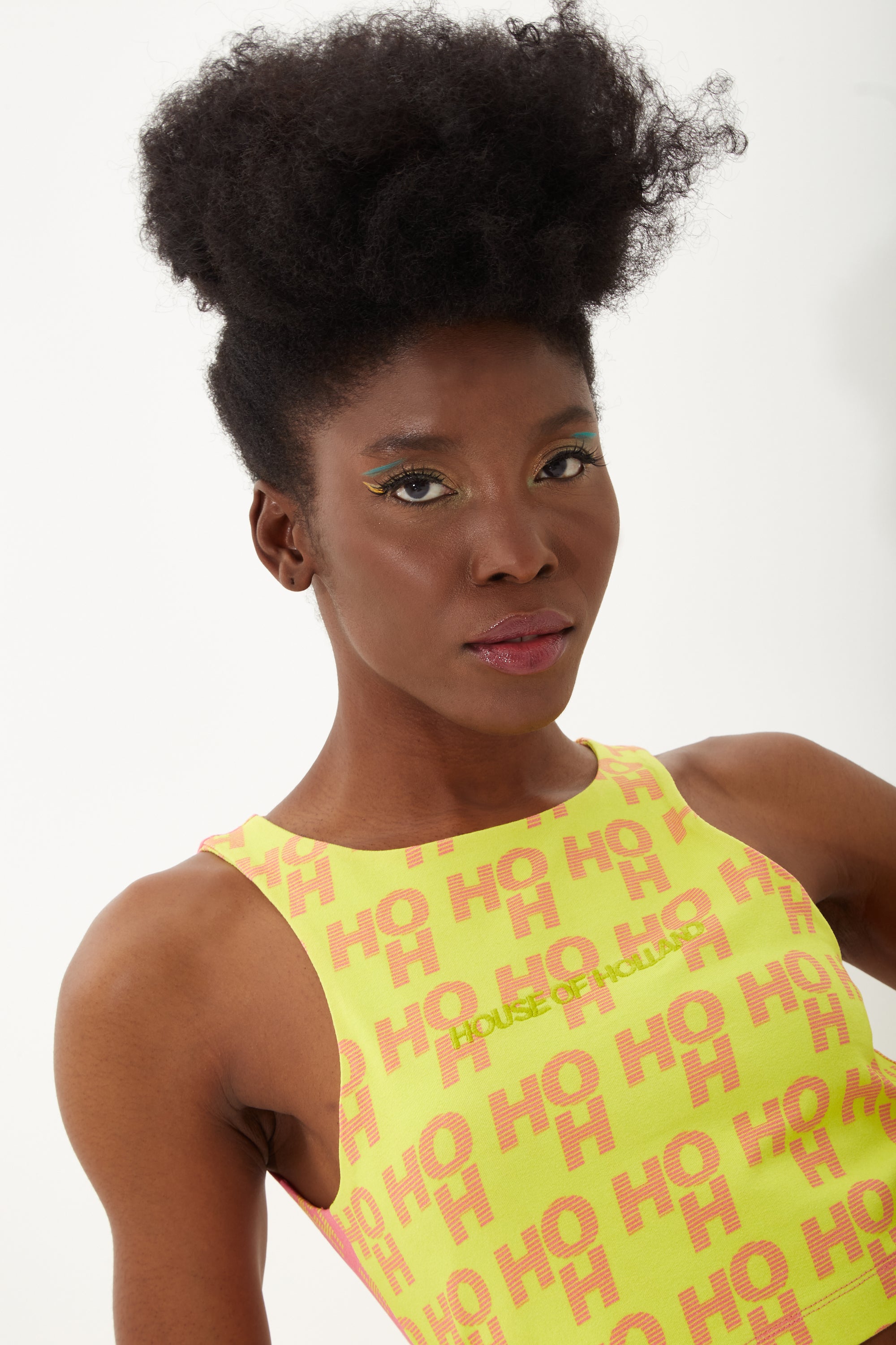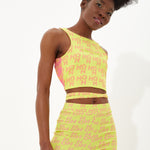 House Of Holland Printed Jersey Crop Top With Open Back In Contrast Colours