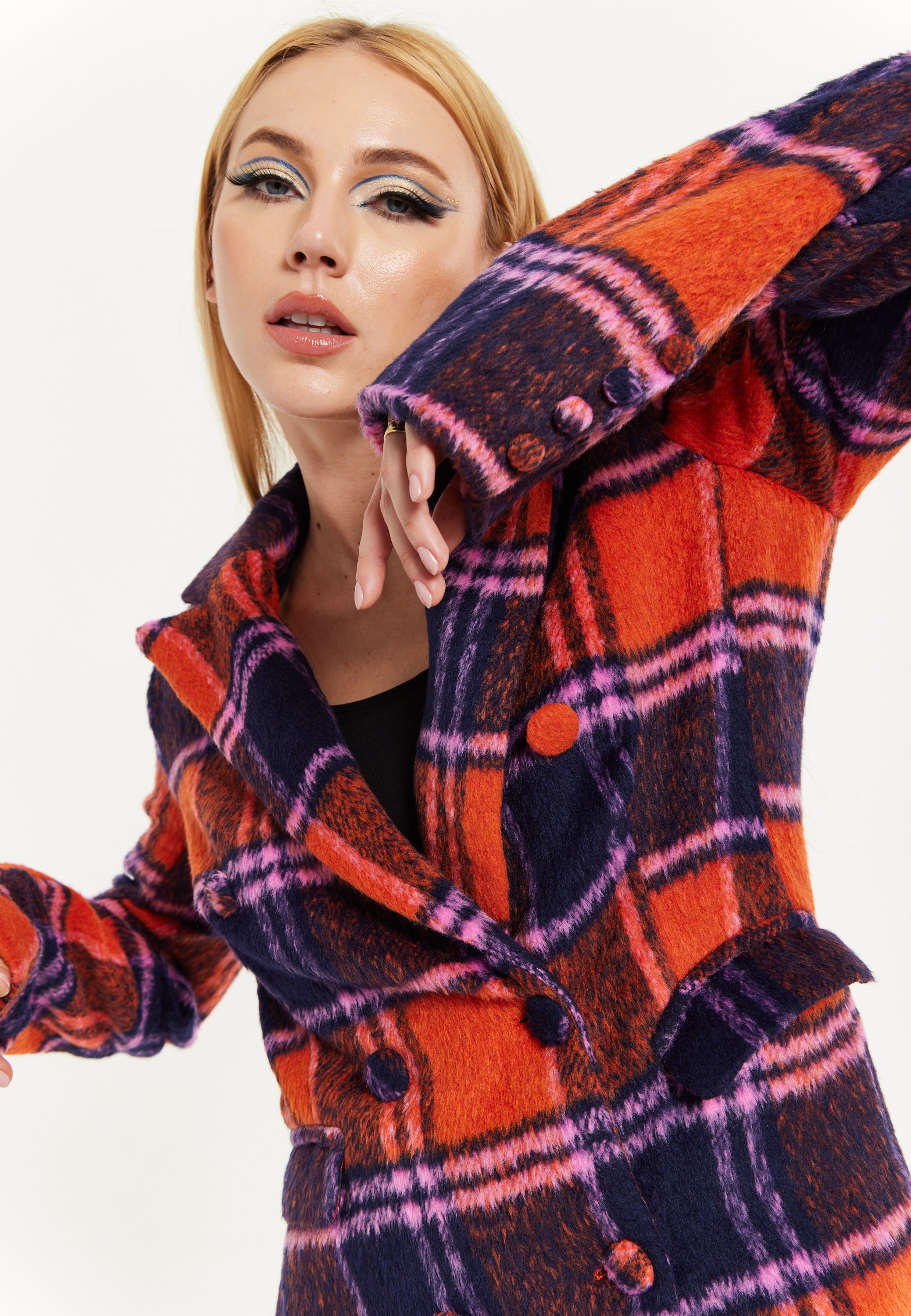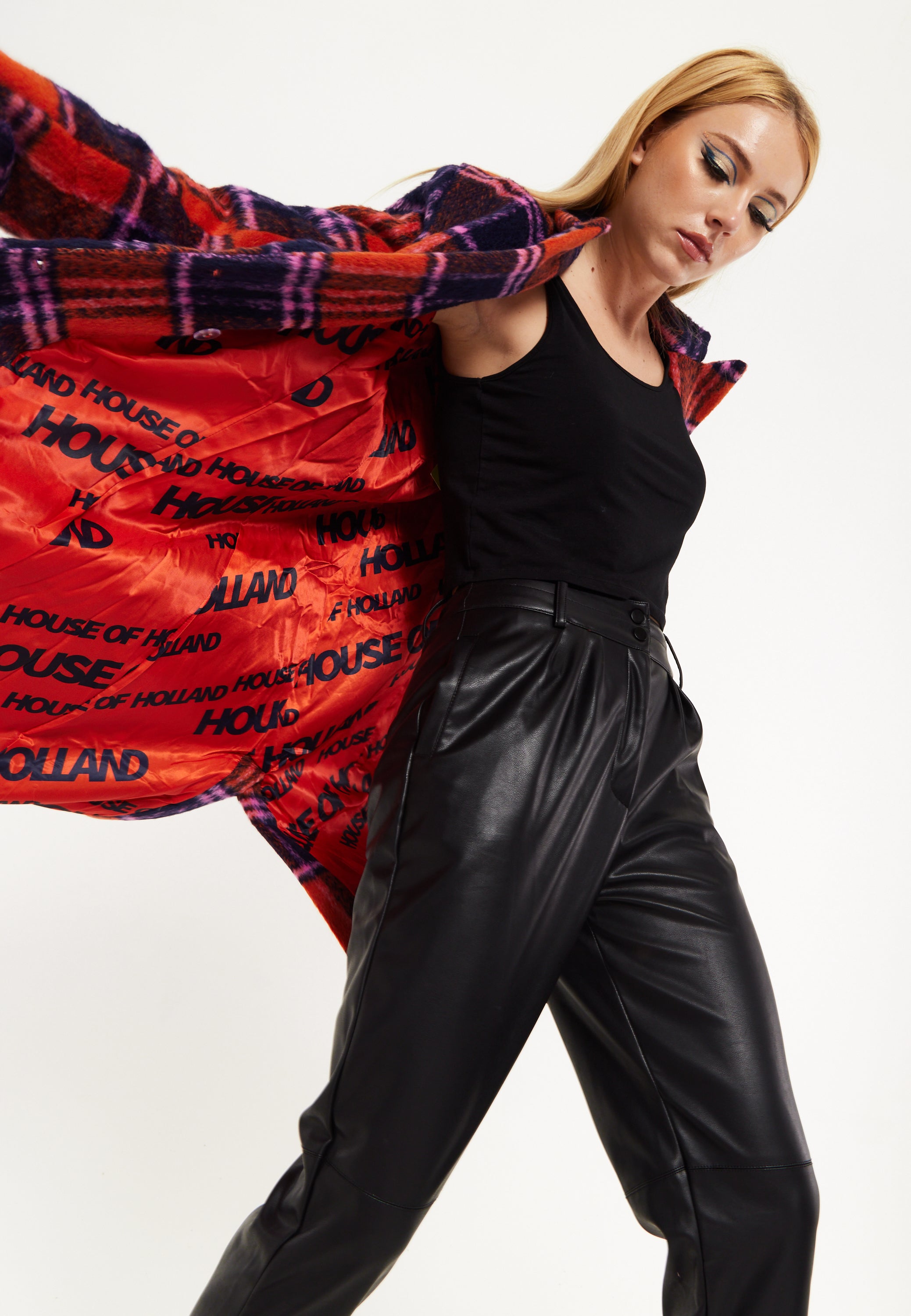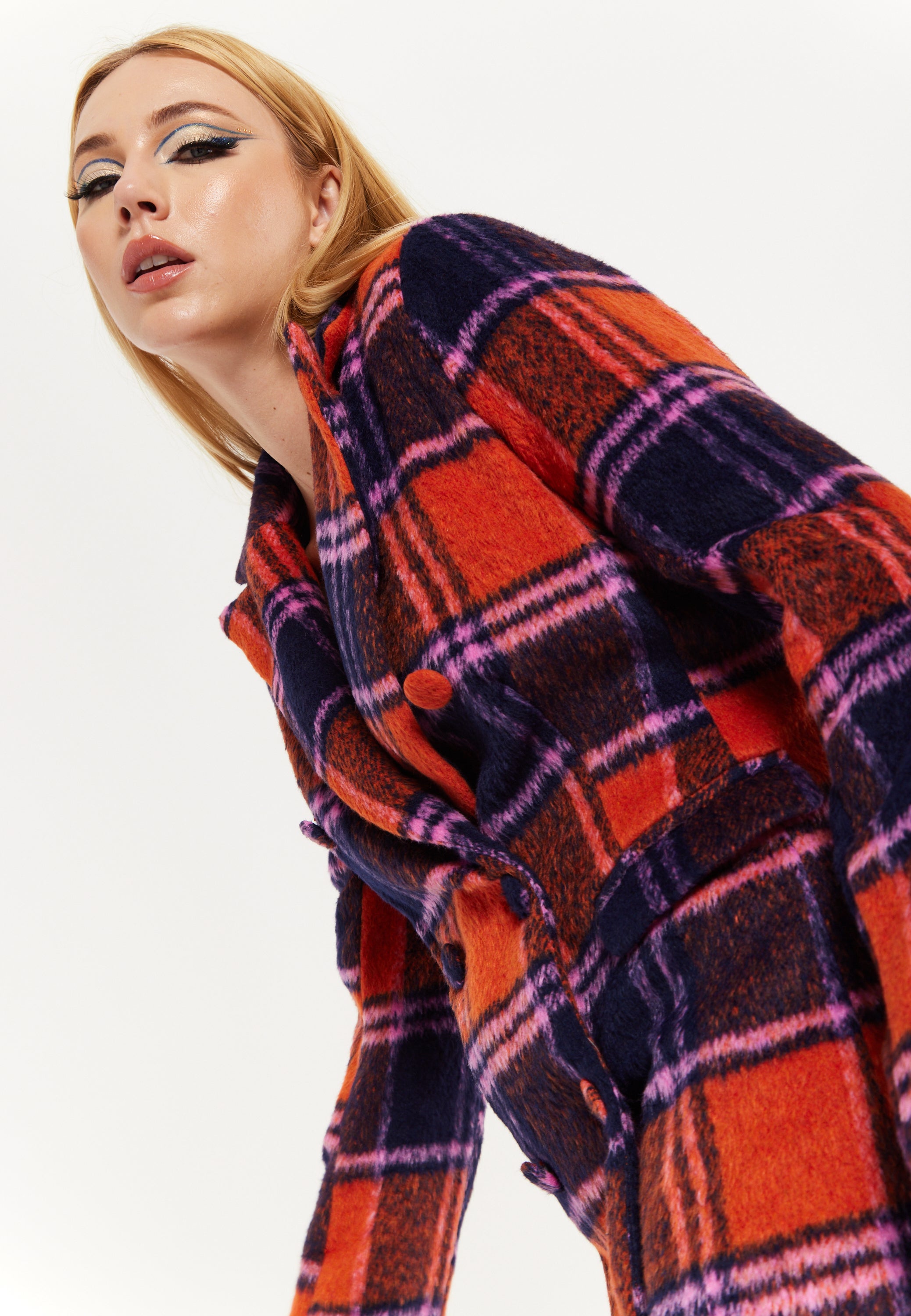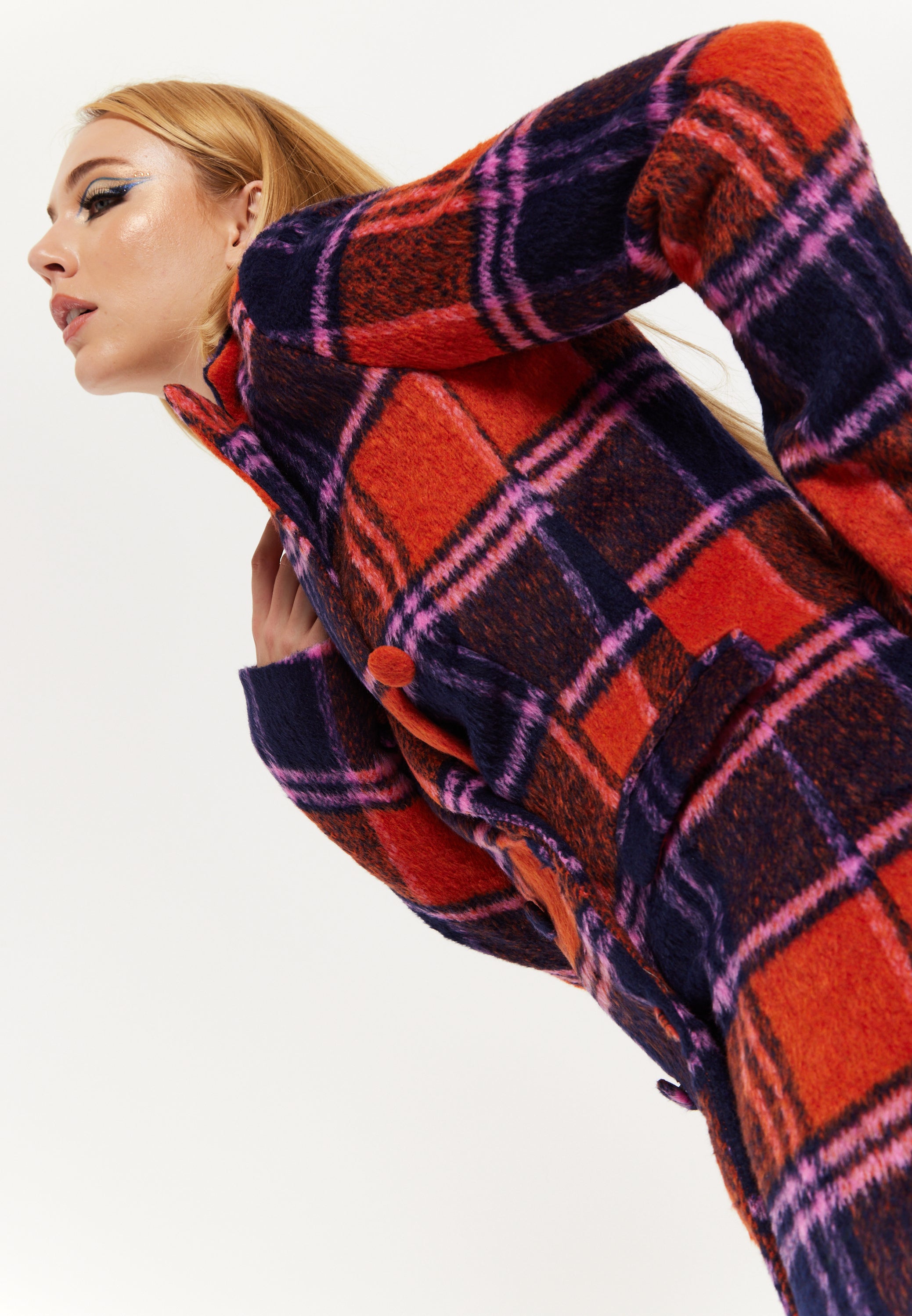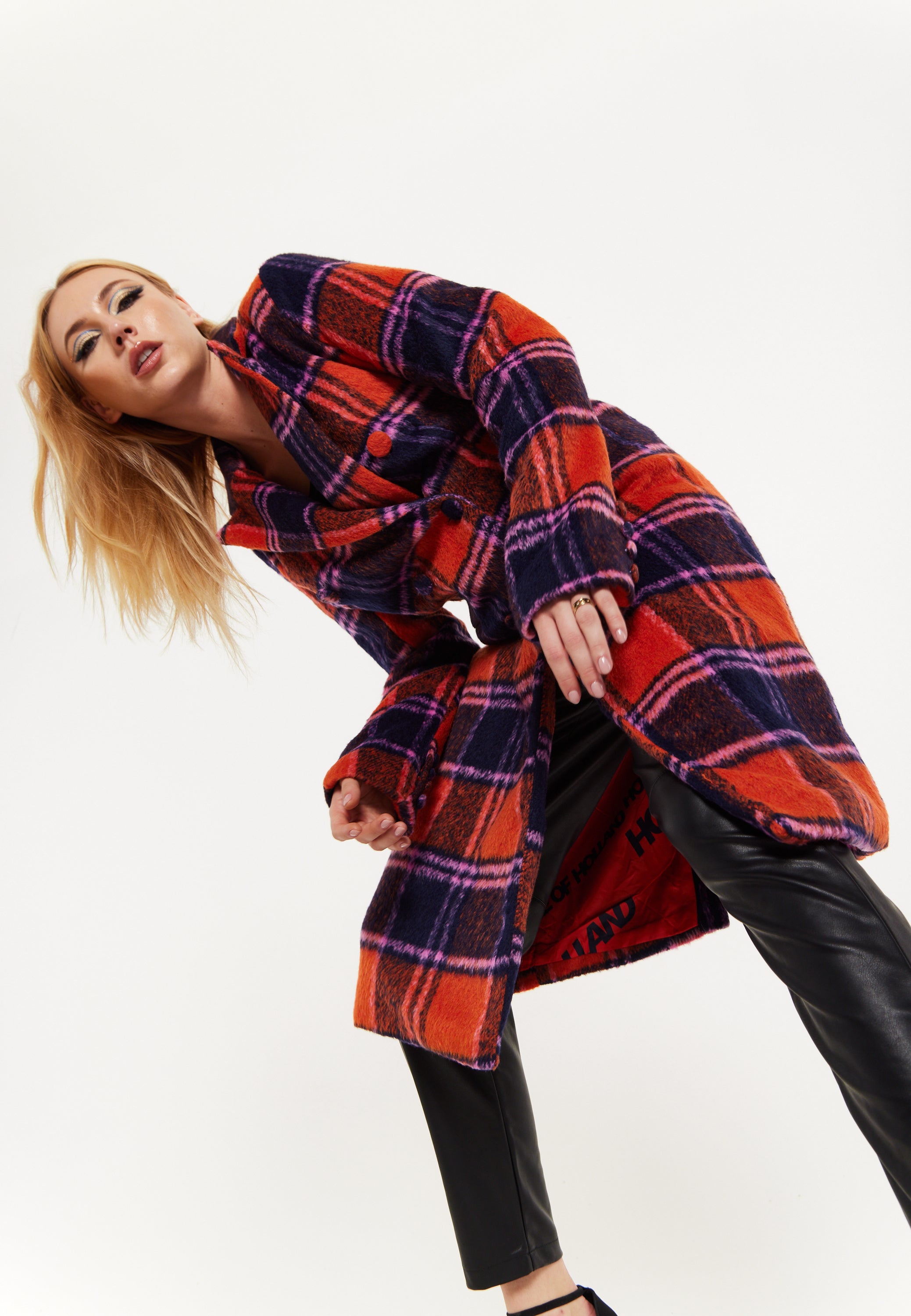 Inject some colour into your winter wardrobe with the House of Holland red check coat.