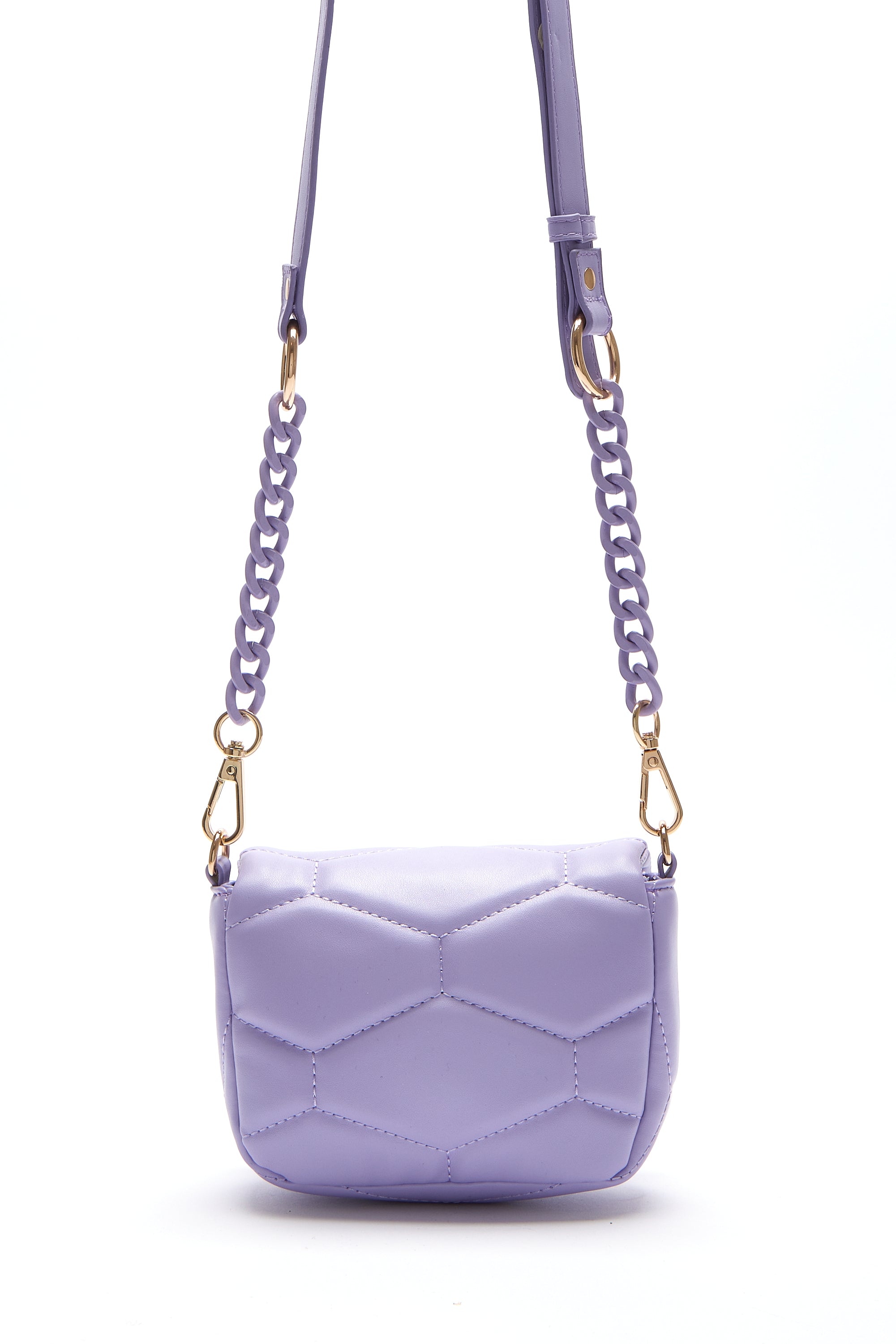 House Of Holland Small Cross Body Bag In Purple With A Chain Detail Strap And Printed Logo