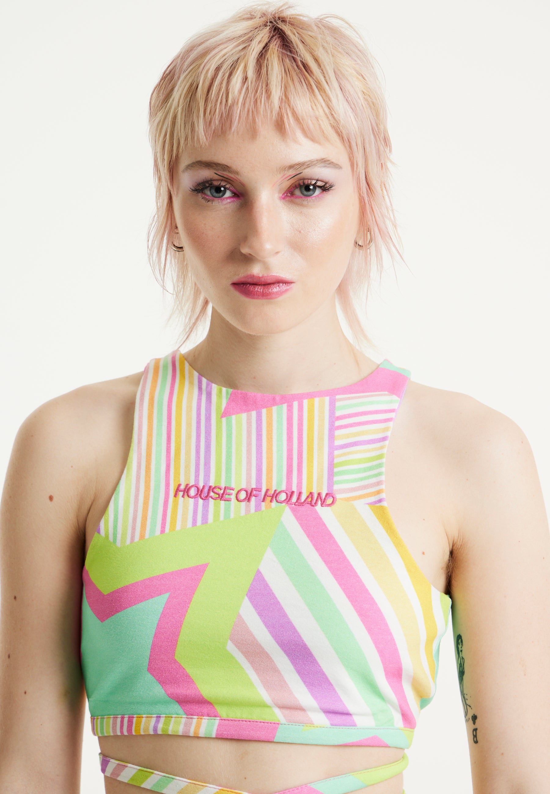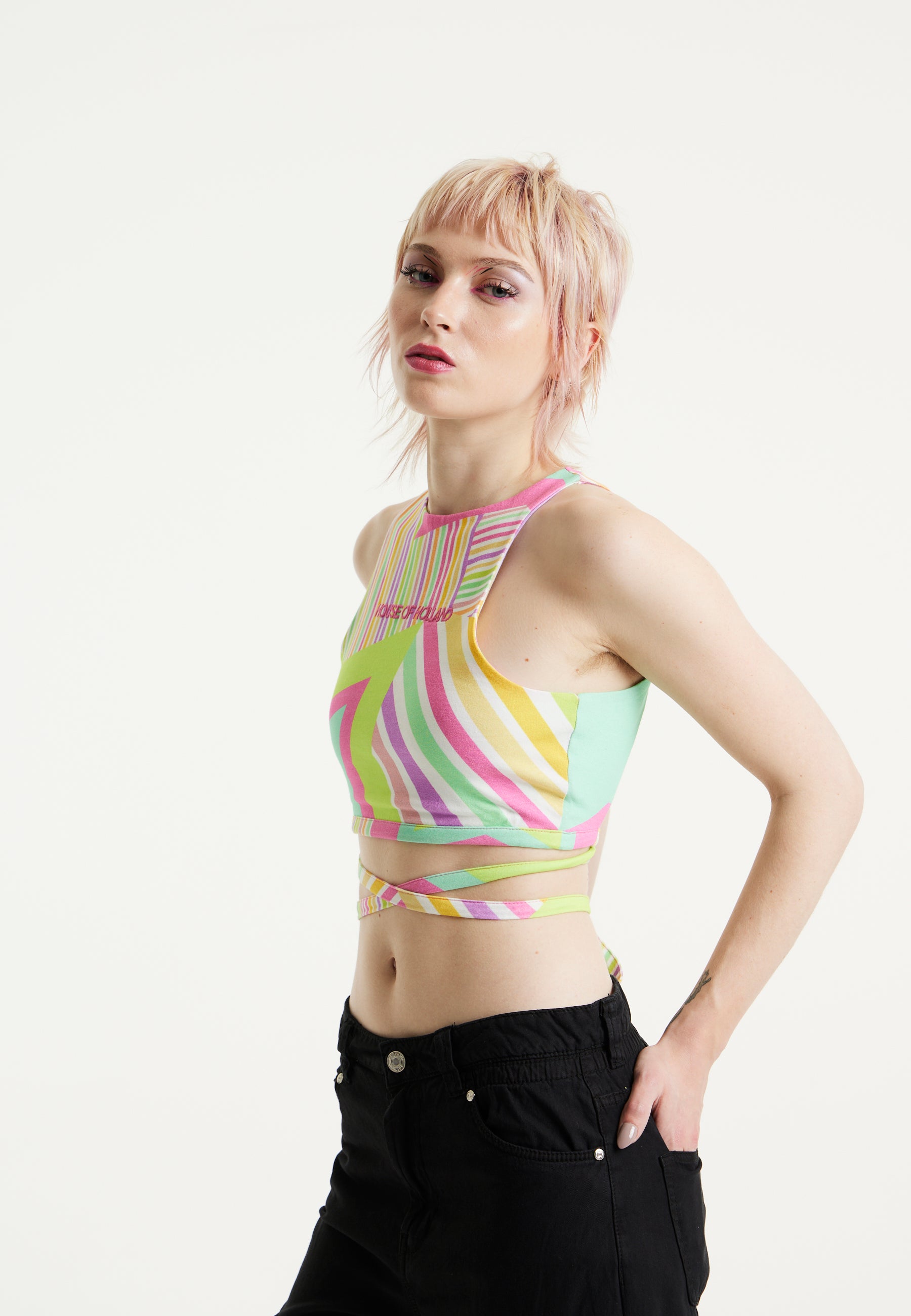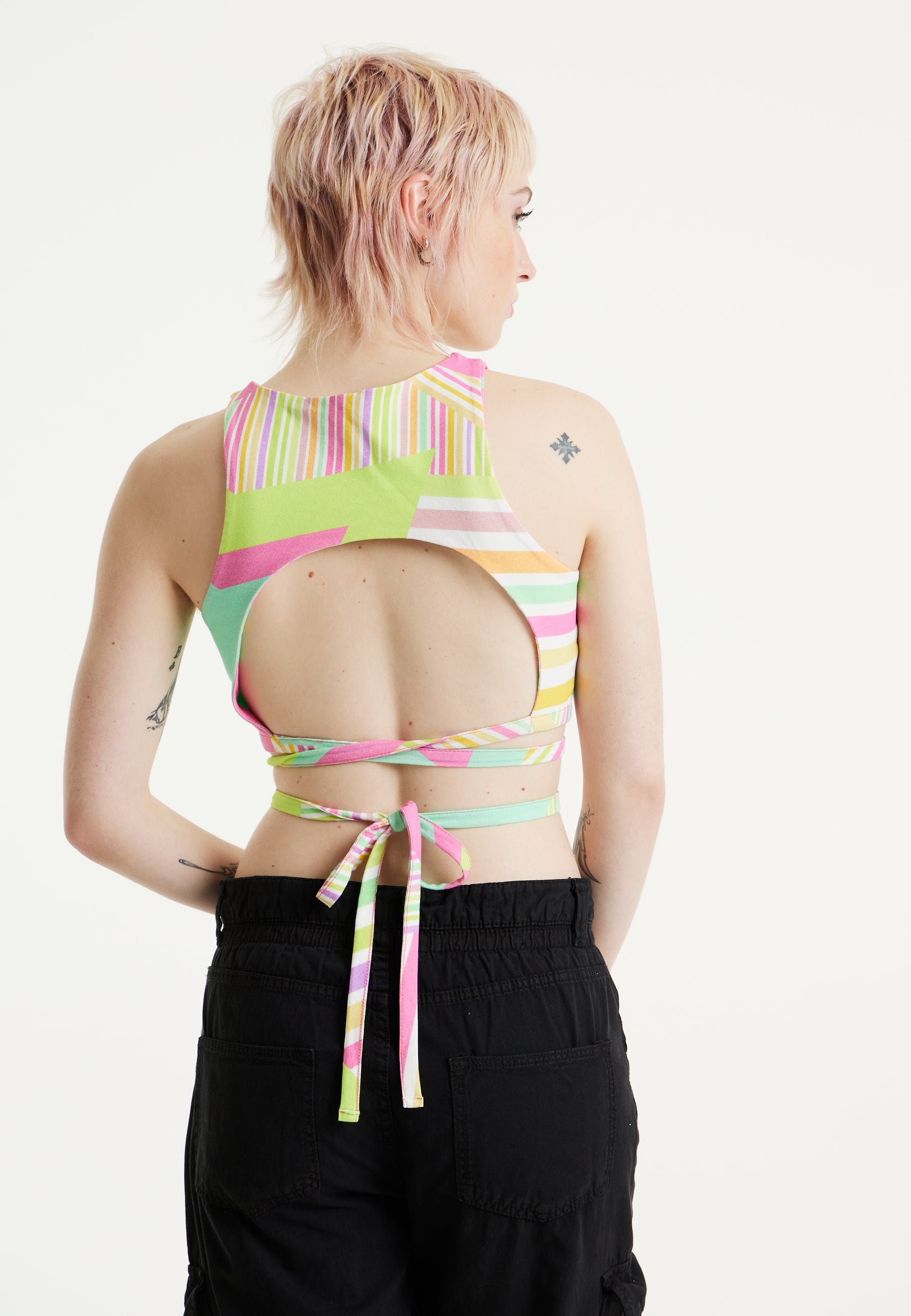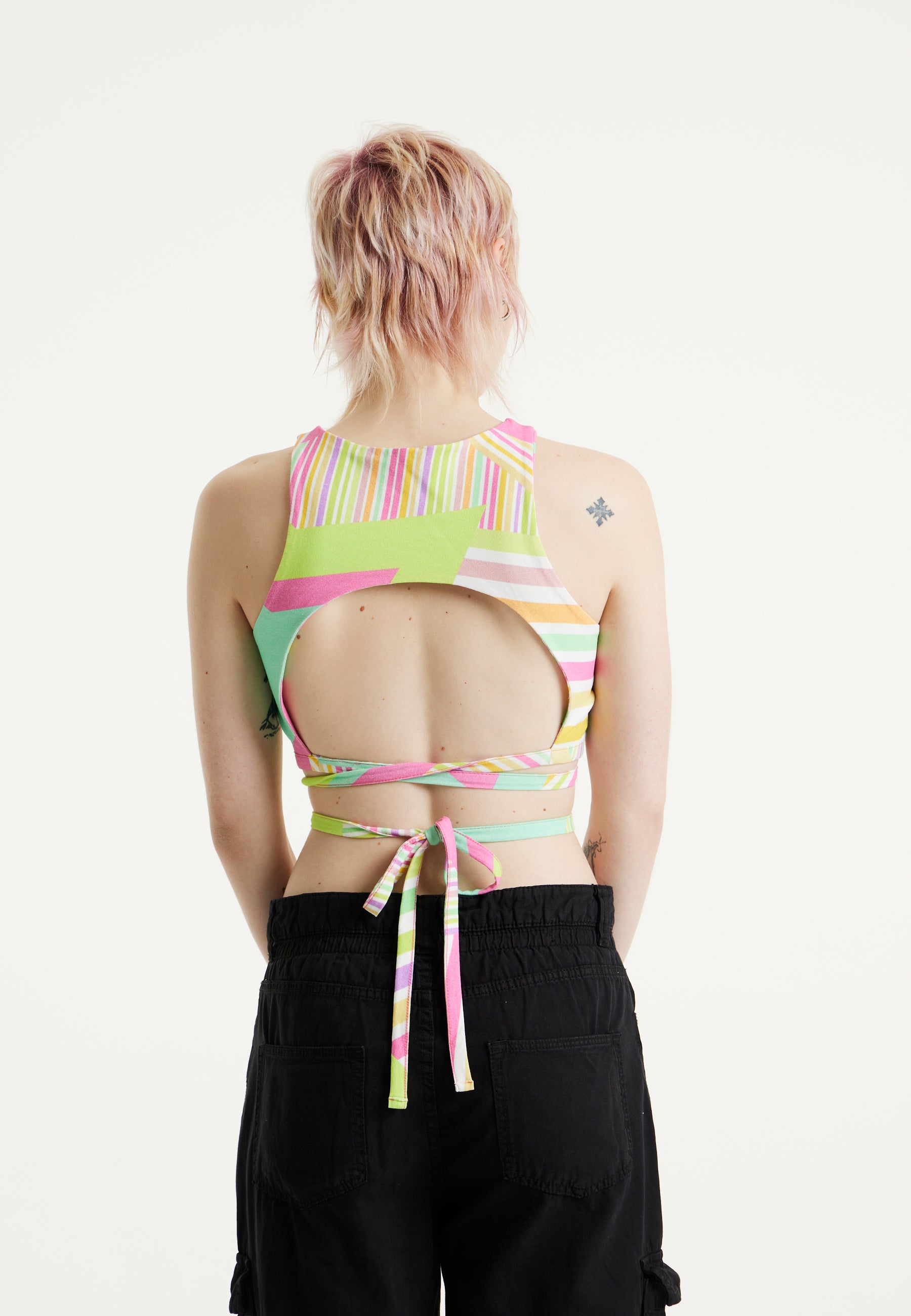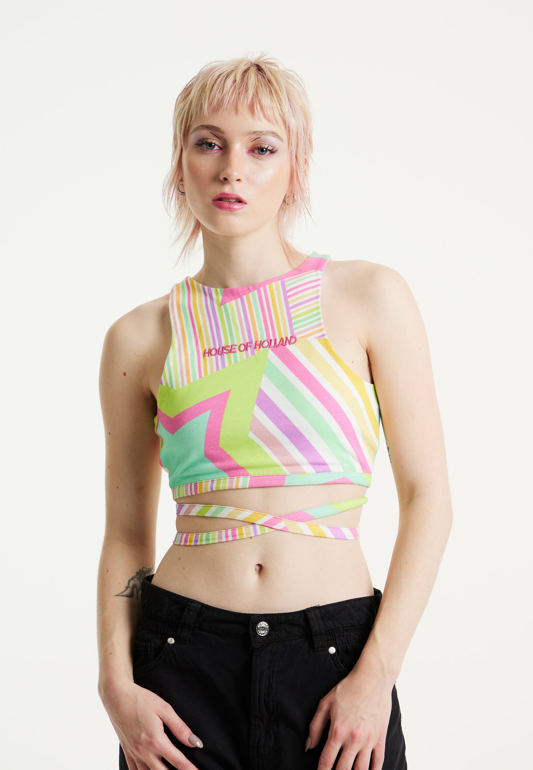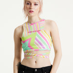 House Of Holland Star Print Jersey Crop Top With Open Back