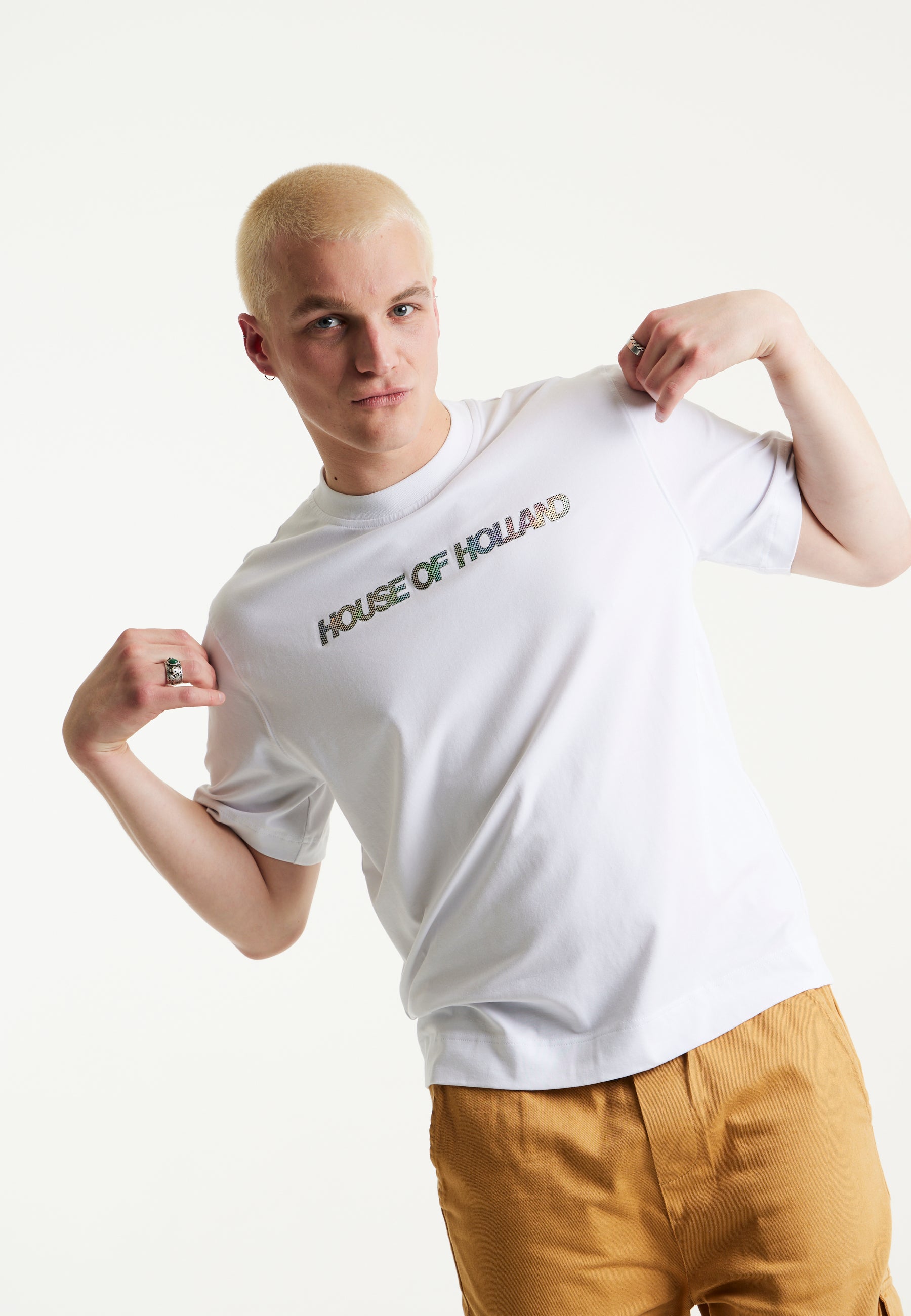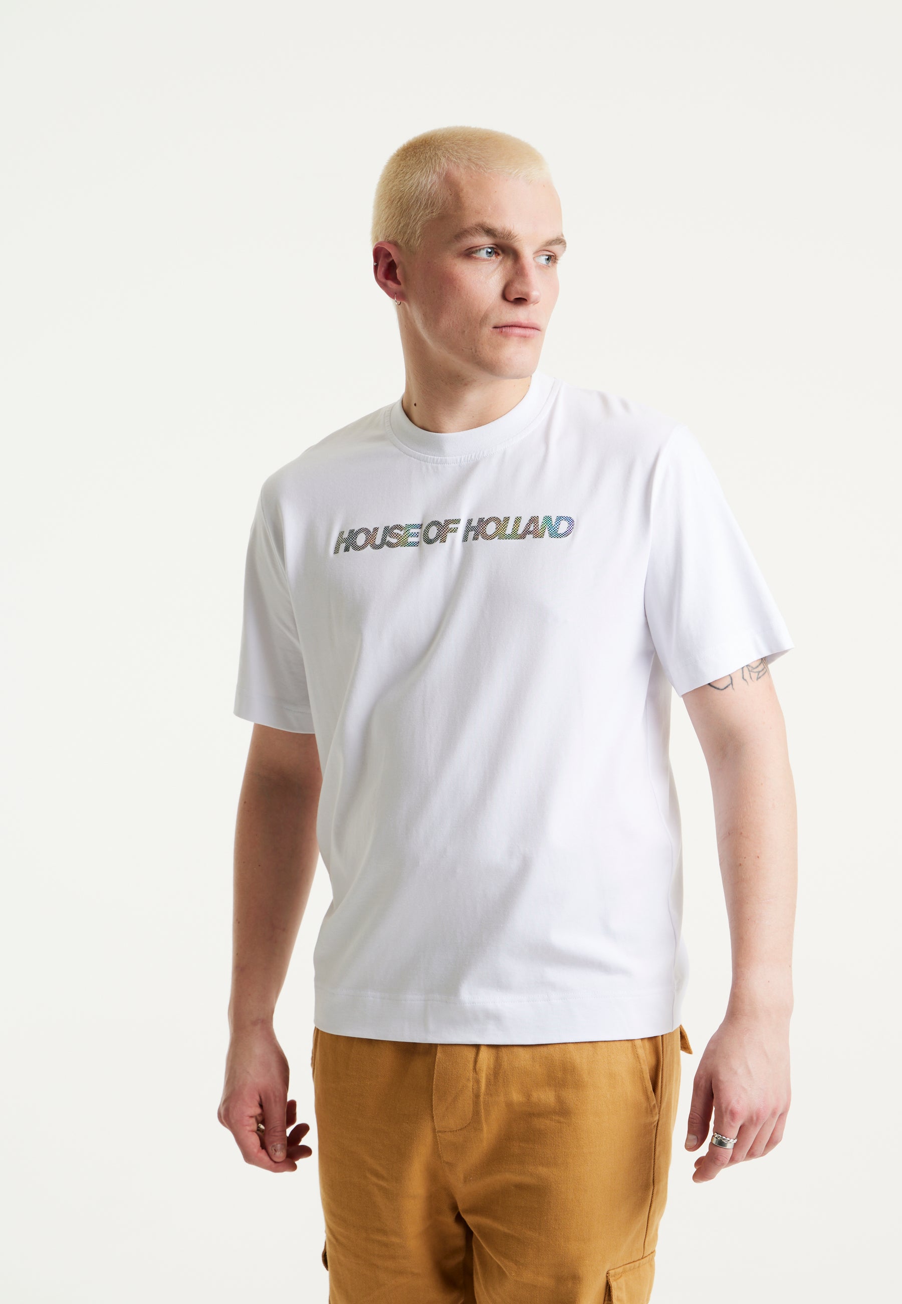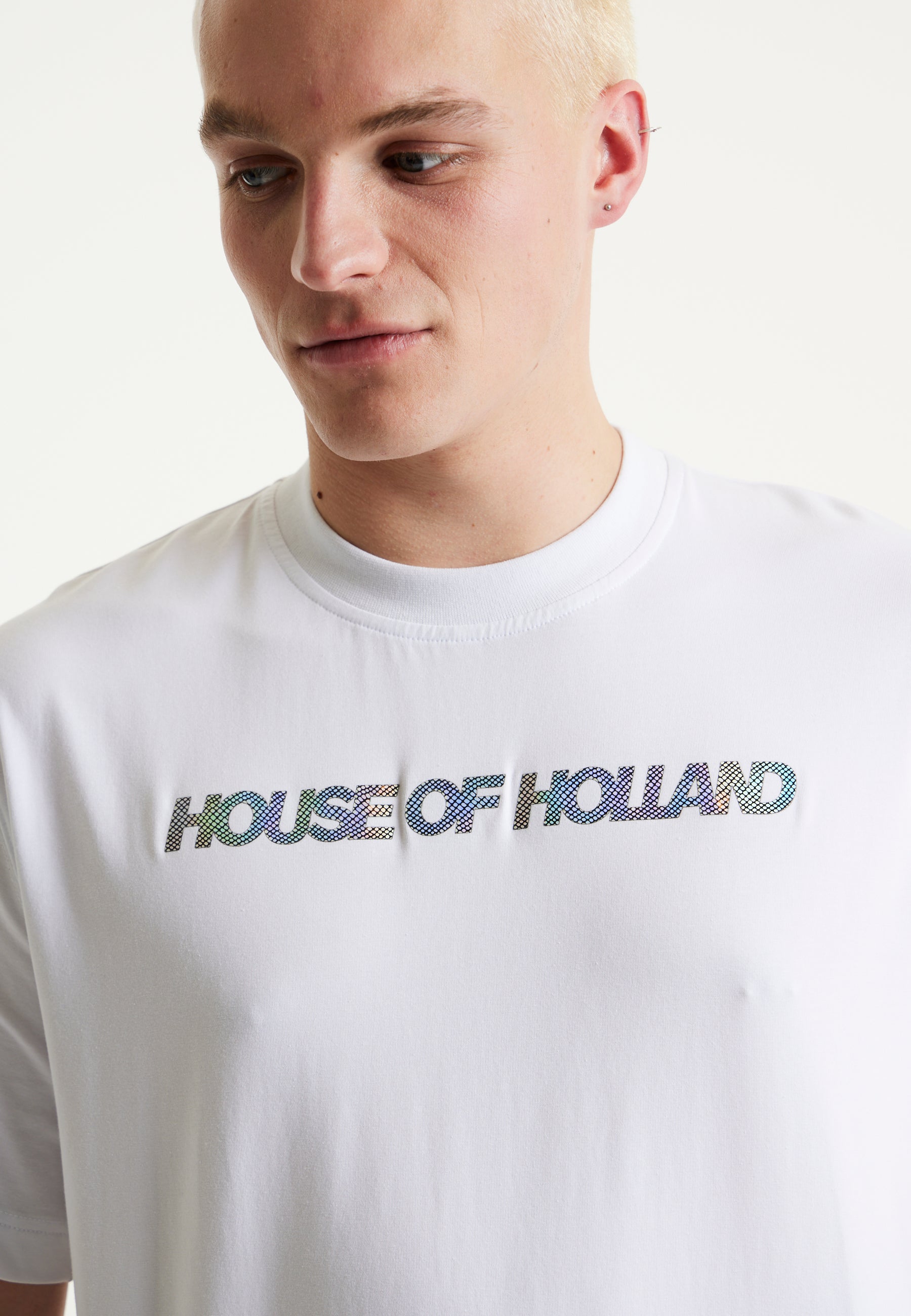 House Of Holland Holographic Rainbow Transfer Printed T-shirt in White