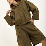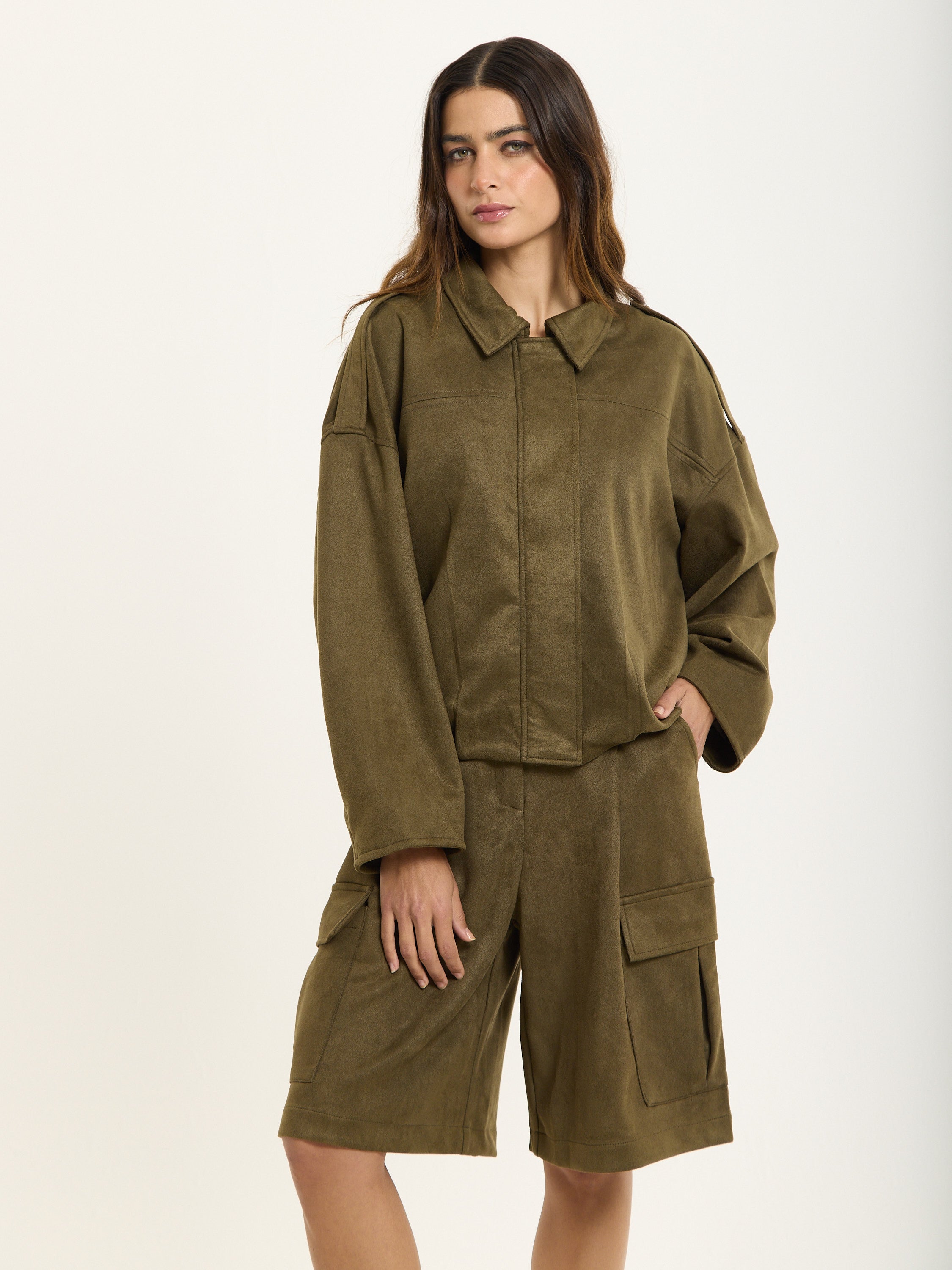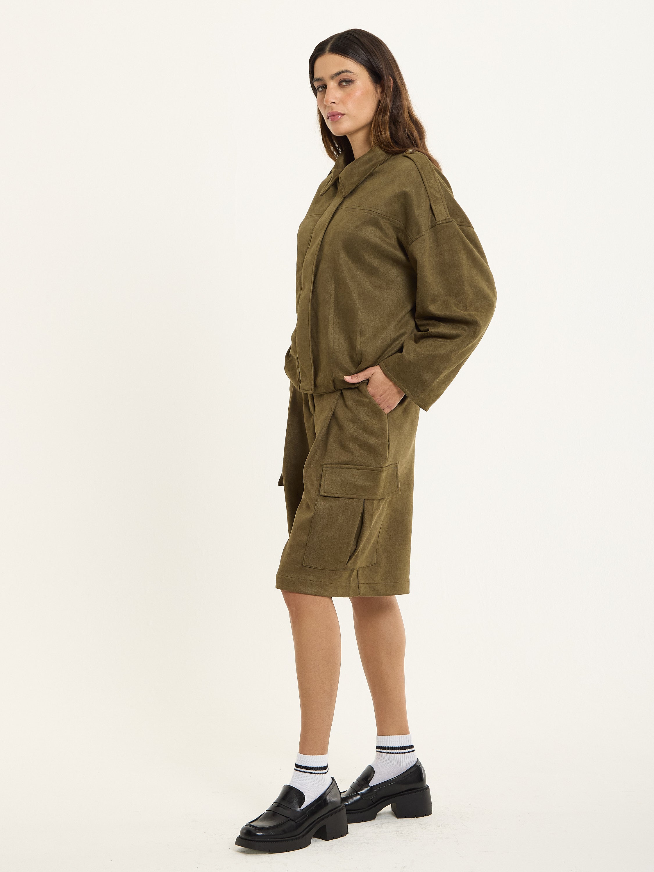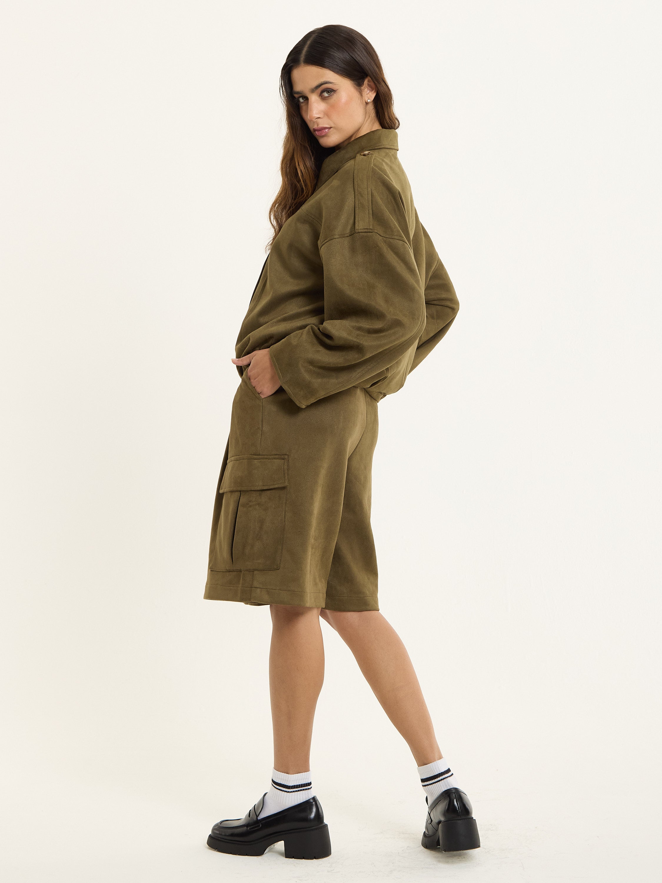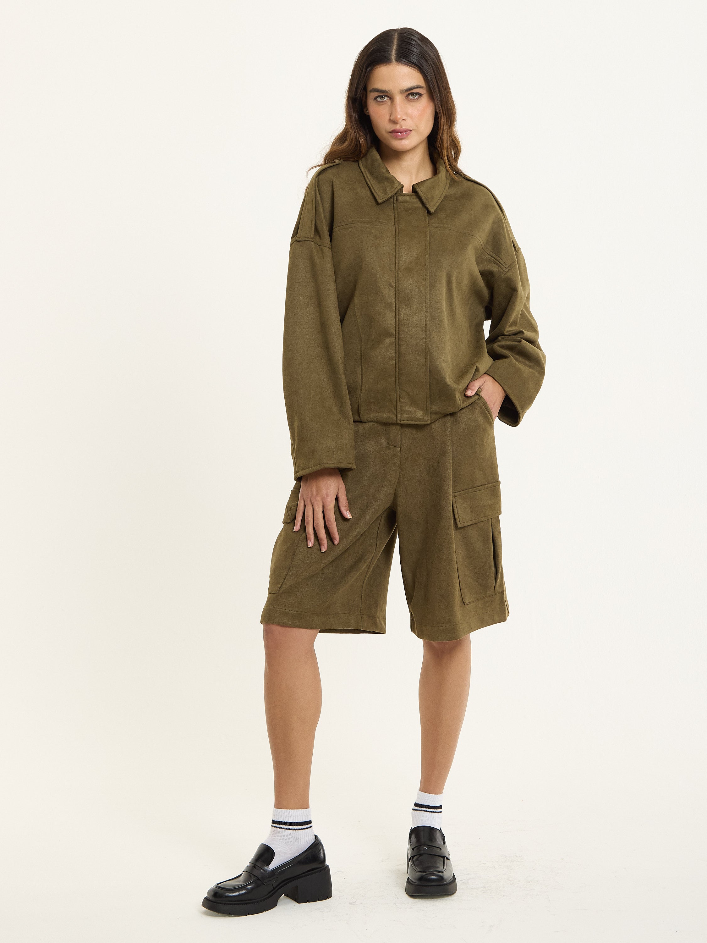 Wear it as a co-ord with the matching khaki cargo shorts, or layer over a crisp shirt and wide-leg trousers for a cool, elevated everyday look. Style with chunky loafers or boots for a touch of attitude.