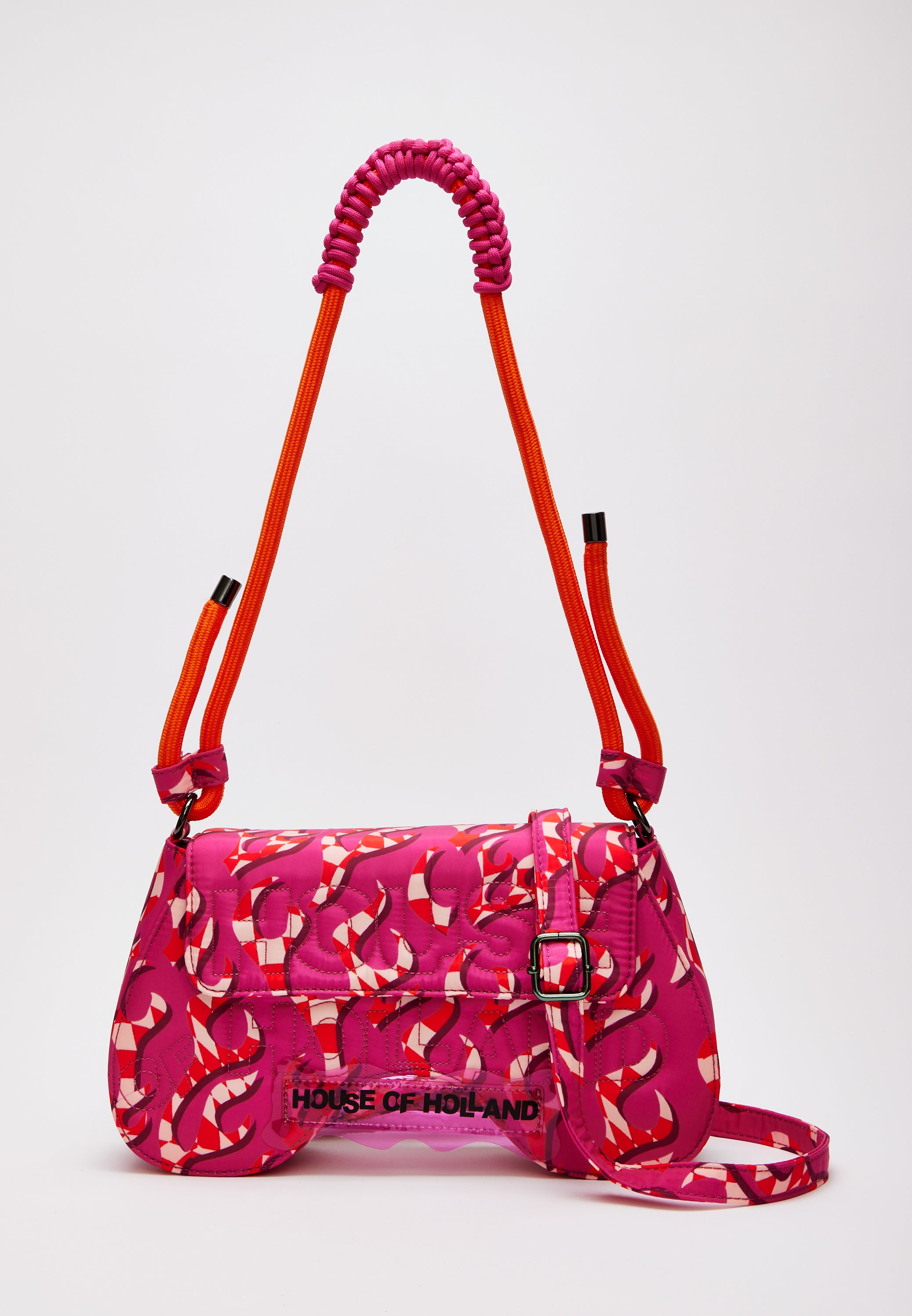 House Of Holland Saddle Pink Flame Bag With Quilted Logo