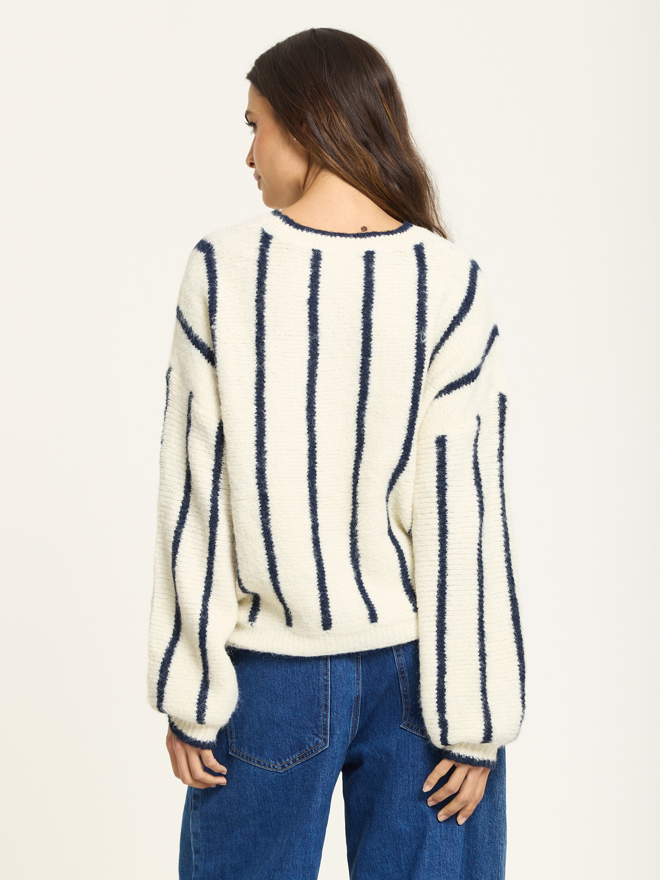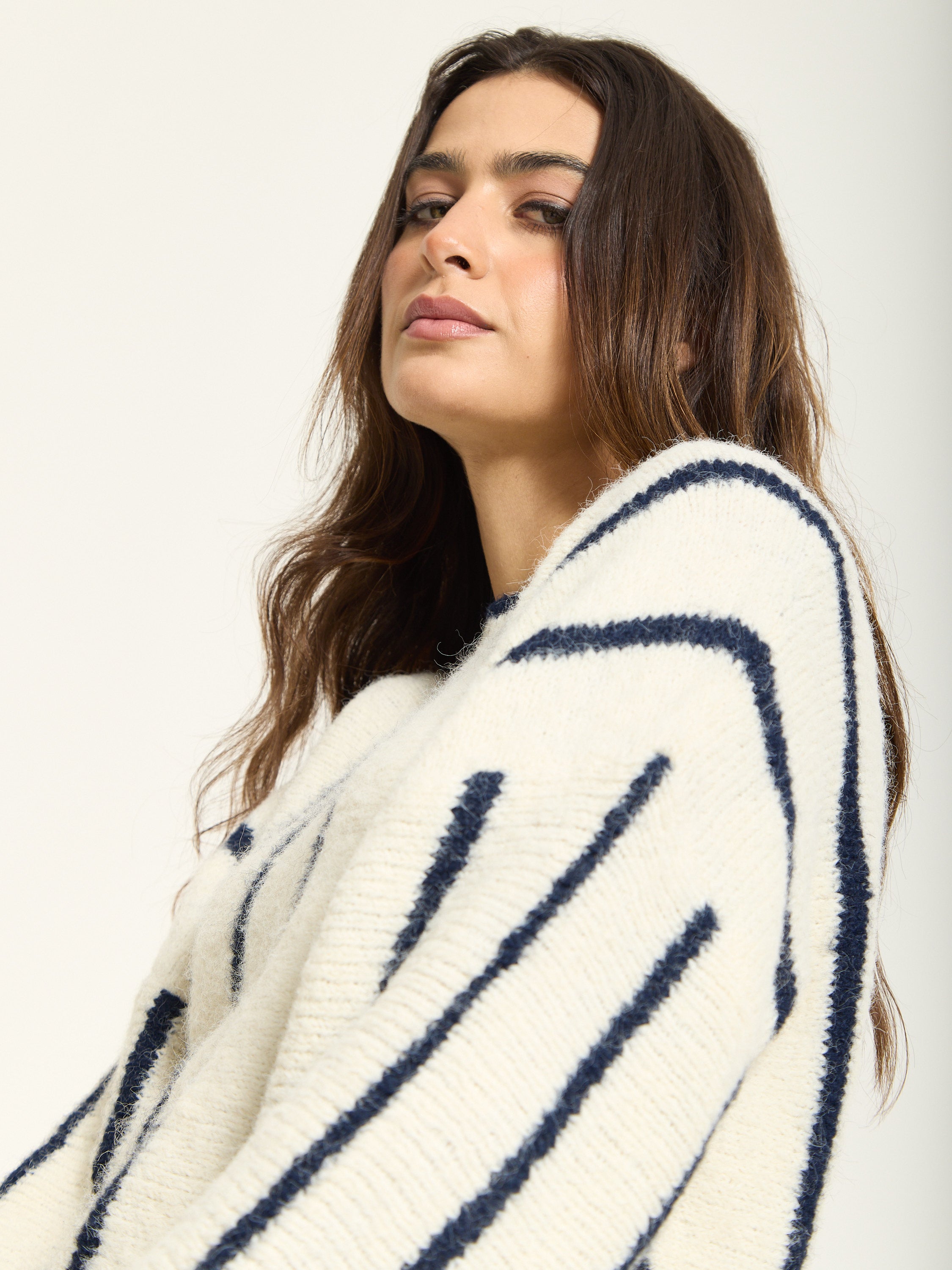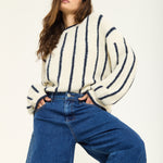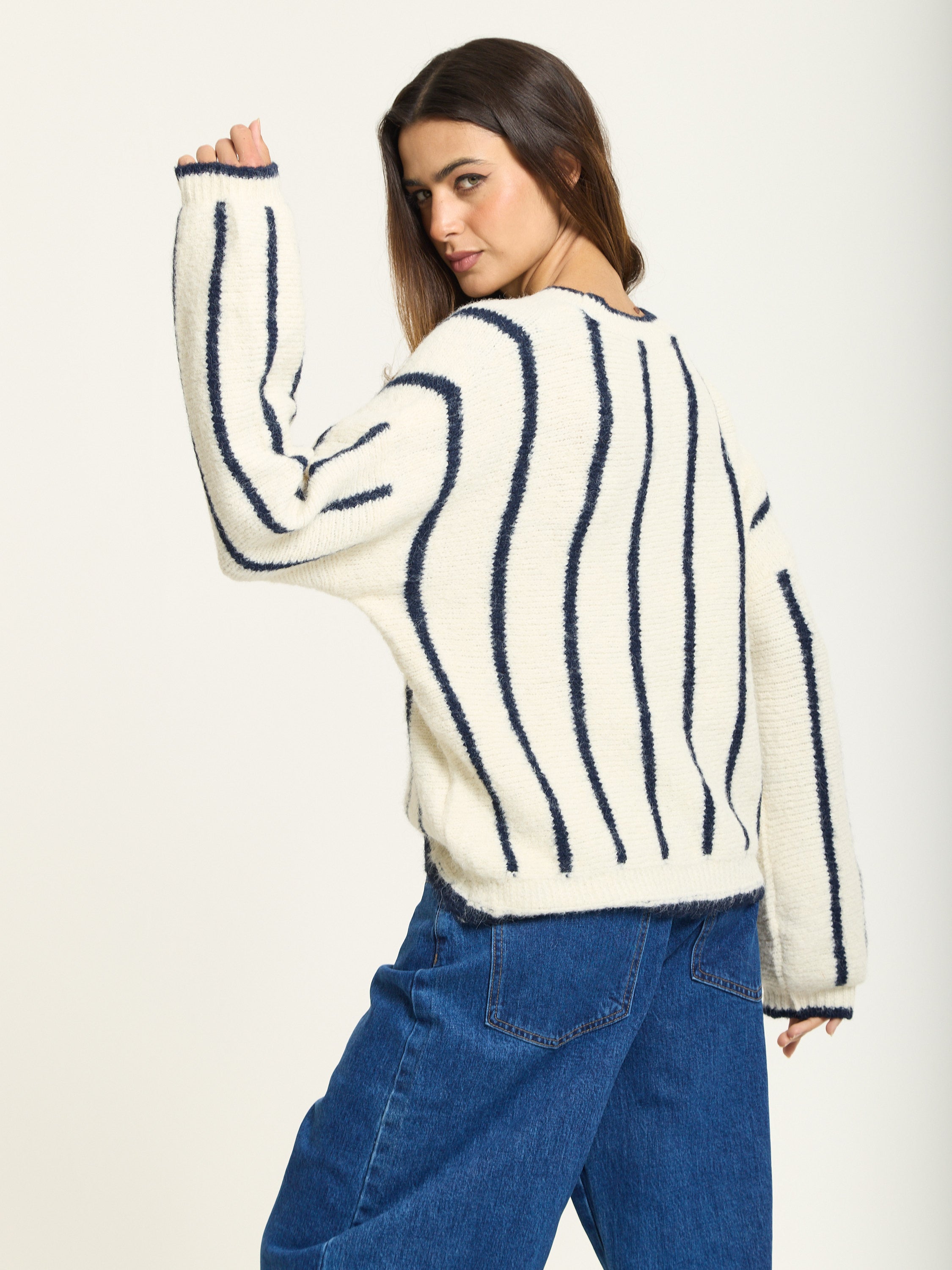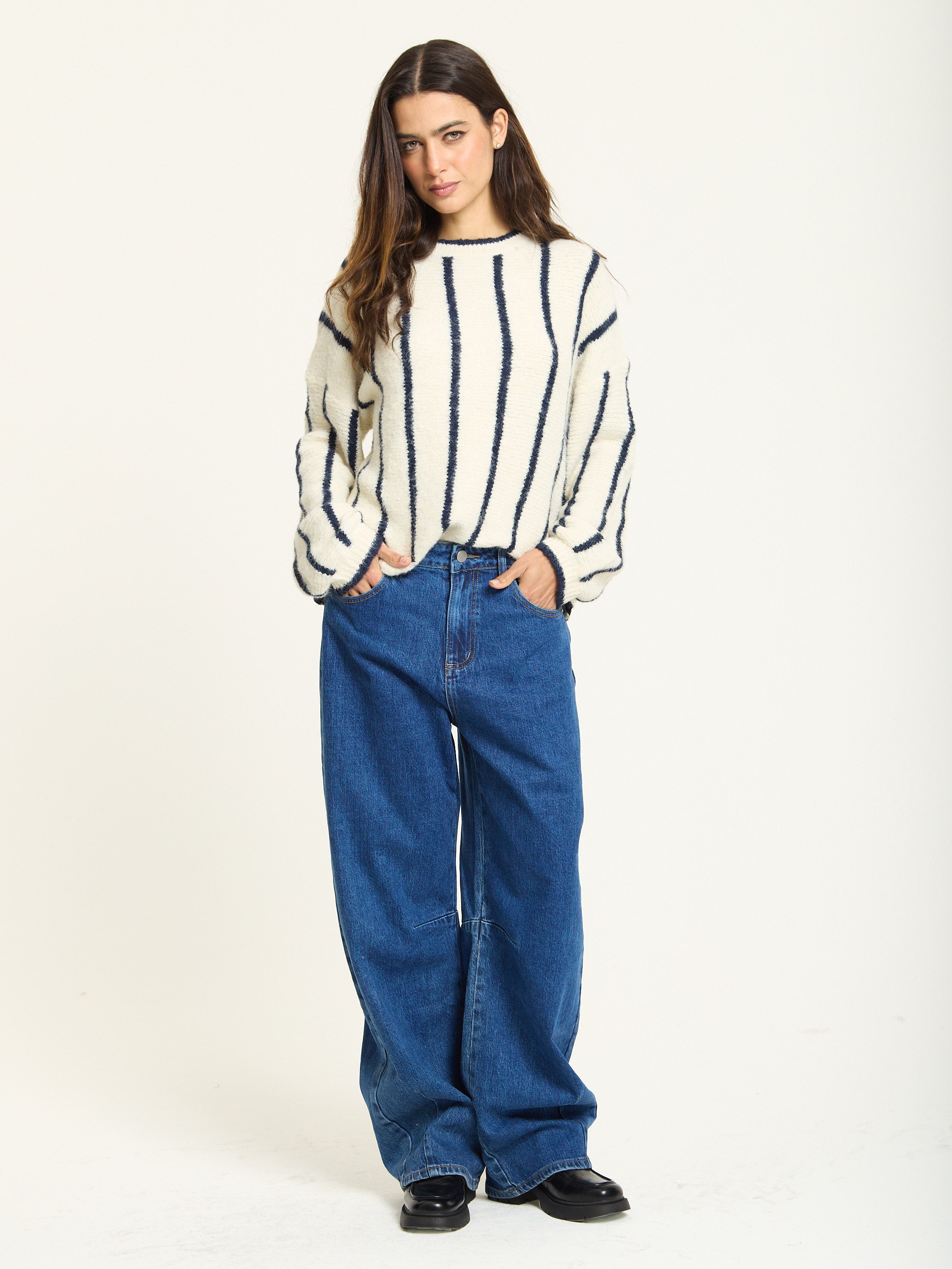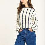 Pair it with wide-leg denim for a casual weekend look, or style with tailored trousers for an off-duty yet polished vibe. The versatile stripe pattern gives this jumper a timeless charm — think effortless layering and easy styling all season long.