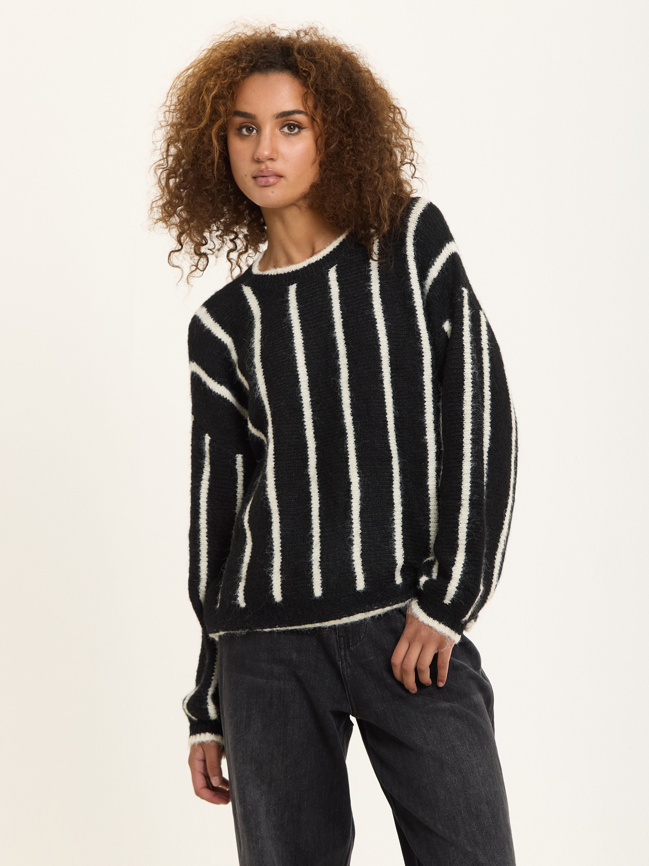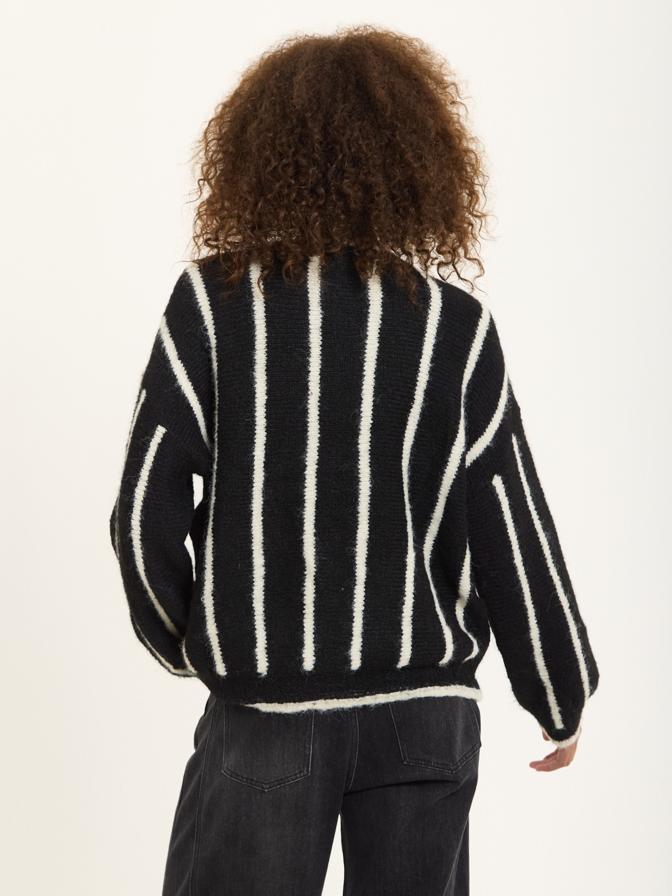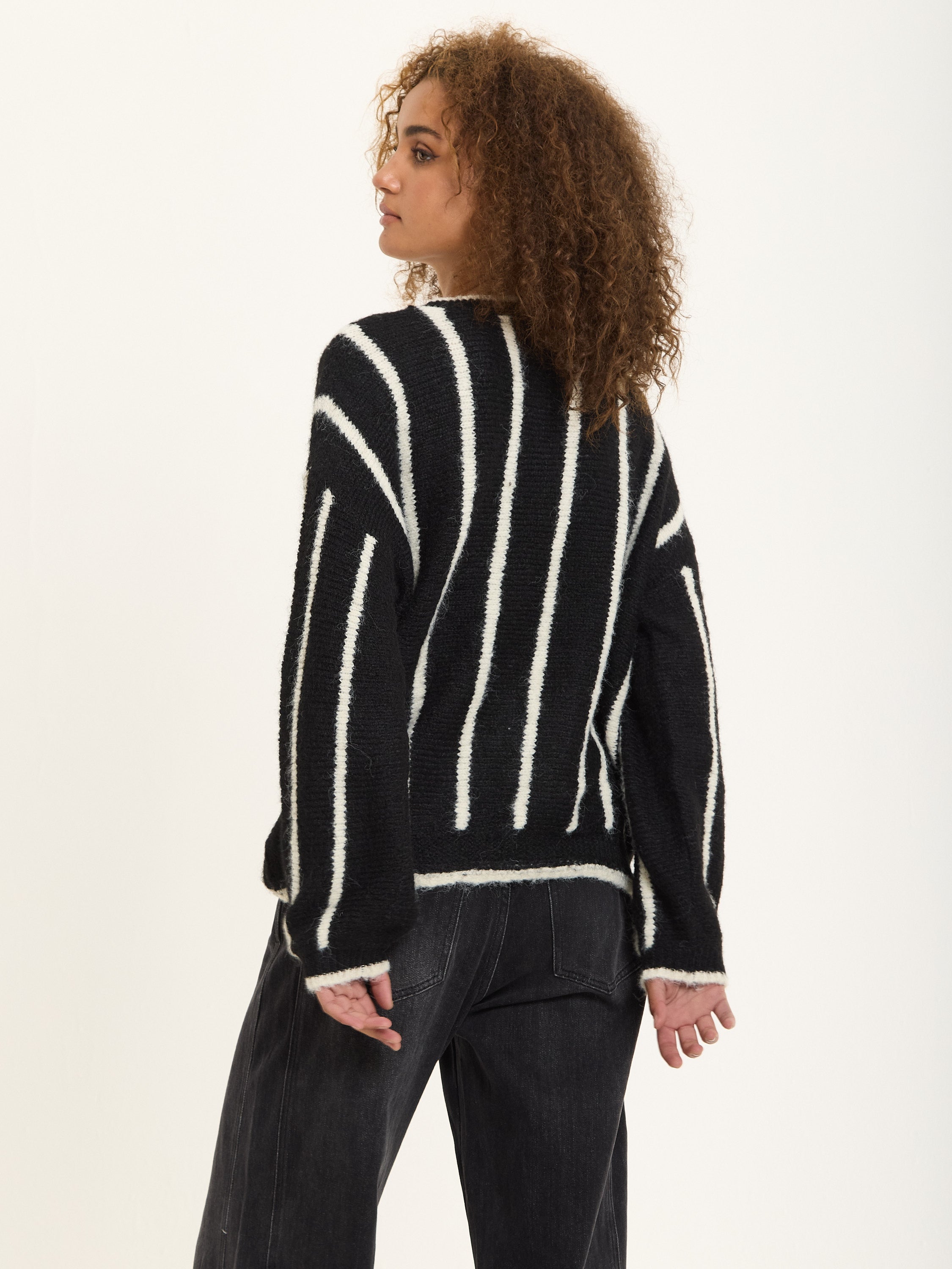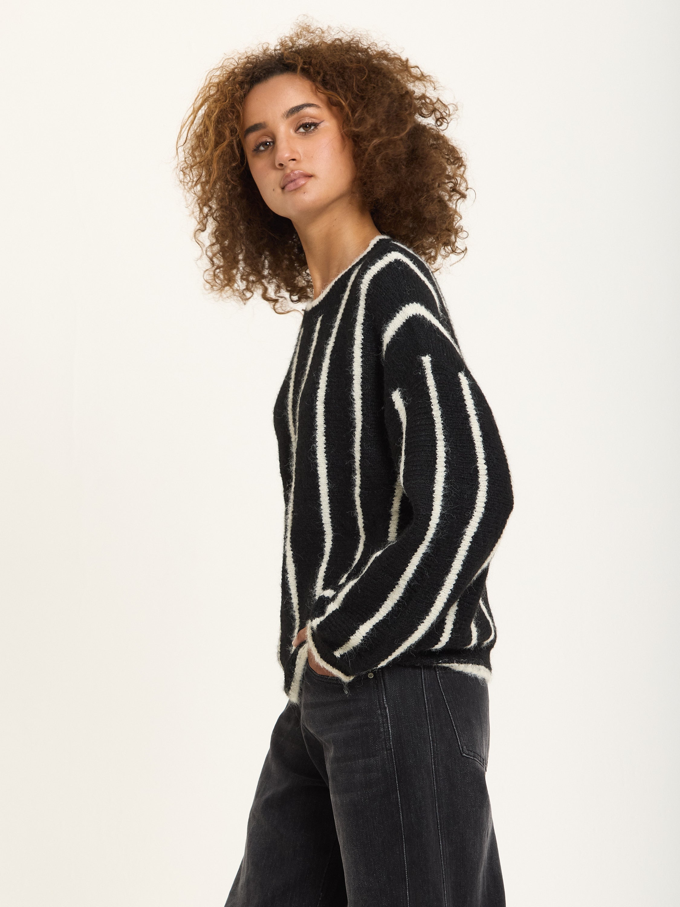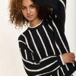 Pair it with wide-leg denim for a casual weekend look, or style with tailored trousers for an off-duty yet polished vibe. The versatile stripe pattern gives this jumper a timeless charm — think effortless layering and easy styling all season long.