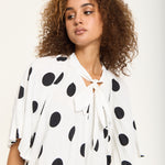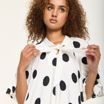 Turn heads in monochrome. The Polka Dot Ruffle Maxi Dress in White channels retro fun with modern flair – effortless, bold, and made to move.