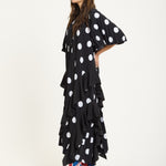Go graphic in true House of Holland style. The Polka Dot Ruffle Maxi Dress redefines monochrome with movement, texture, and a touch of drama. Pair with platforms or boots for that signature edge.