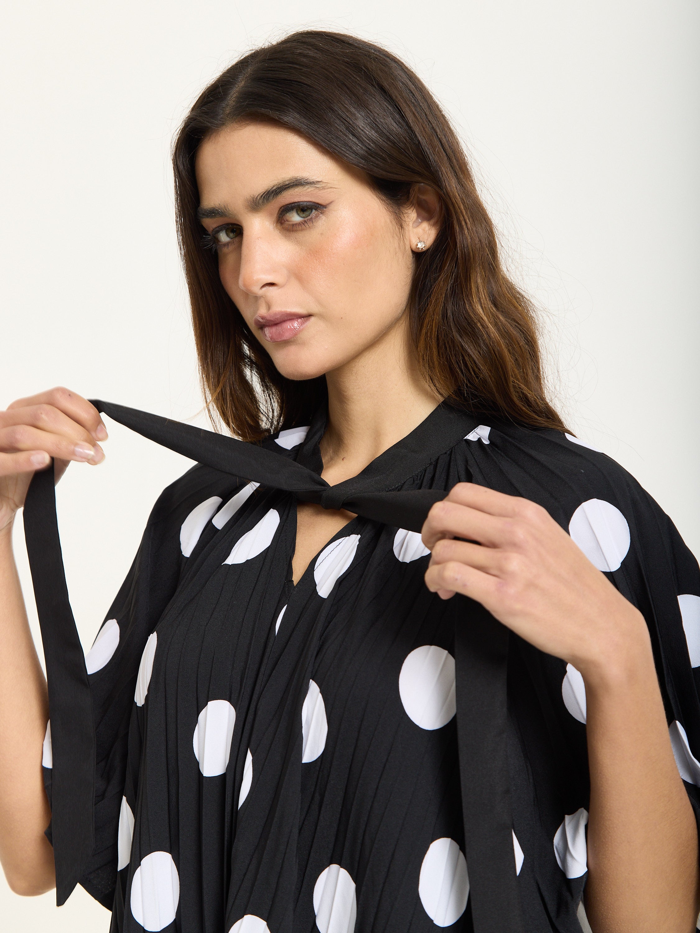- Oversized white polka dots on black